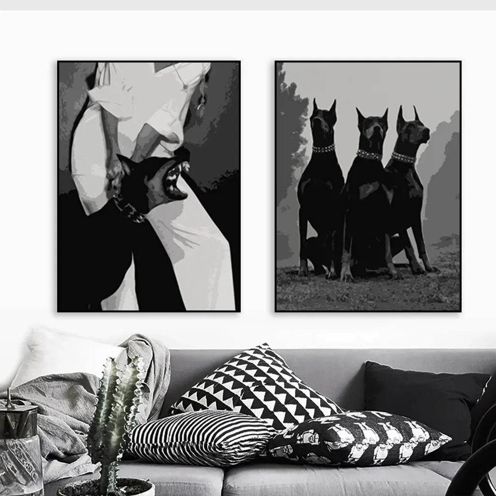 Luxury Fashion Doberman Poster Black and White Dog Aesthetic Wall Art Prints Minimalist Bathroom Decor Bedroom Canvas Painting