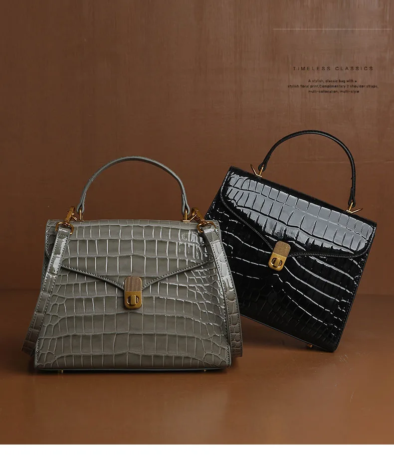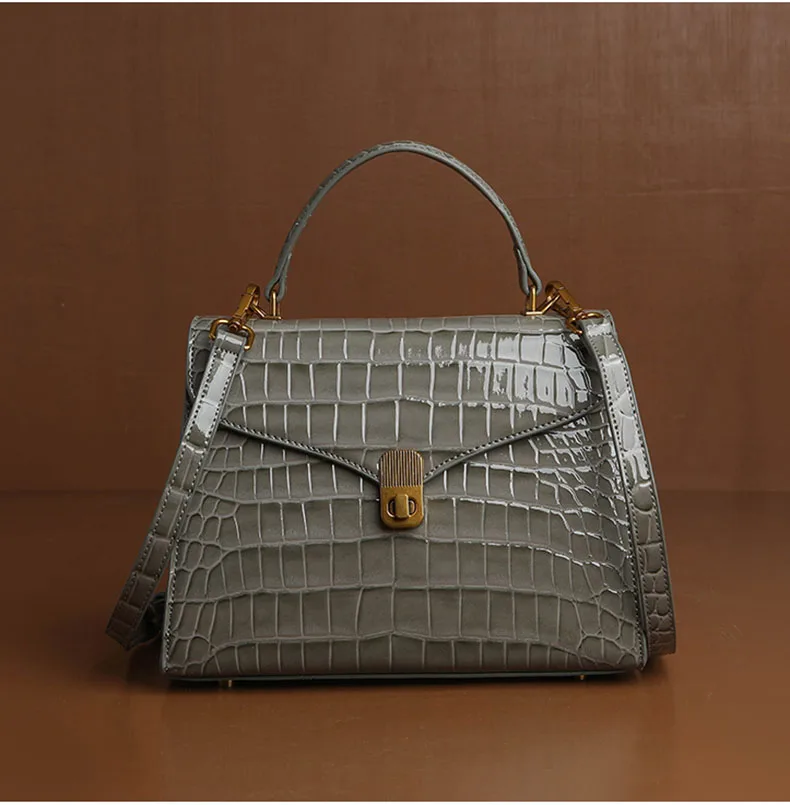 Luxury Handheld Cowhide Crocodile Pattern Bag for Women’s Genuine Leather Bag 2024 Autumn New High Fashion Women’s Bag