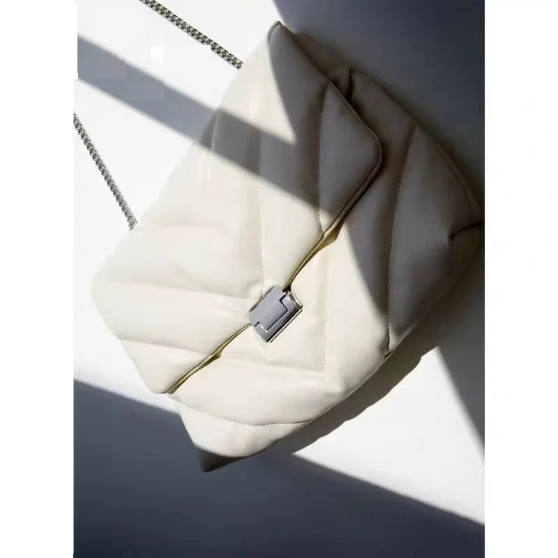 Luxury Leather Women’s Shoulder Bags Simple Chain Cossbody Bag Fashion Commute Handbags Solid Color Female Quilting Underarm Bag