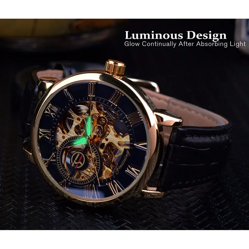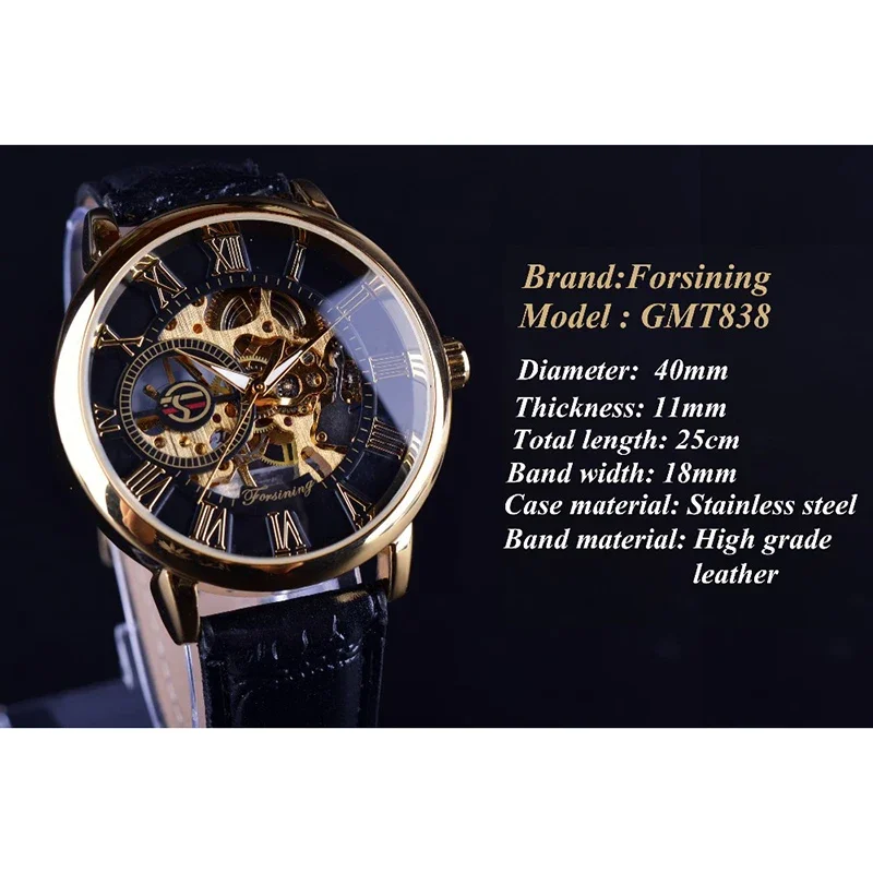 Luxury Mens Steampunk Skeleton Stainless Steel Mechanical Wrist Watch
