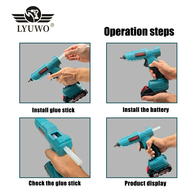 LYUWO 21V, 100W, 280 ° C cordless hot melt glue gun portable lithium battery charging 10pcs 11mm glue stick DIY maintenance tool