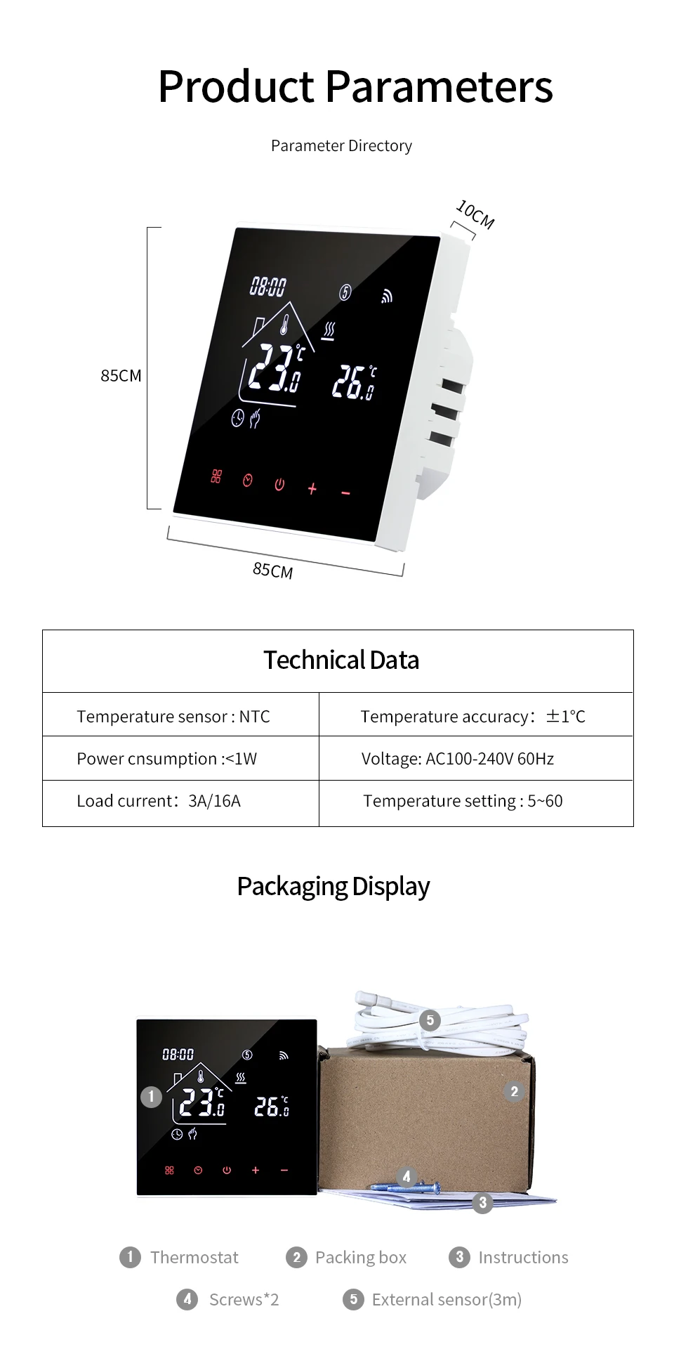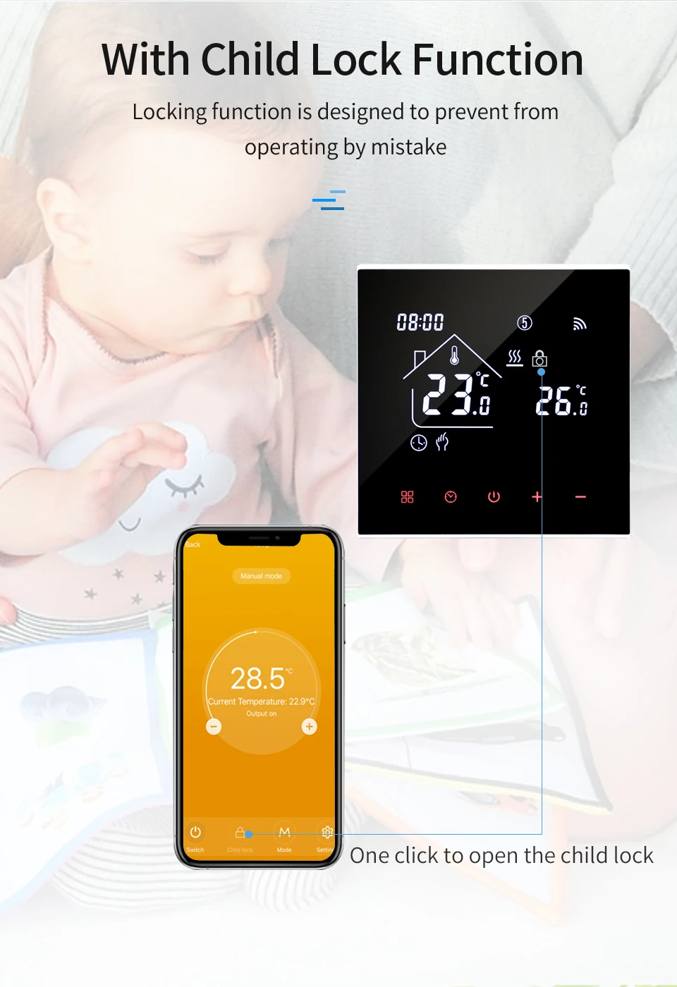M4AHGB Wifi Smart Heating Thermostat LCD Display Voice Control Alexa Tuya Alice/Electric/Water Floor Temperature Controller