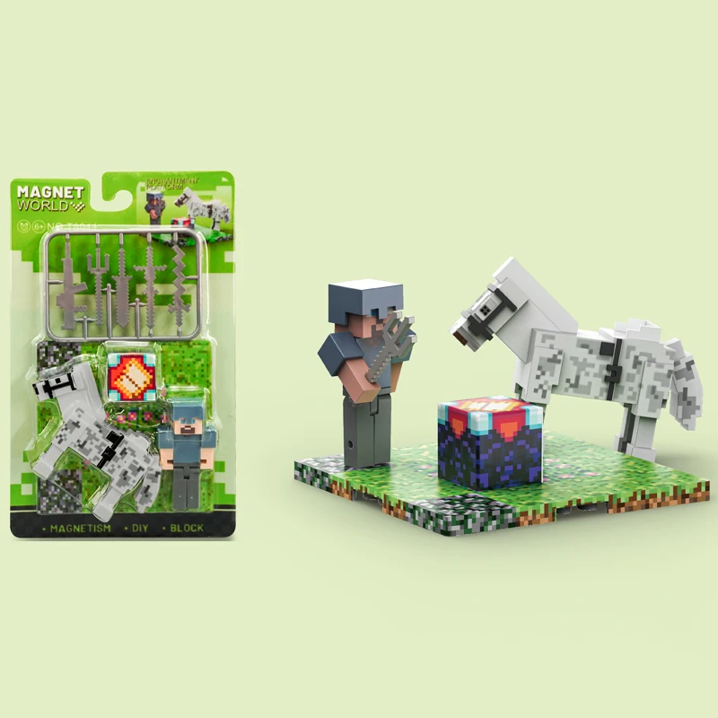 Magnetic Building Blocks My World Scene Model With Mini Figures Animals Kids STEM Educational Toys Cube Bricks Children’s Gifts