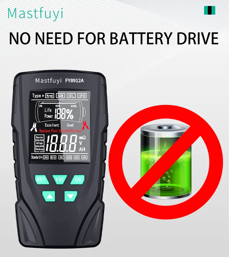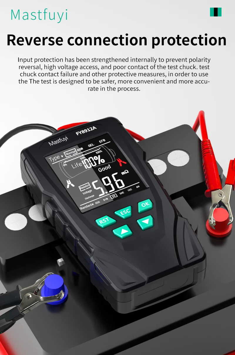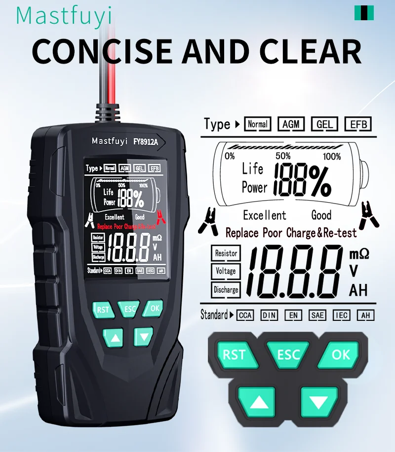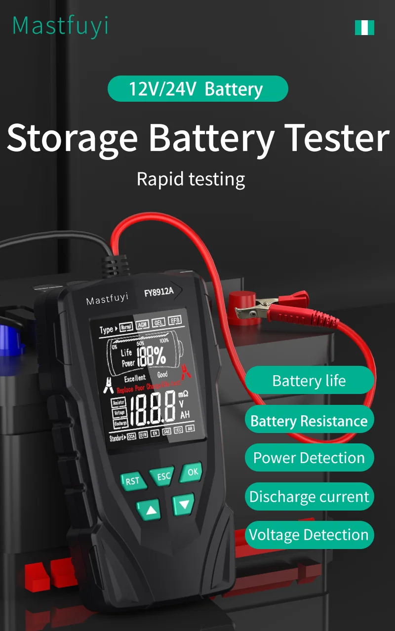 MASTFUYI 12V/24V Car Battery Tester Automatically Measure Battery Life and Capacity Visualize Battery Status Plug & Play