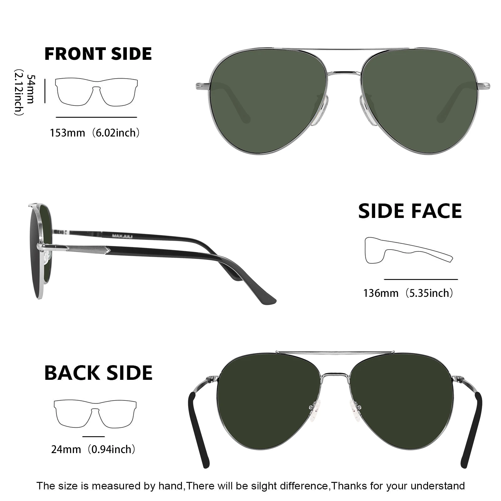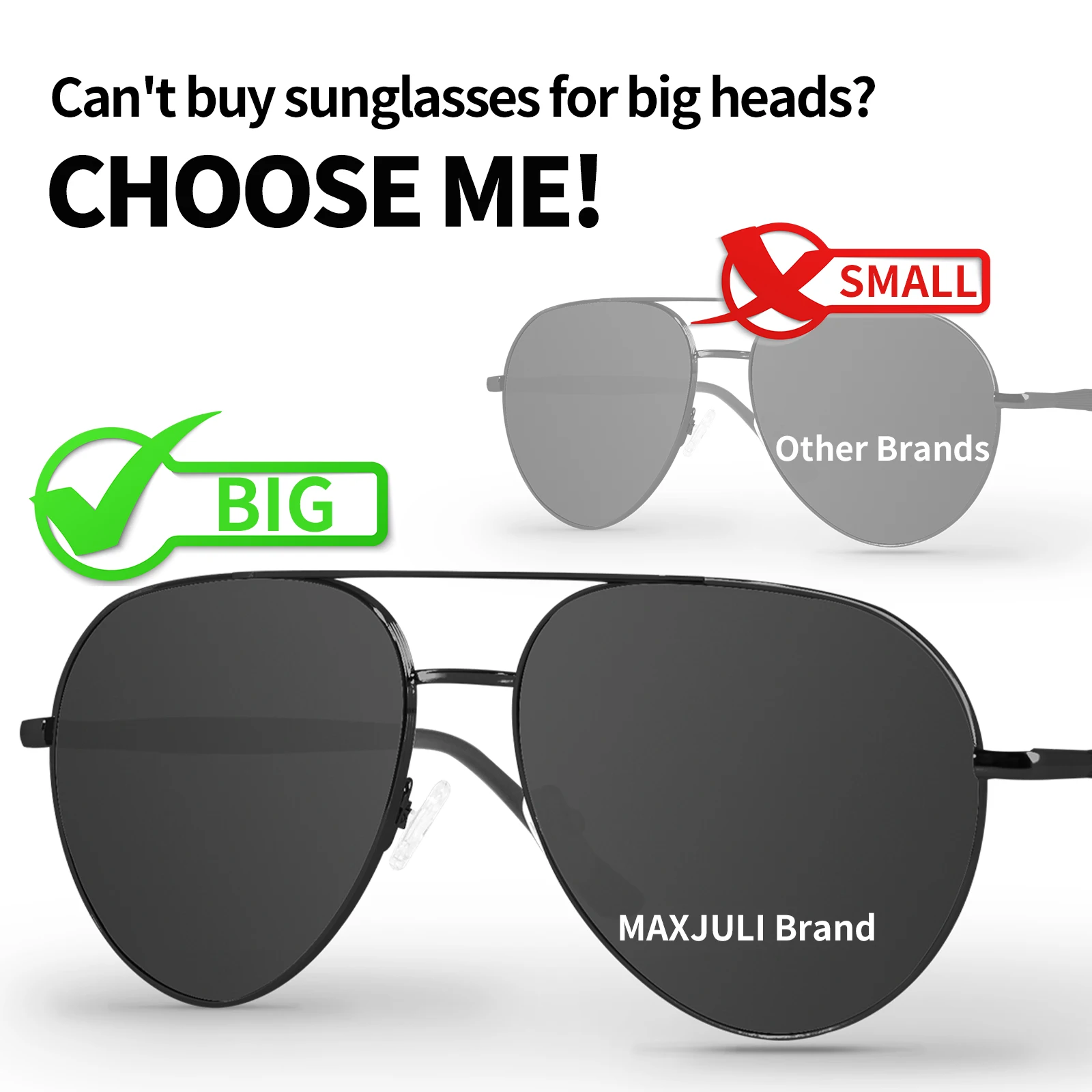 MAXJULI Polarized Sunglasses for Big Heads Men Women Classic Retro Style Oversized Metal Frame Shades 8217