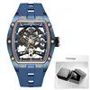 MEGIR Men’s Automatic Mechanical Watch with Stainless Steel Case Silicone Band Skeleton Dial Waterproof Sport Wristwatch