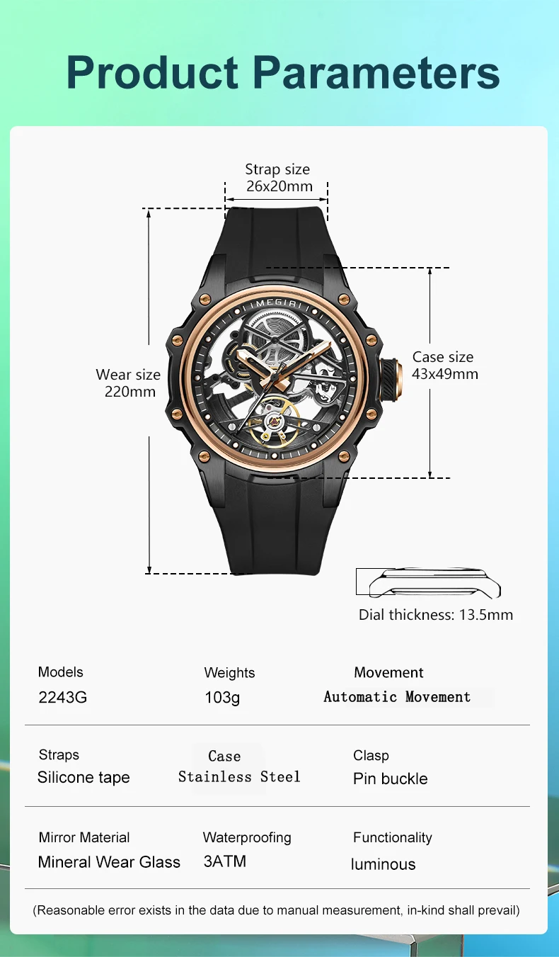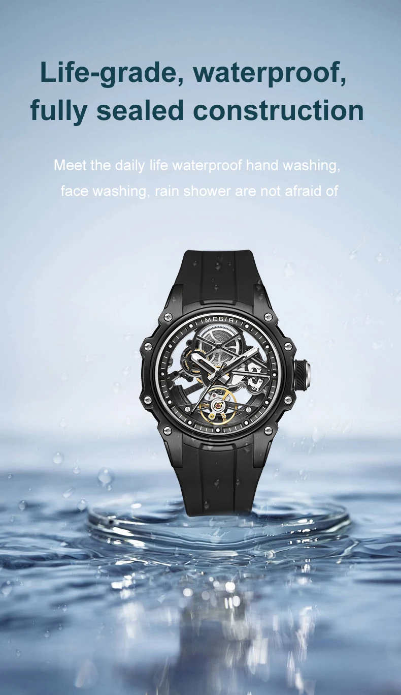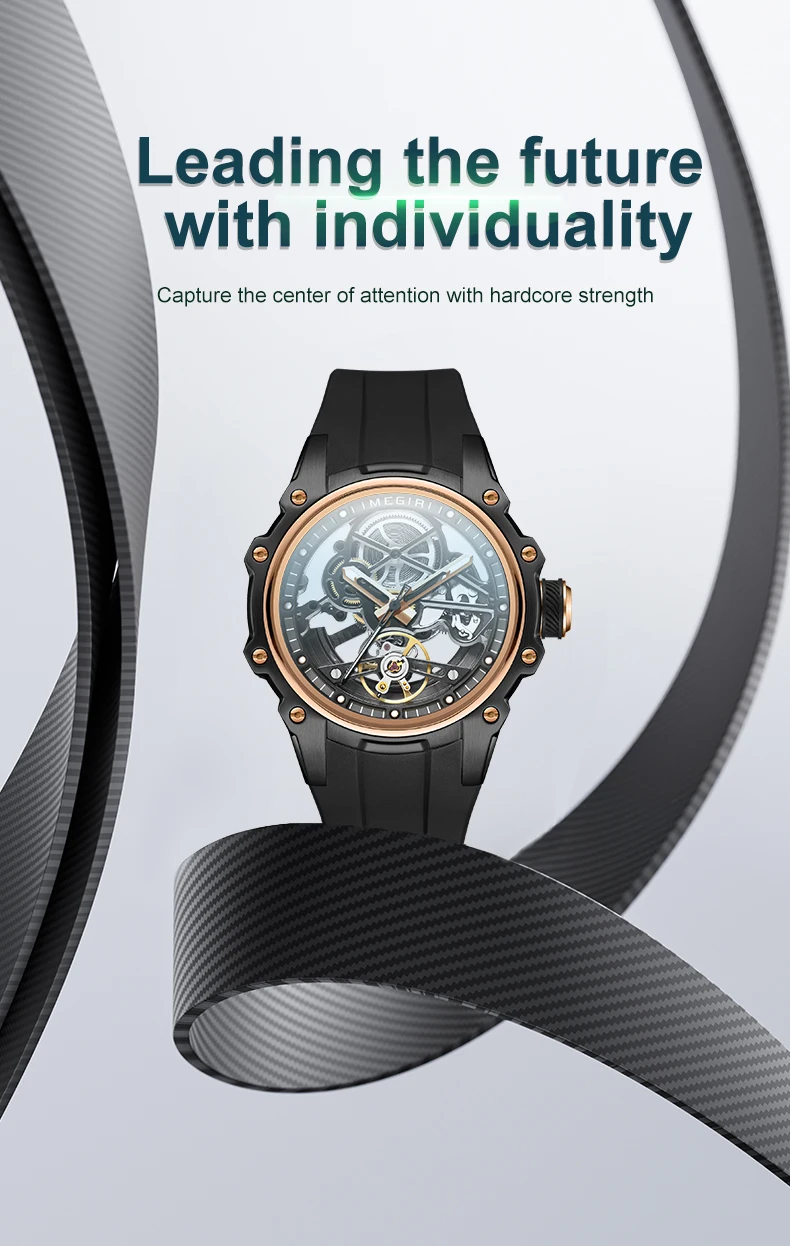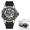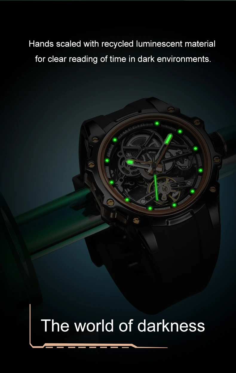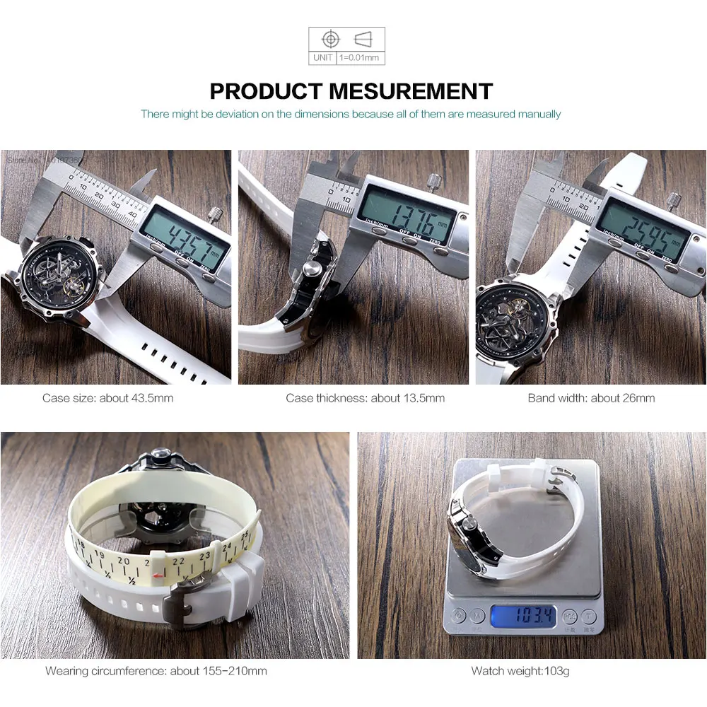 MEGIR Sports Automatic Mechanical Watch for Men Fashion Stainless Steel Cased Wristwatch with White Silicone Strap Skeleton Dial