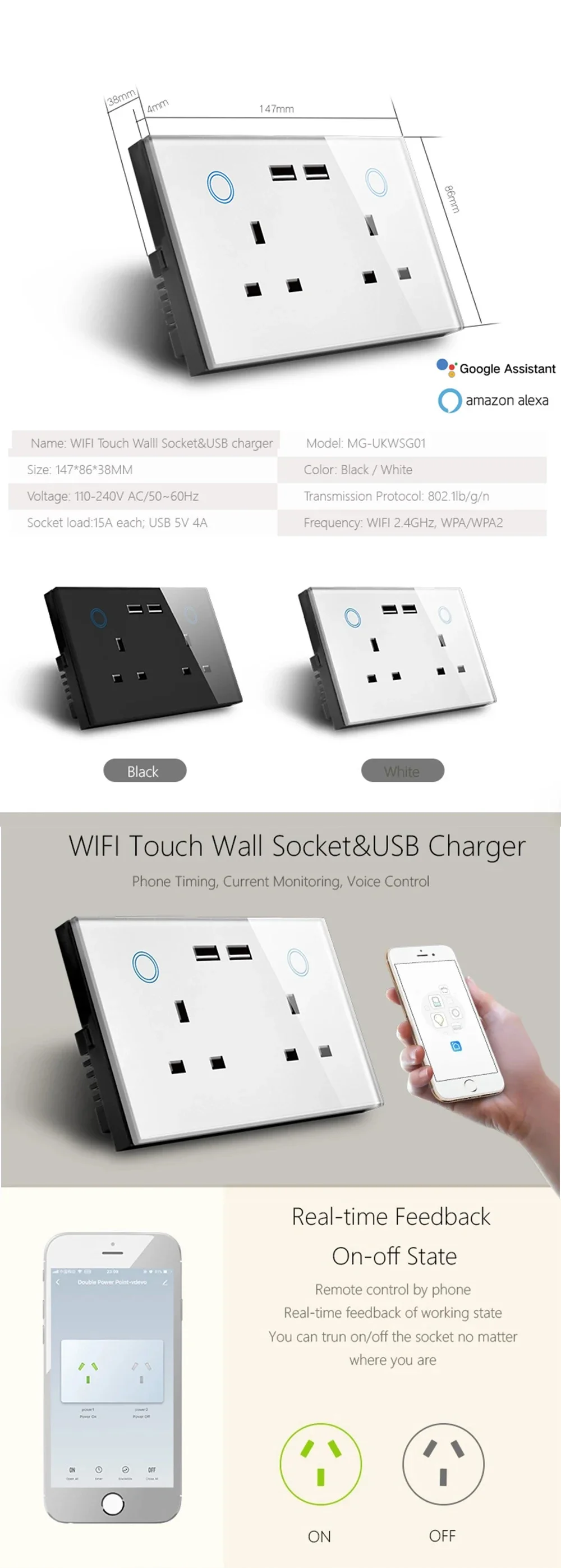 Simply plug any home appliance and control it right from your mobile phone. With USB ports, you can easily charge your mobile, tablet, or any USB-powered device with a standard cable.