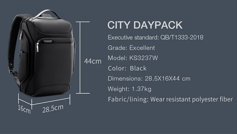 Men Backpack Kingsons Business Waterproof Anti-theft Laptop Backpack 15.6 Inch Fashion School Bags for College Student