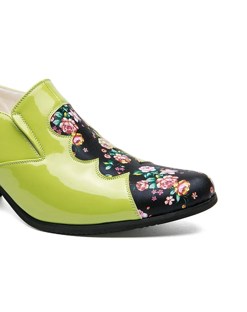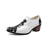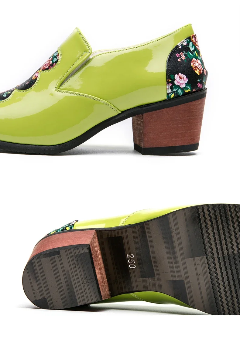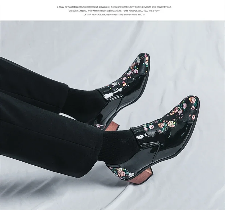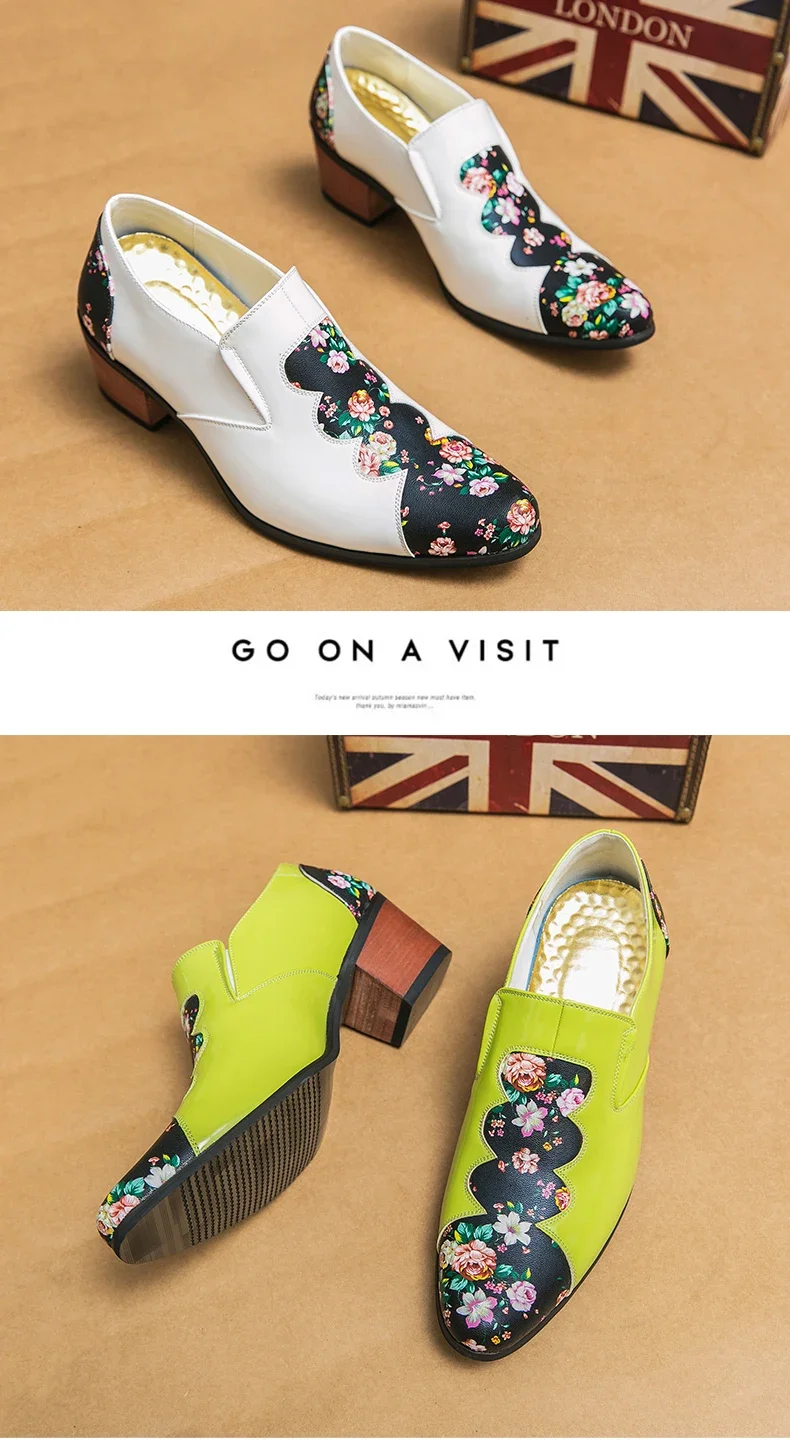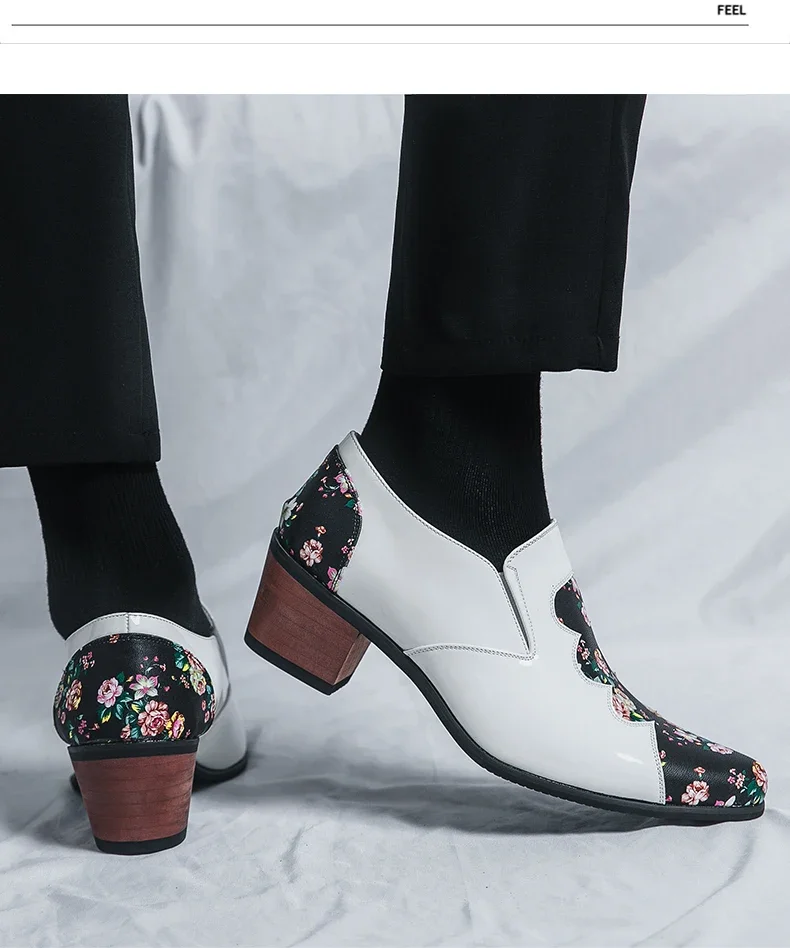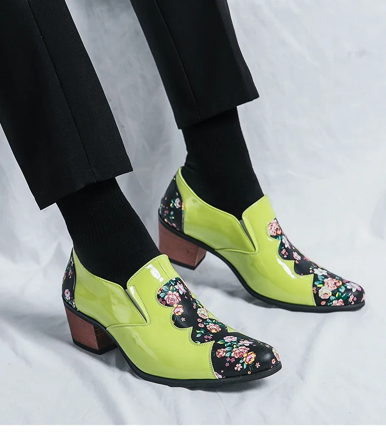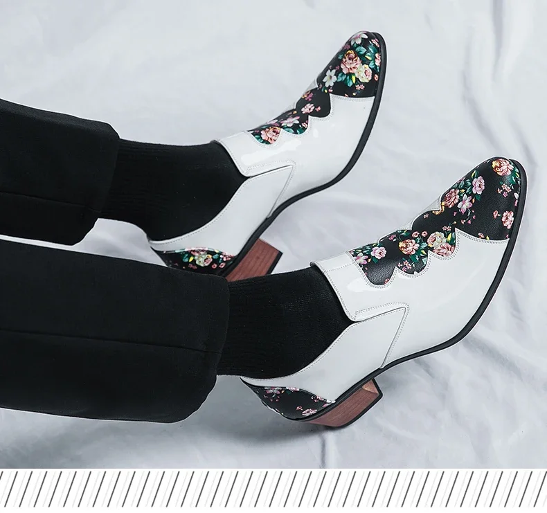 Men Fashion Embroidery High Heel 6cm Patent Leather Pointed Oxfords Shoes Flower Pattern Comfort Party Wedding Men’s Dress Shoes