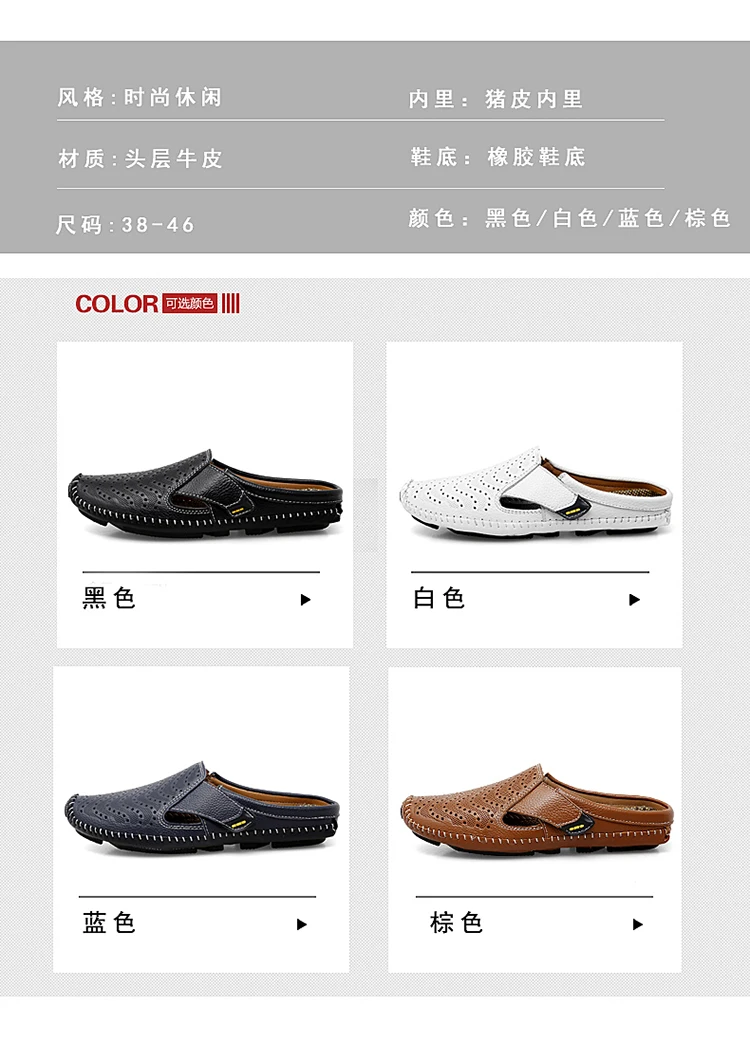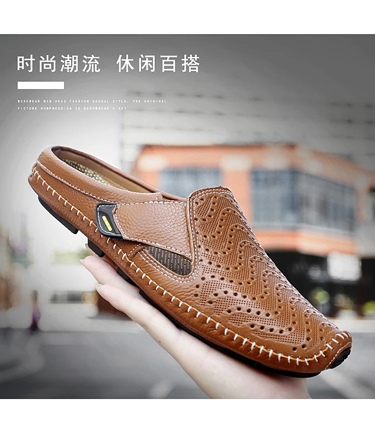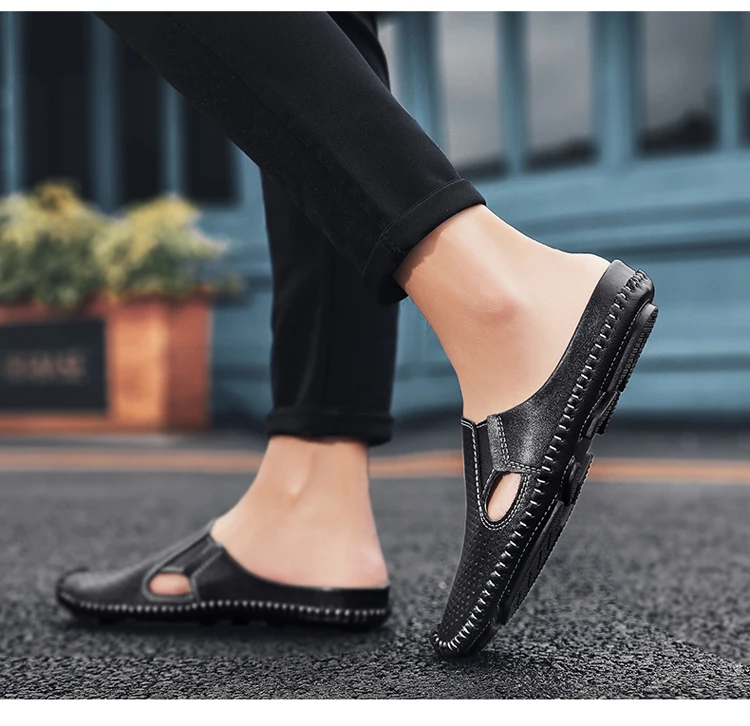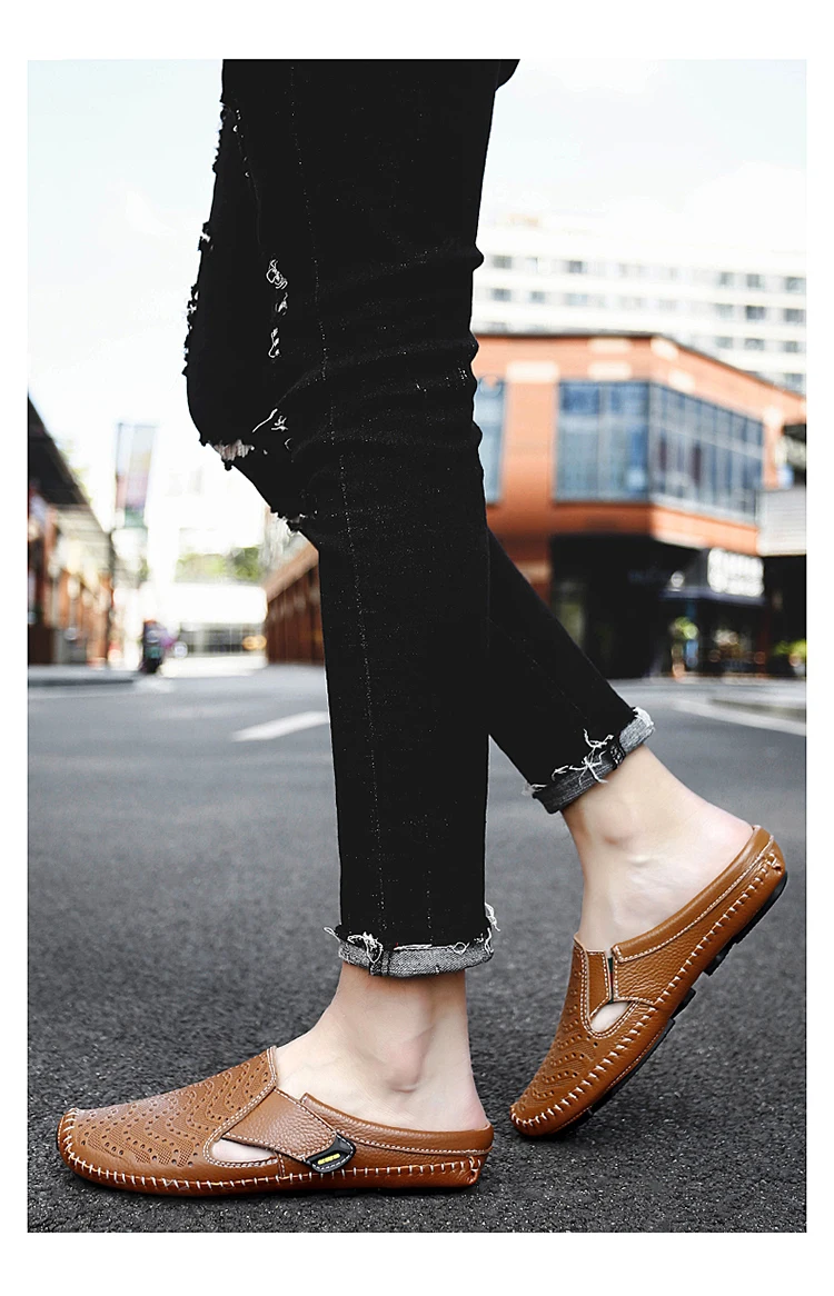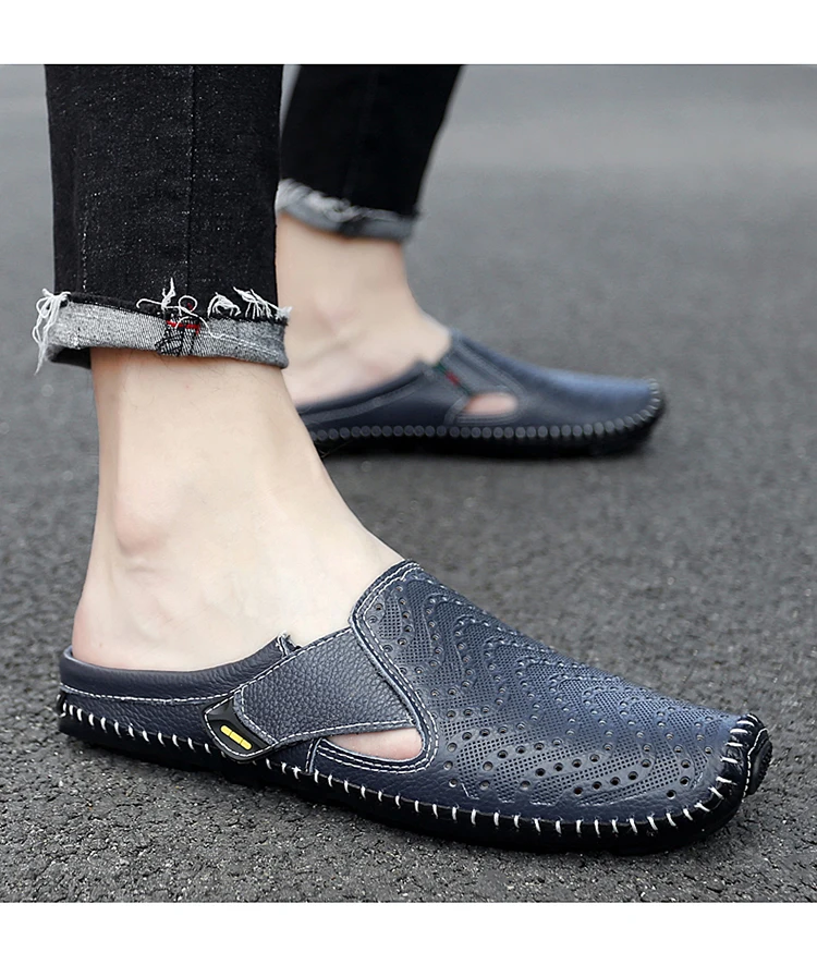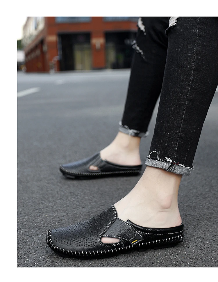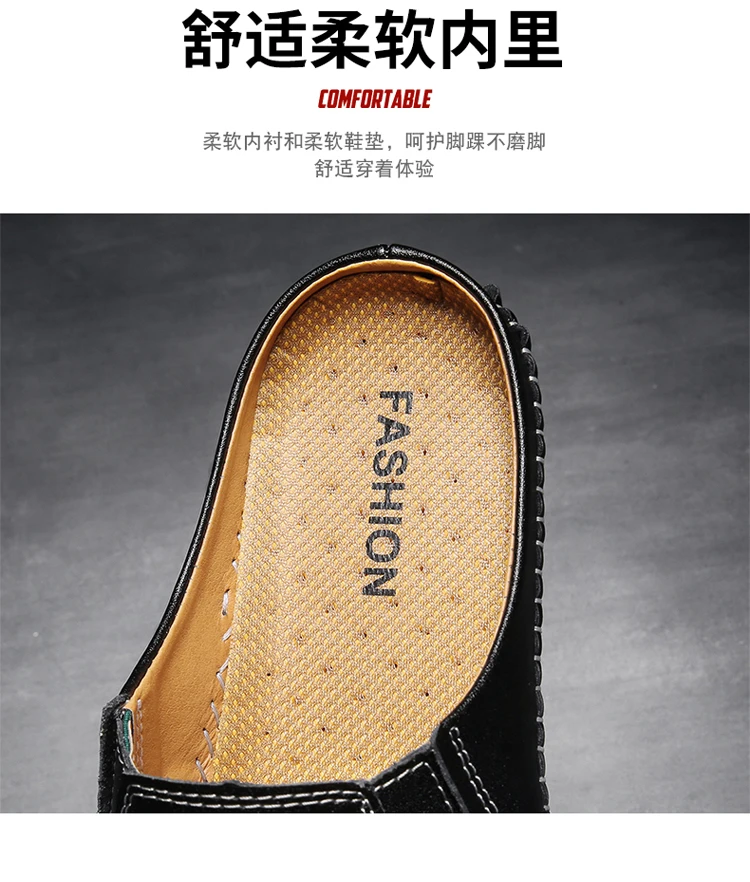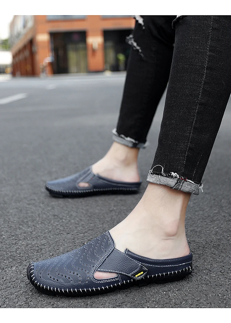 Men Summer Fashion Cow Split Casual Mules Male Breathable Half Loafer Slippers Mocassins Comfy Soft Flat Slip-on Leather Sandals![]()