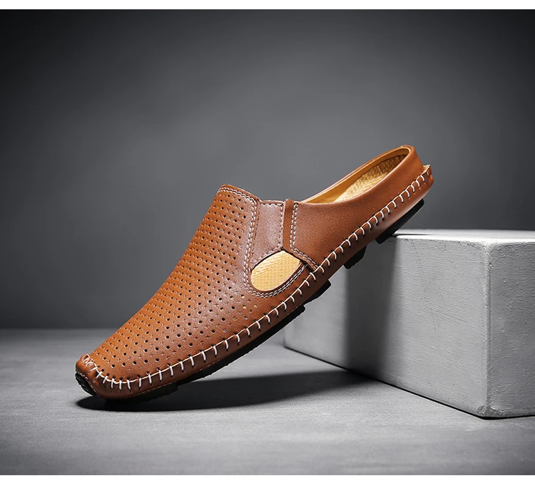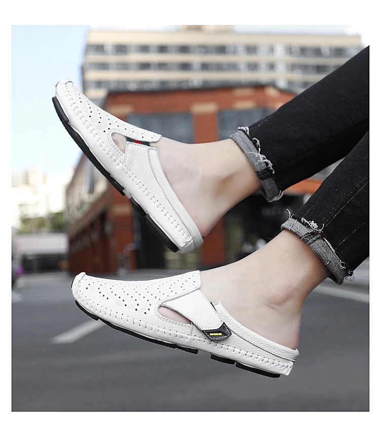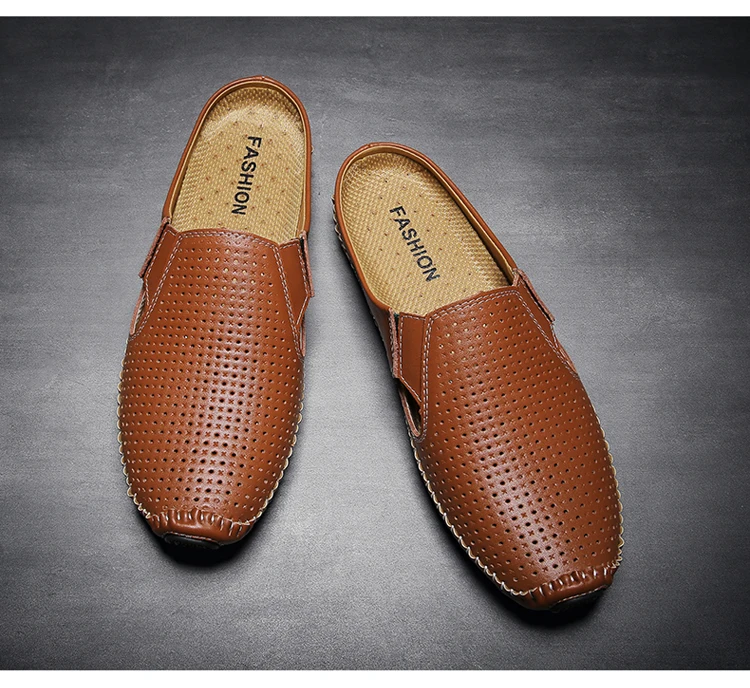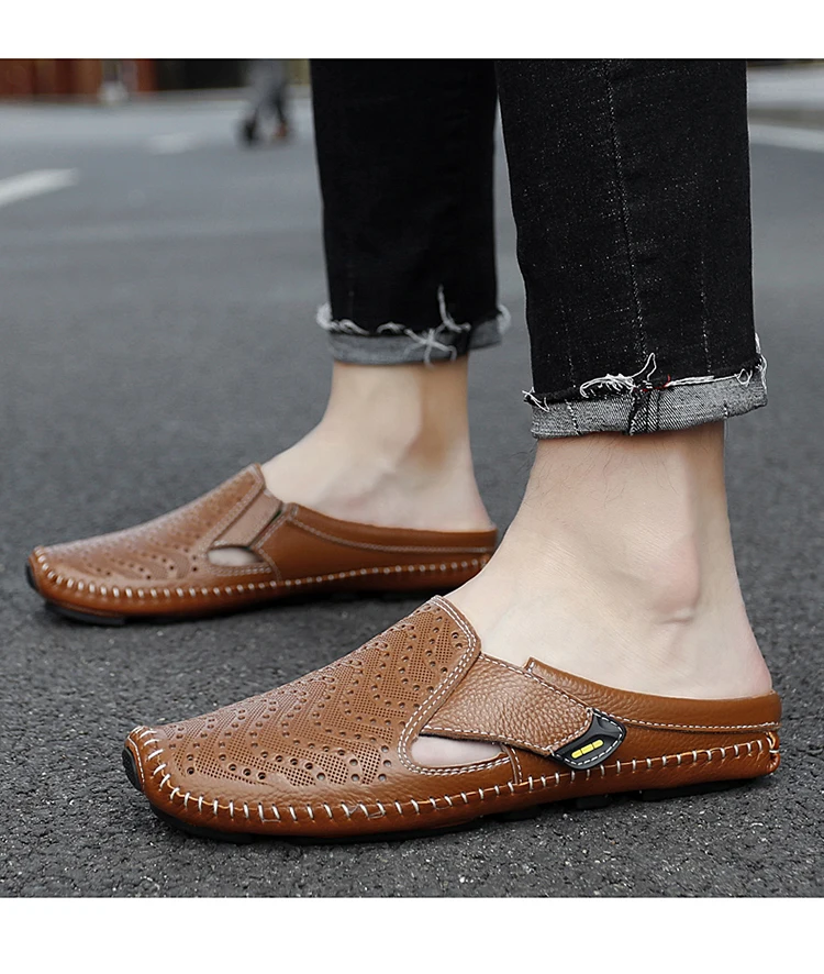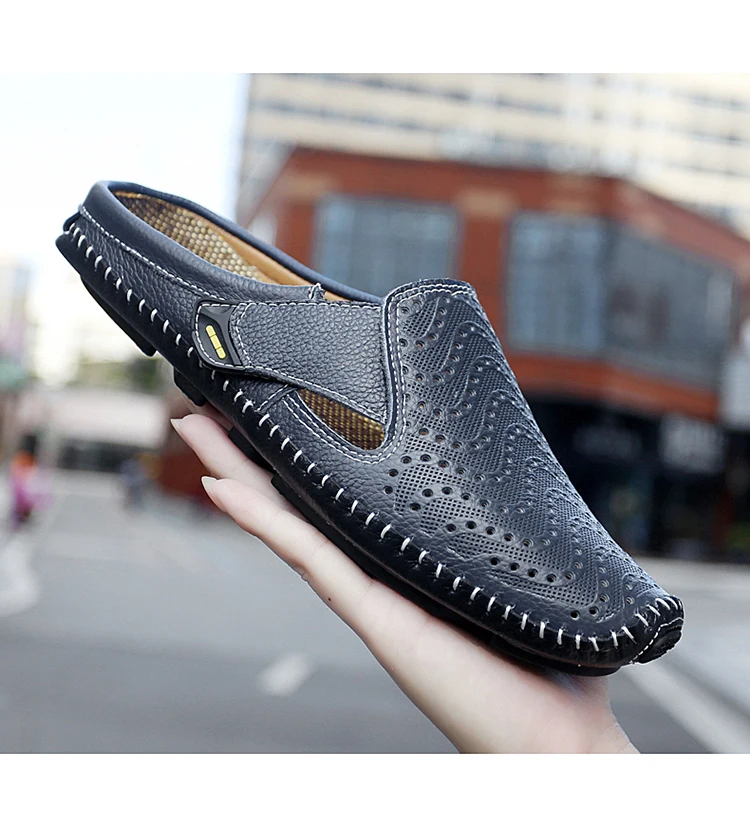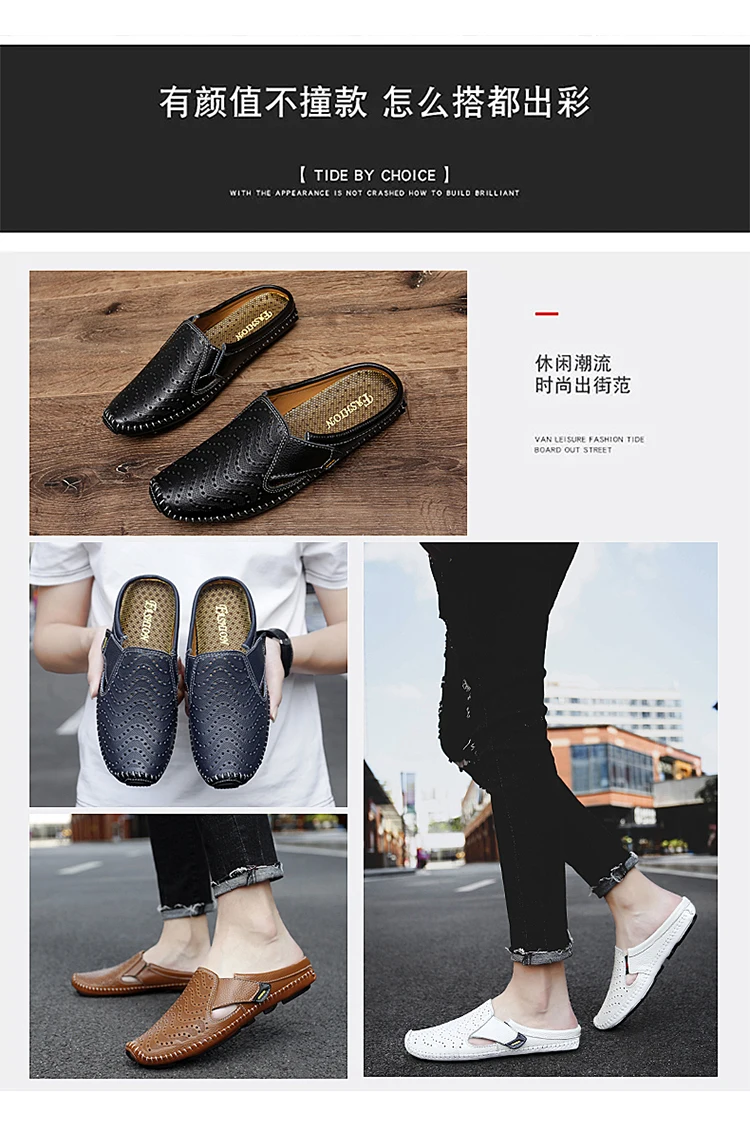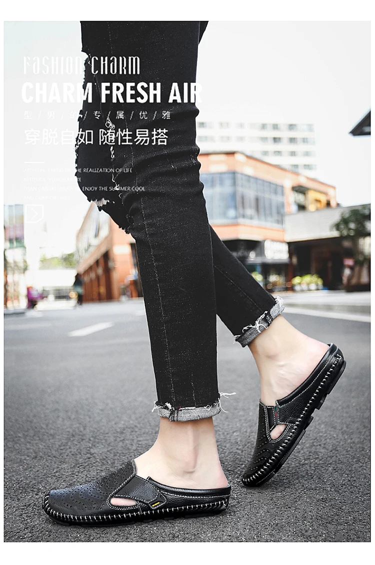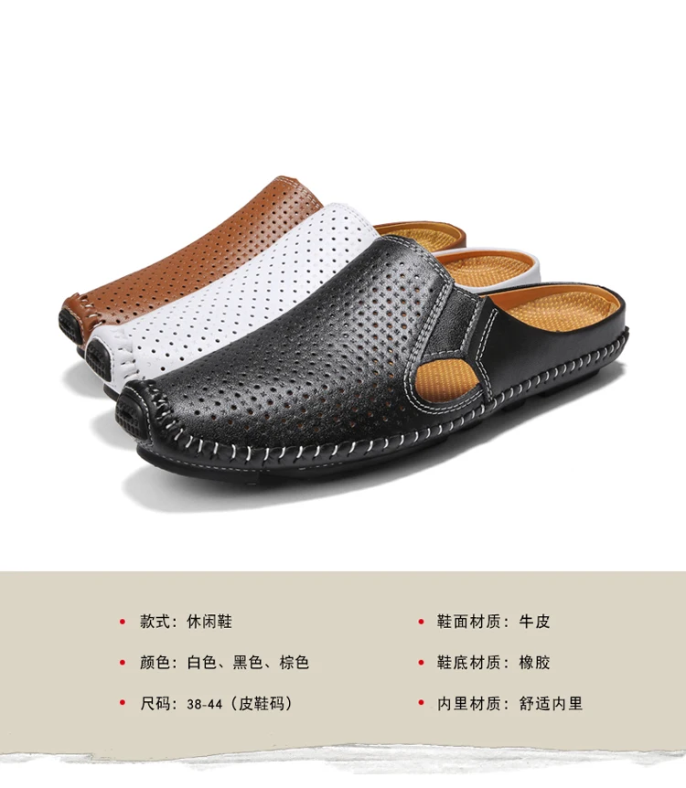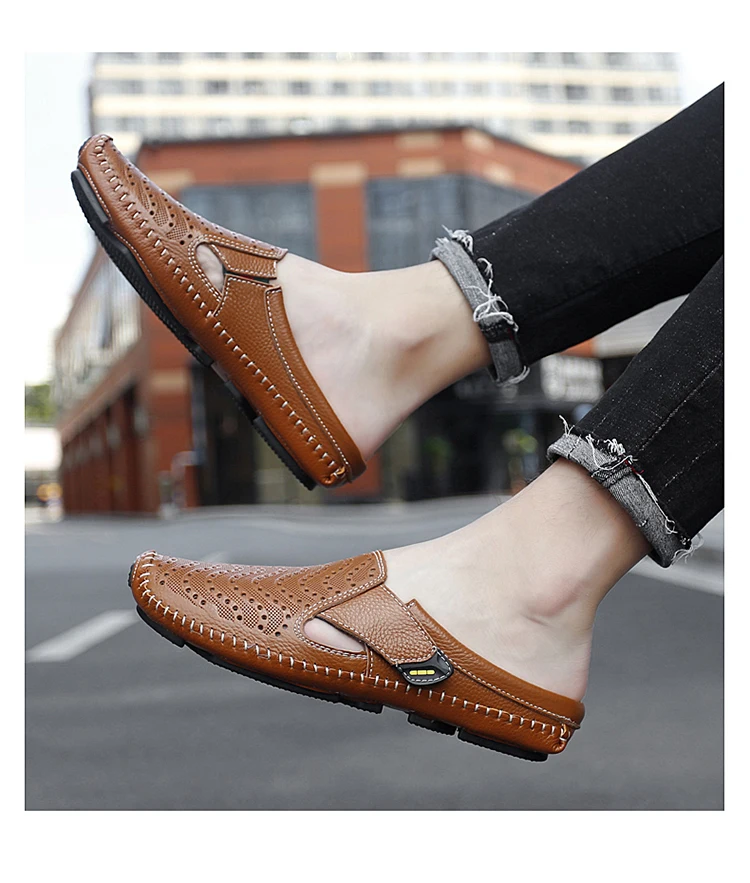 Men Summer Fashion Cow Split Casual Mules Male Breathable Half Loafer Slippers Mocassins Comfy Soft Flat Slip-on Leather Sandals![]()