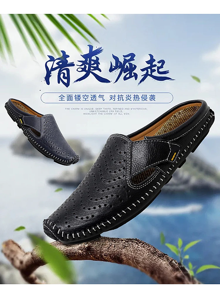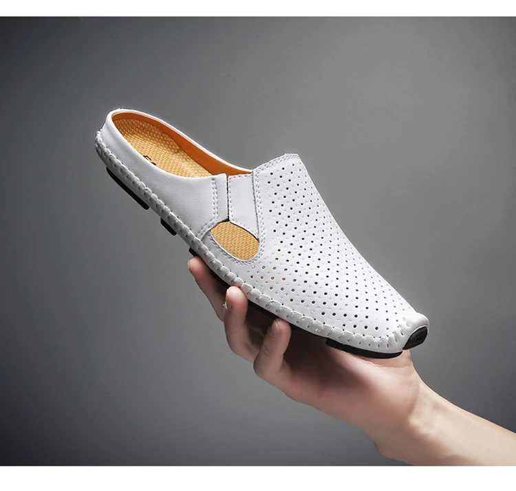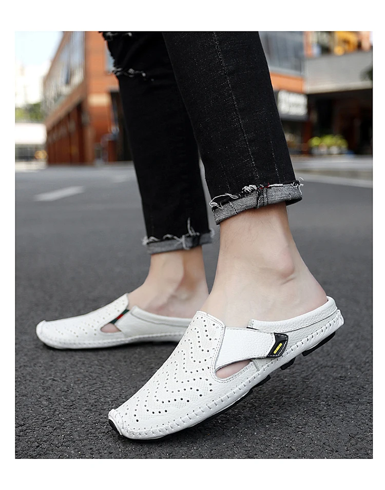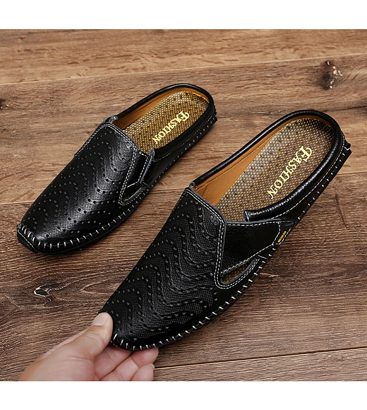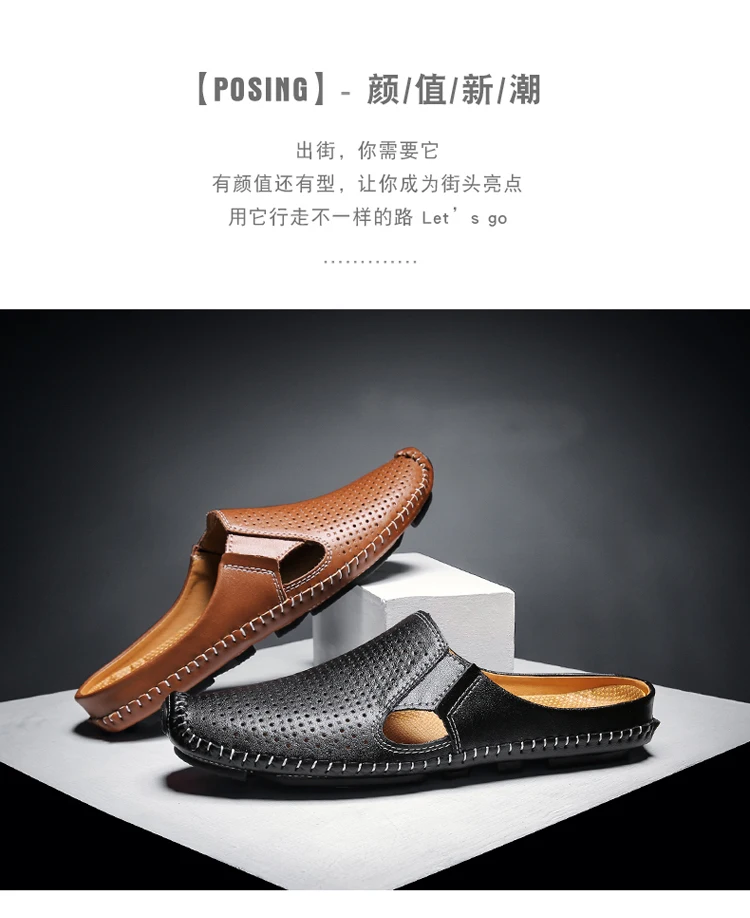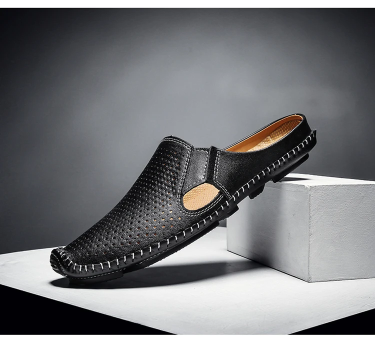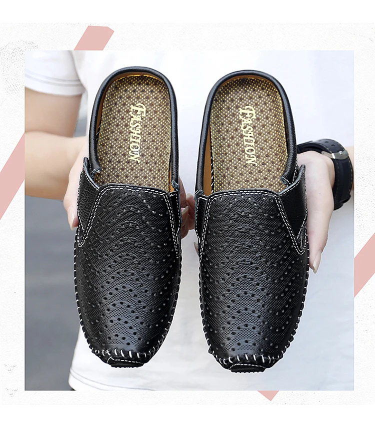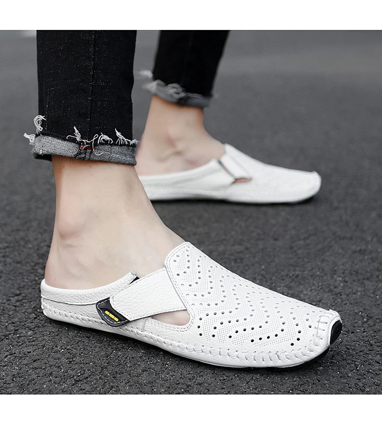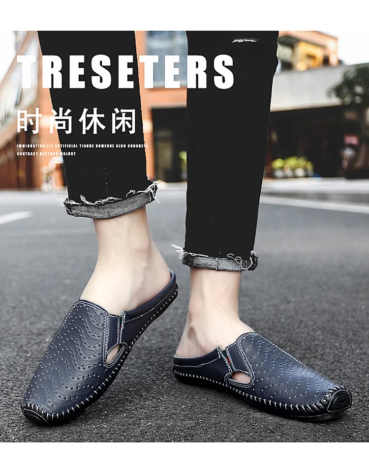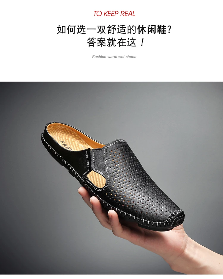 Men Summer Fashion Cow Split Casual Mules Male Breathable Half Loafer Slippers Mocassins Comfy Soft Flat Slip-on Leather Sandals![]()