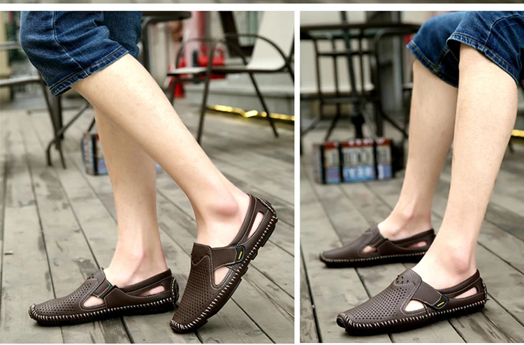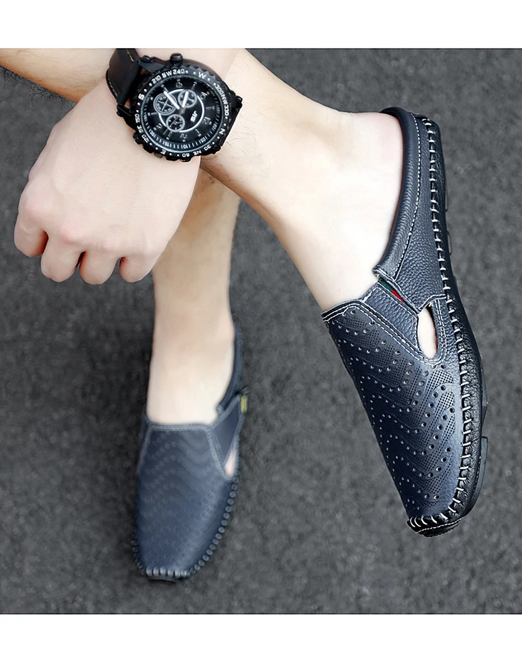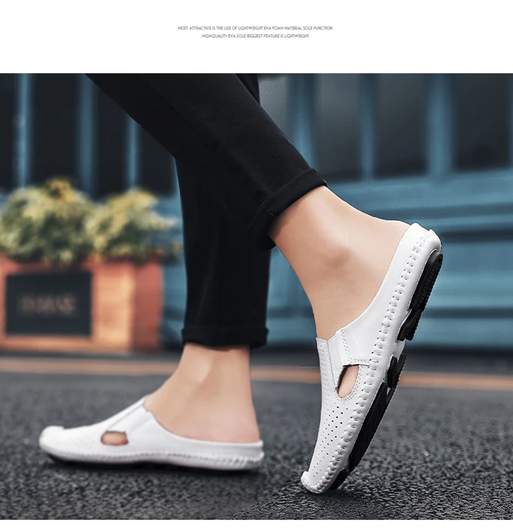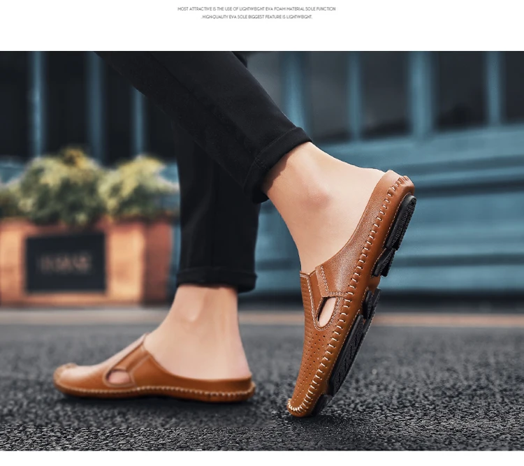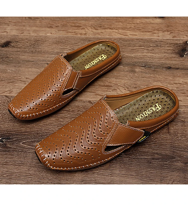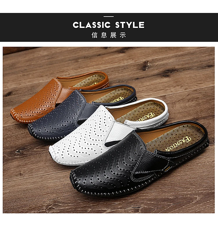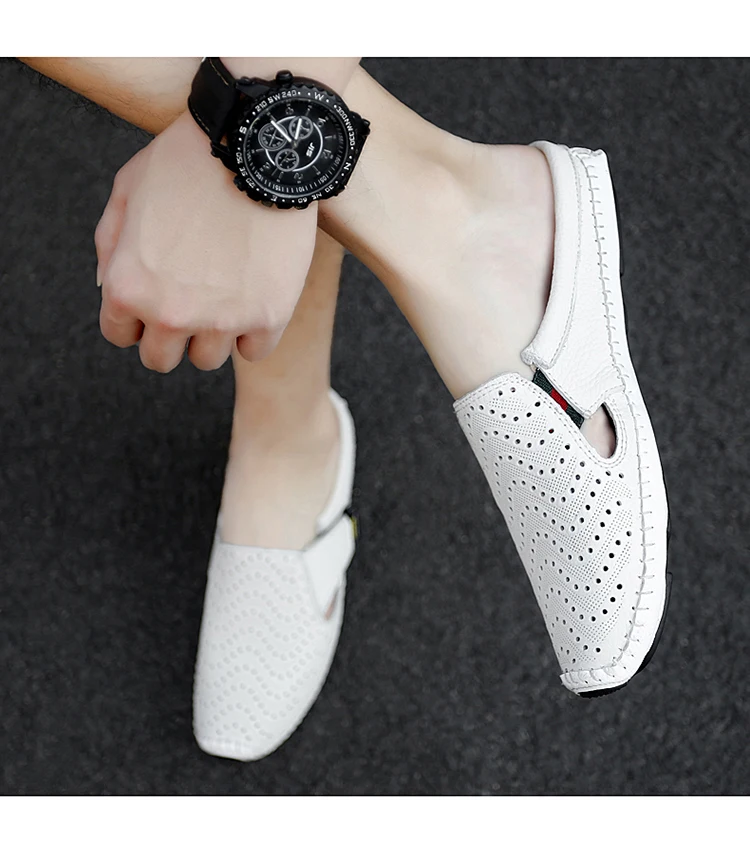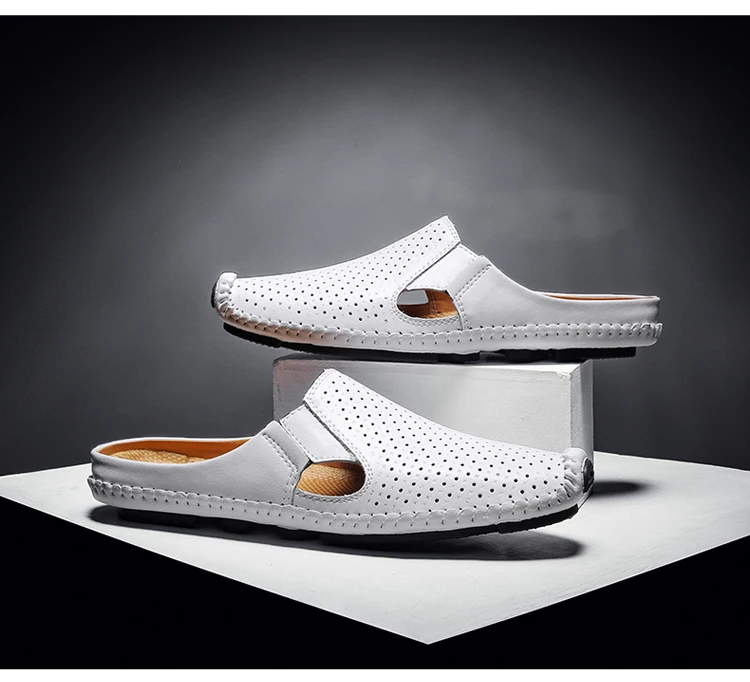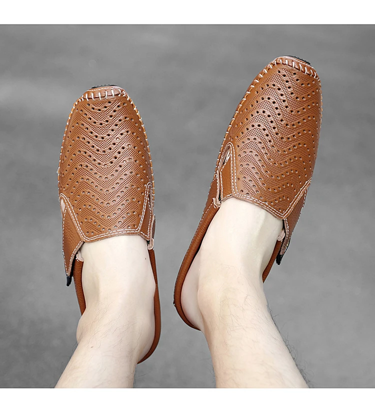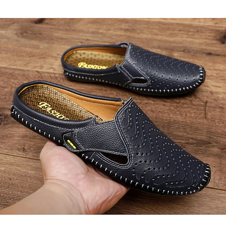 Men Summer Fashion Cow Split Casual Mules Male Breathable Half Loafer Slippers Mocassins Comfy Soft Flat Slip-on Leather Sandals![]()