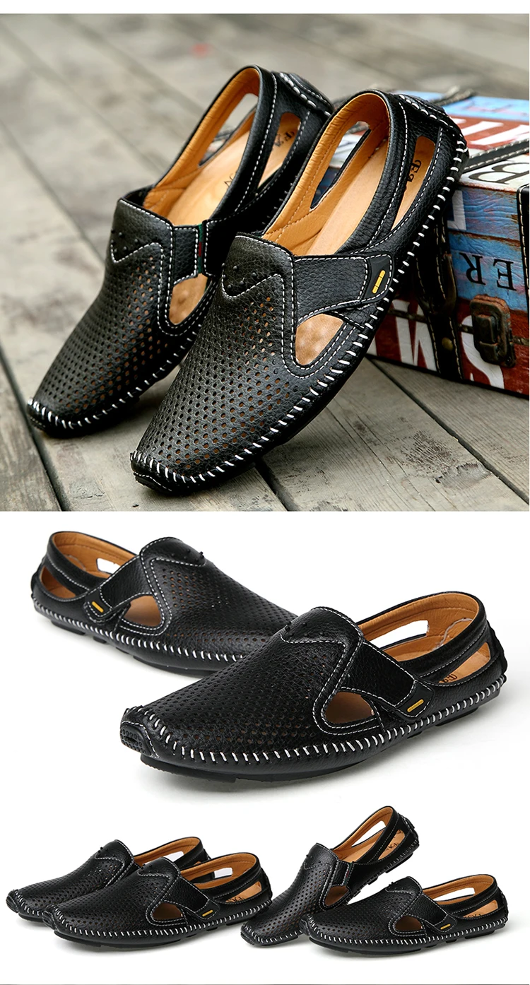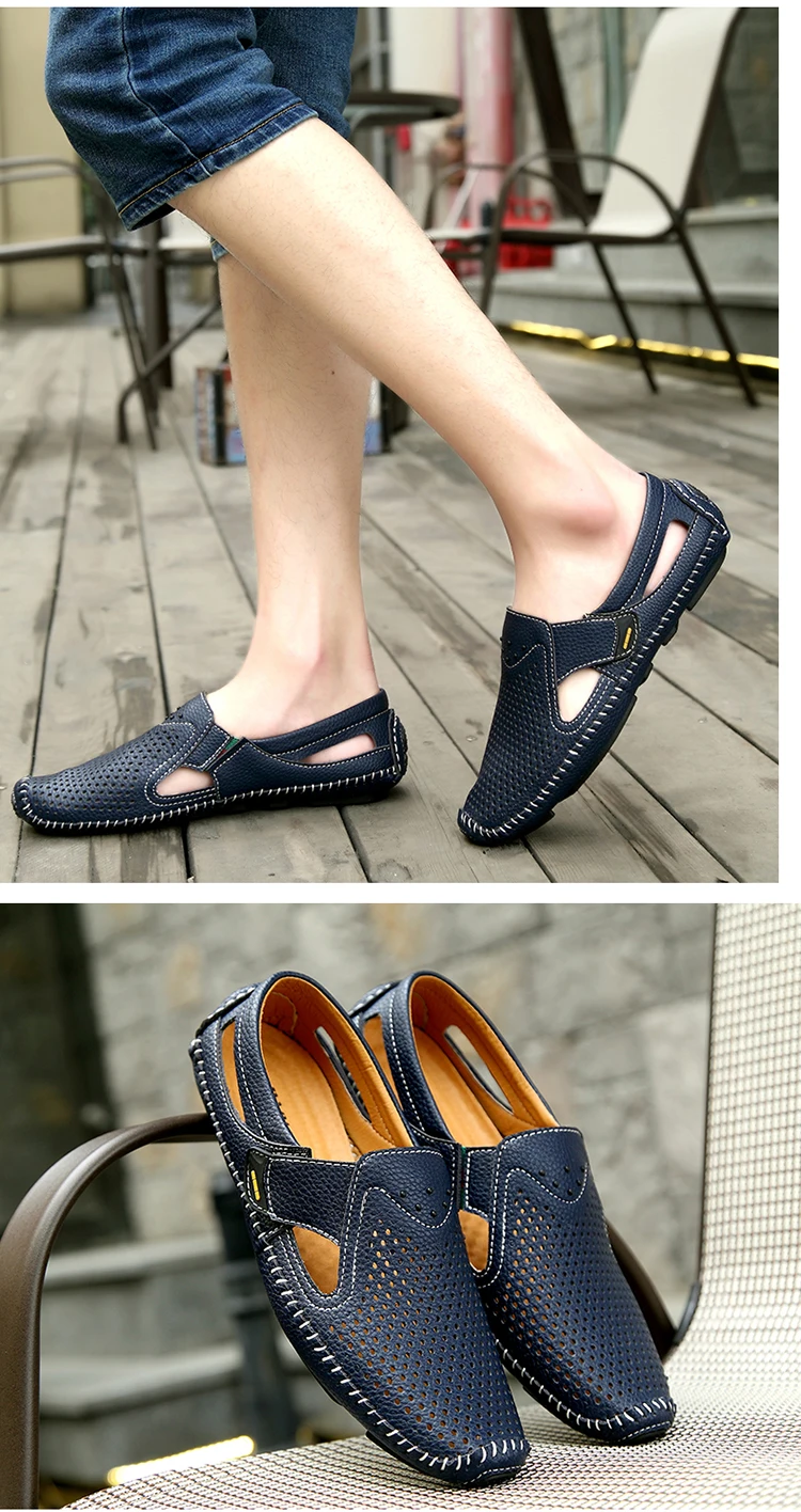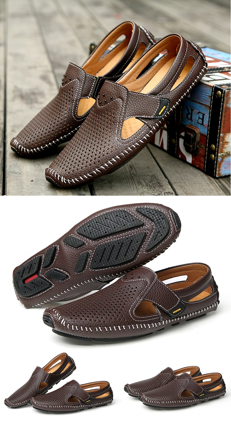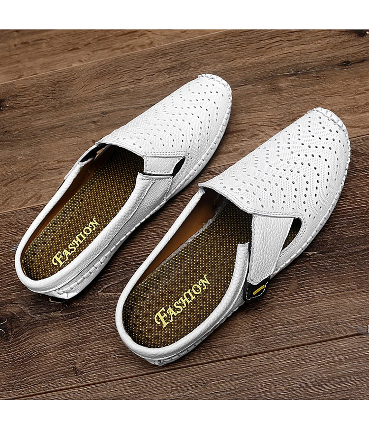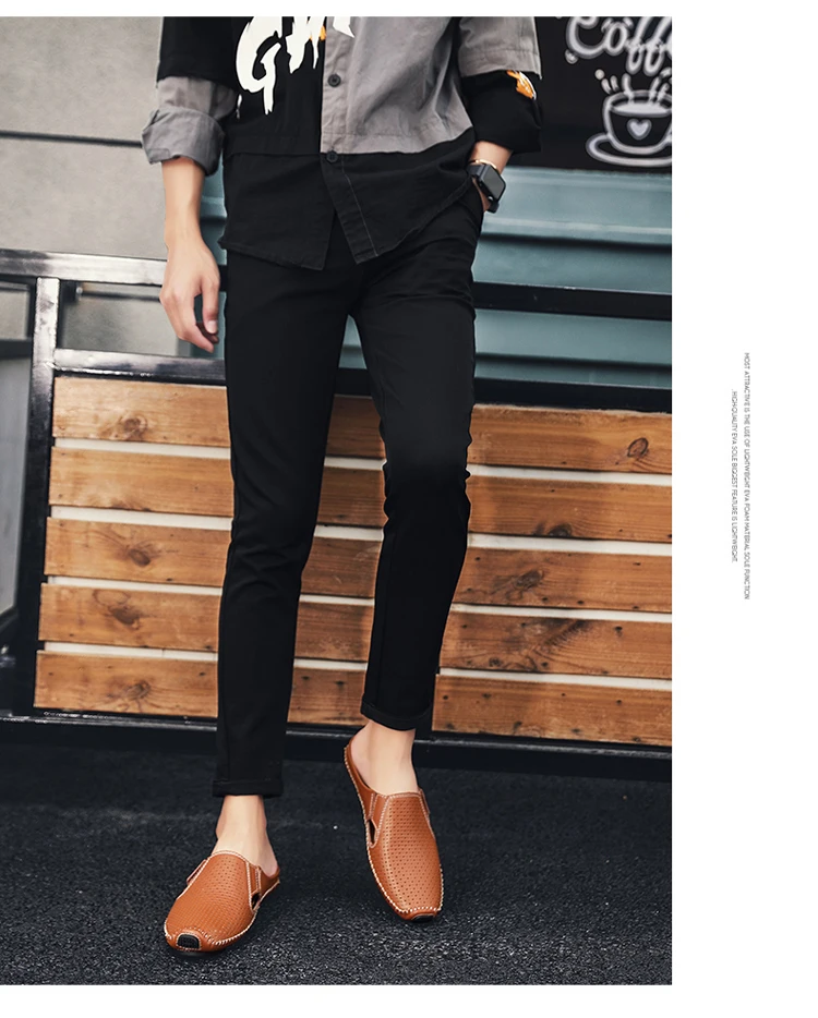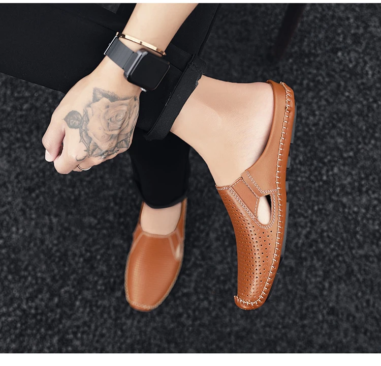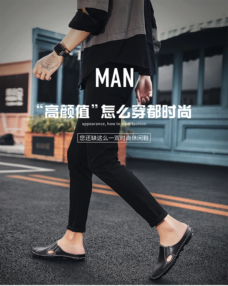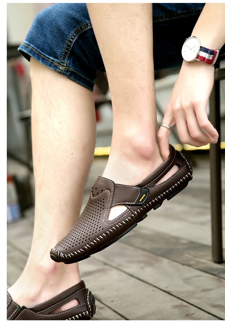 Men Summer Fashion Cow Split Casual Mules Male Breathable Half Loafer Slippers Mocassins Comfy Soft Flat Slip-on Leather Sandals![]()