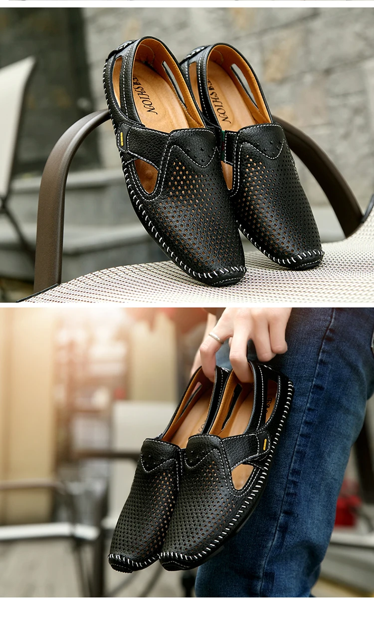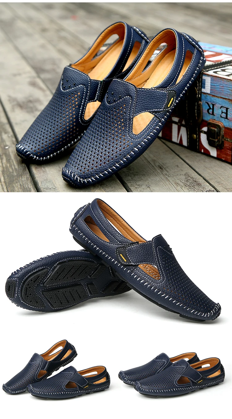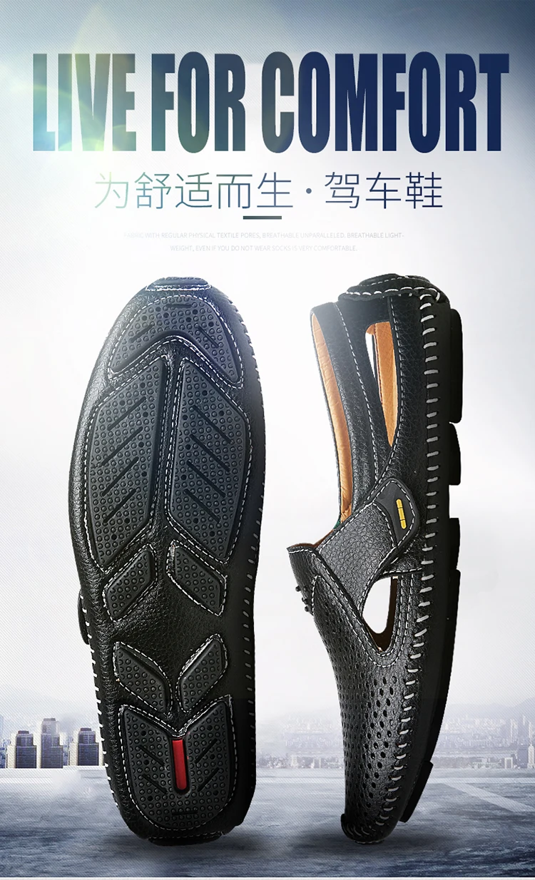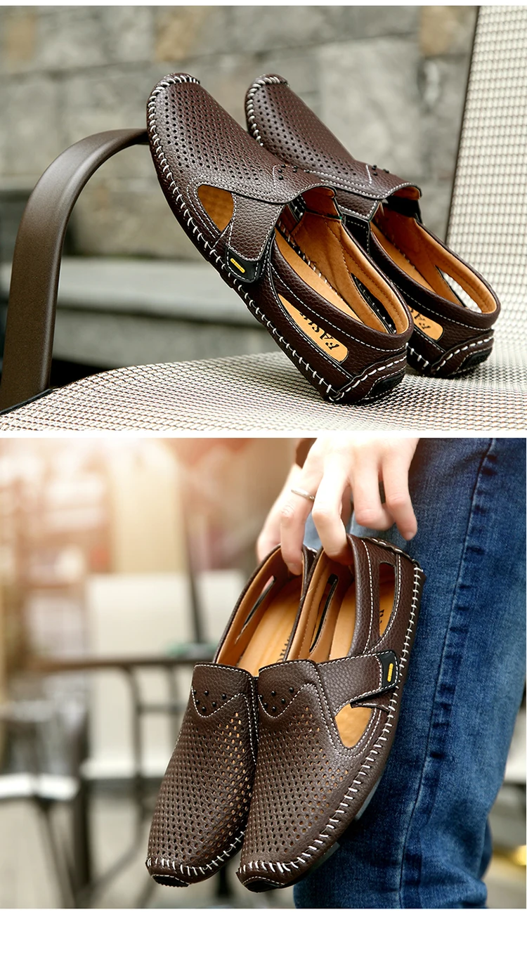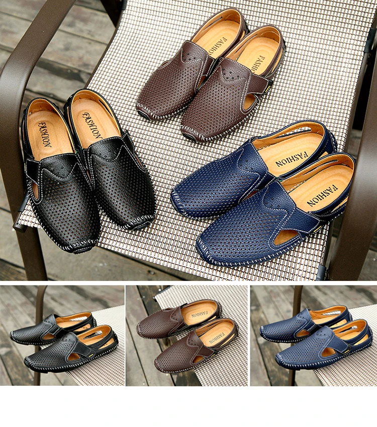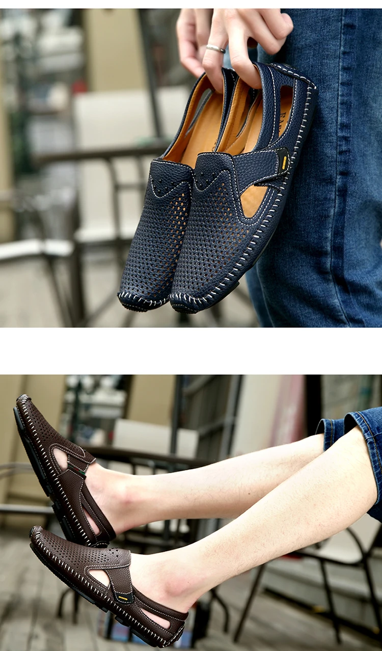 Men Summer Fashion Cow Split Casual Mules Male Breathable Half Loafer Slippers Mocassins Comfy Soft Flat Slip-on Leather Sandals![]()