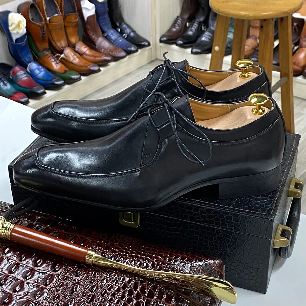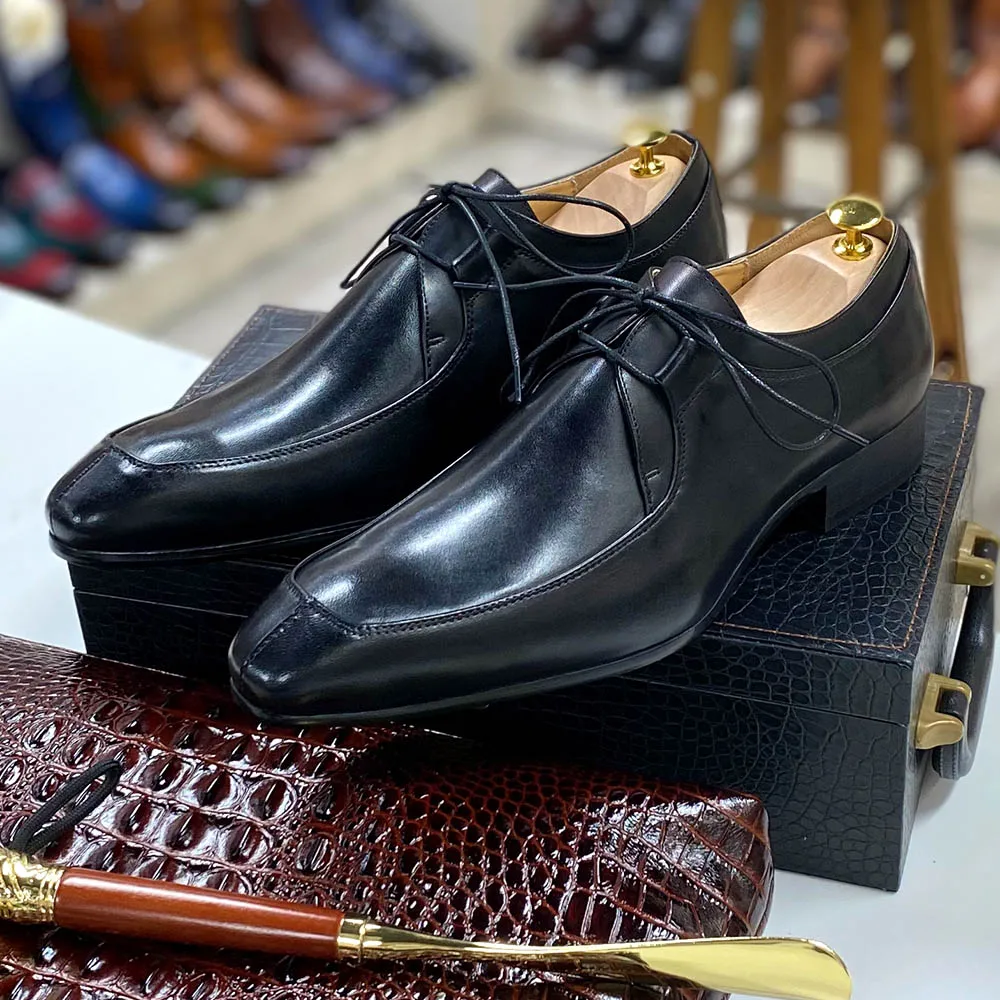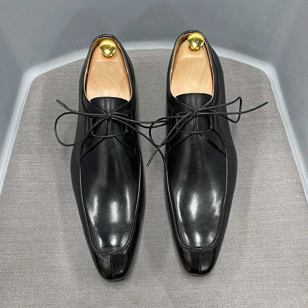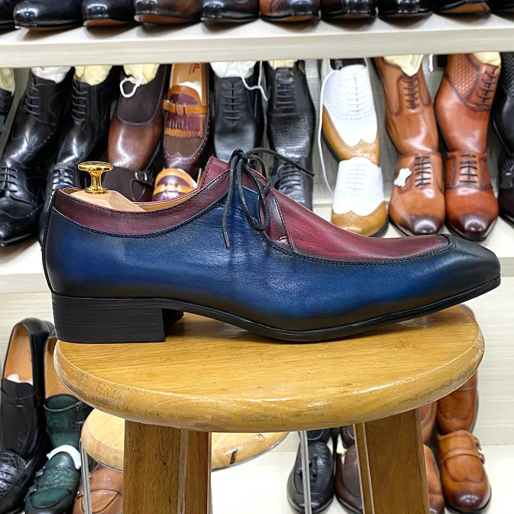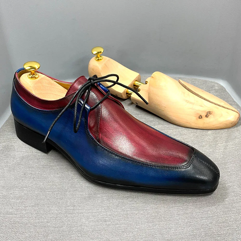 Mens Formal Genuine Cow Leather Oxford Shoes Square Toe Social Male Wedding Dress Mixed Colors Lace Up Daily Office Men Shoes