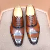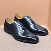 Genuine Leather Men’s Oxford Handmade Dress Shoes for Men Classic Lace Up Solid Cap Toe Office Wedding Pointed Formal Footwear