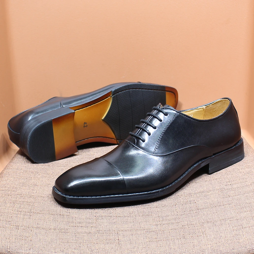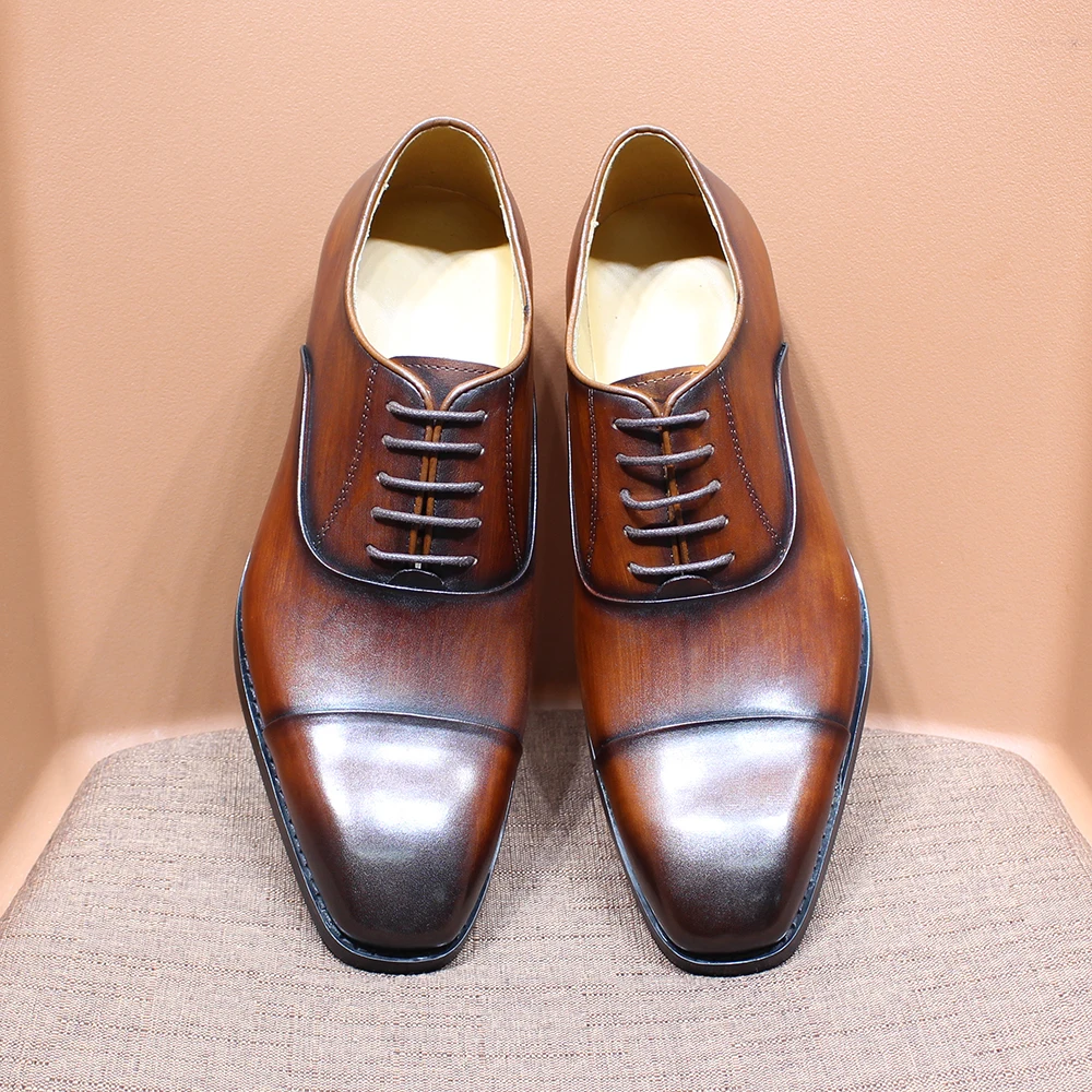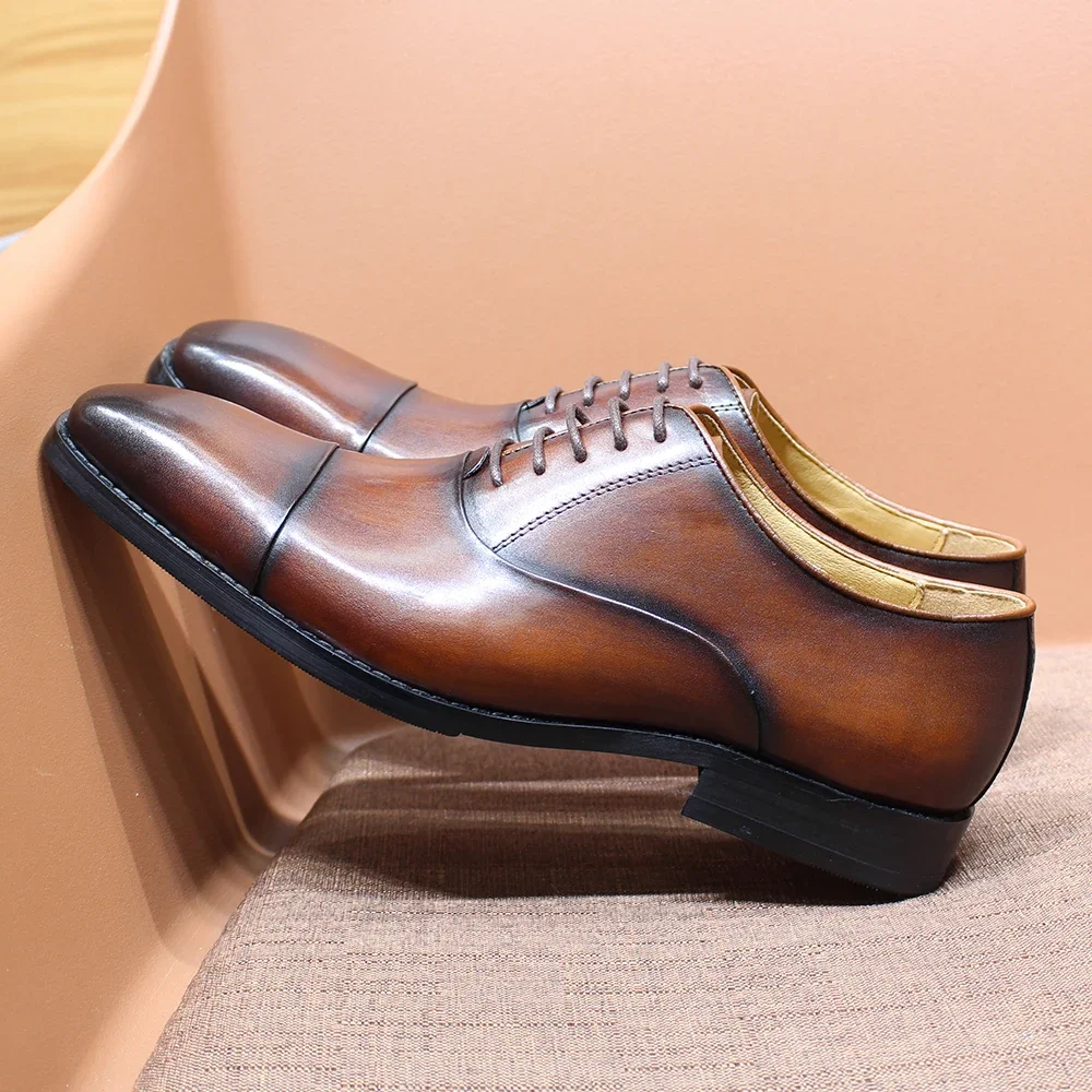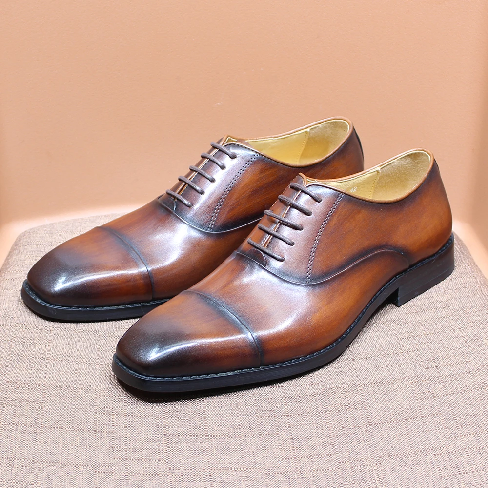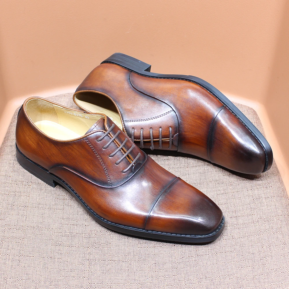Genuine Leather Men’s Oxford Handmade Dress Shoes for Men Classic Lace Up Solid Cap Toe Office Wedding Pointed Formal Footwear