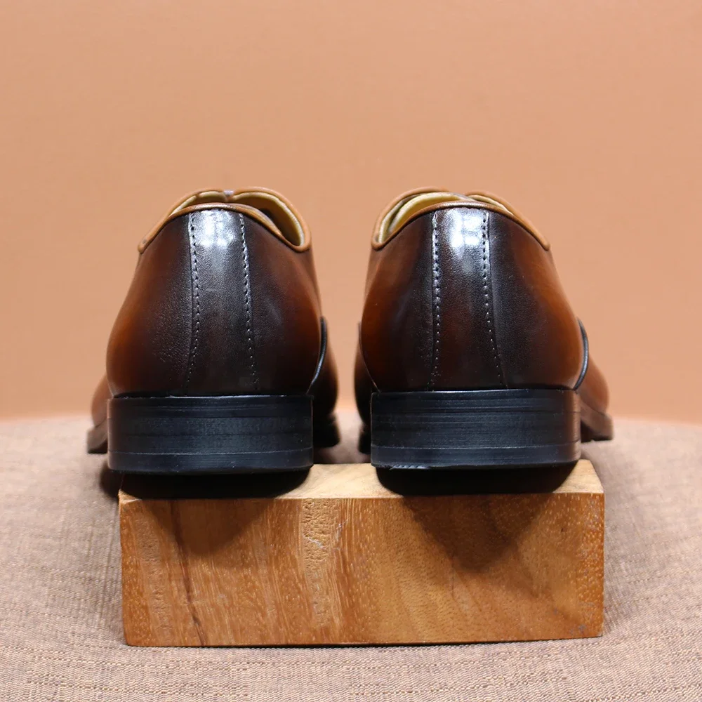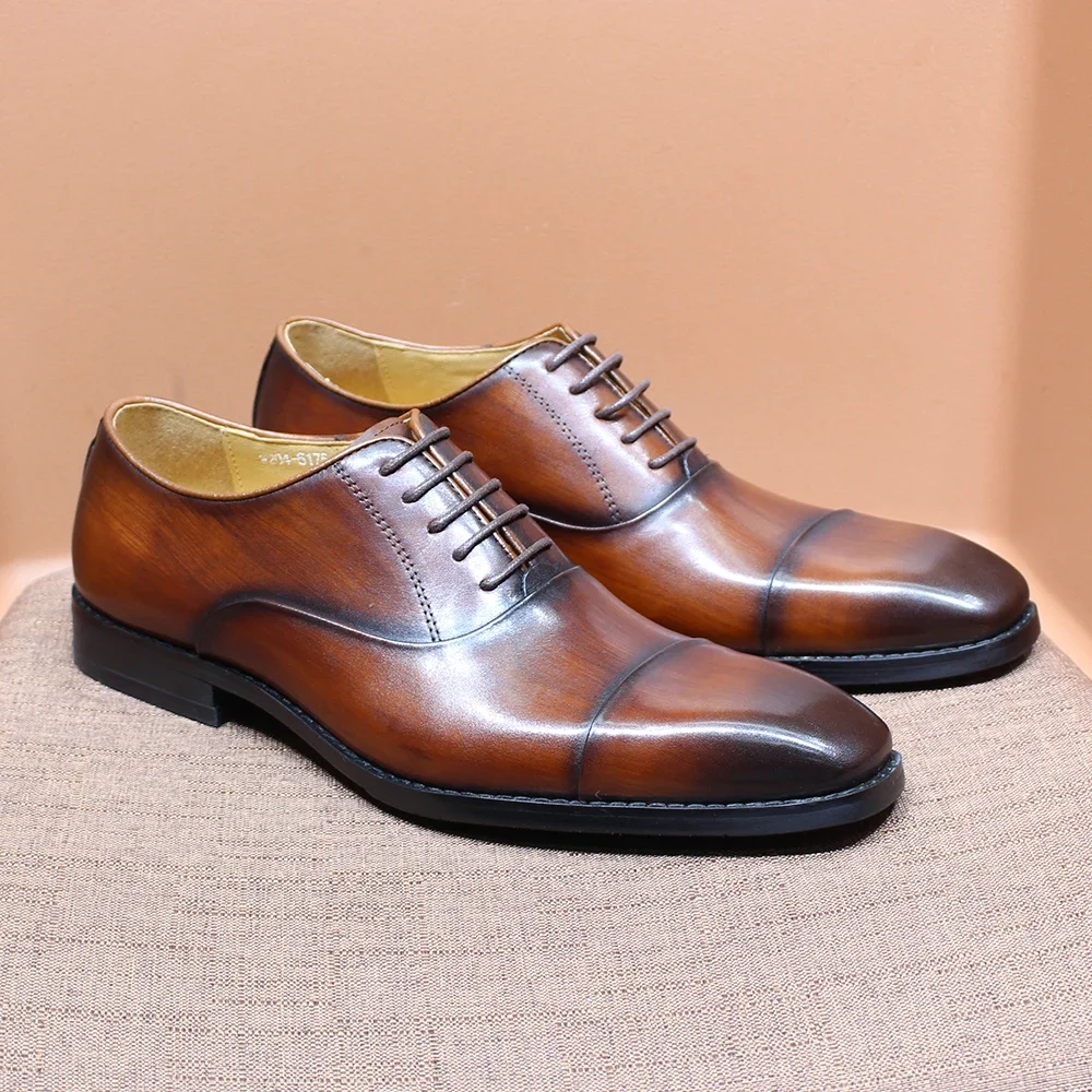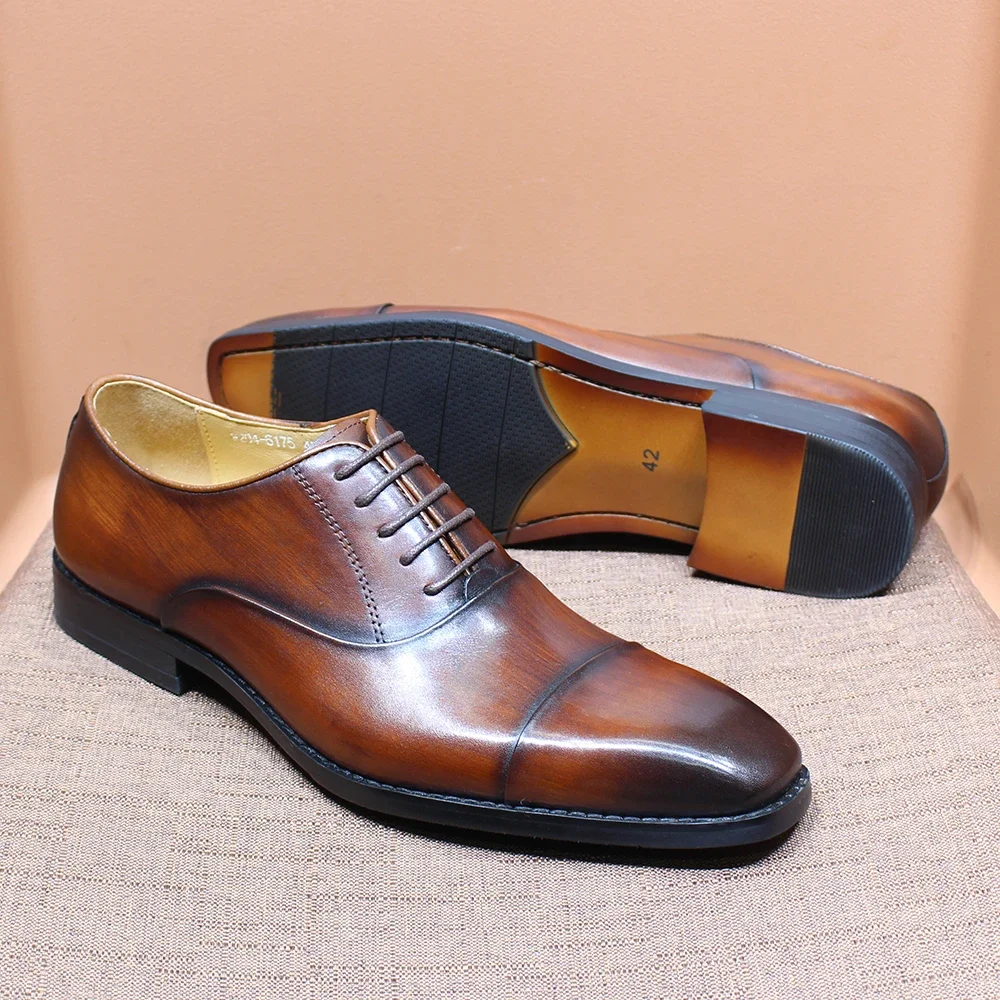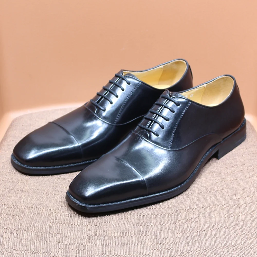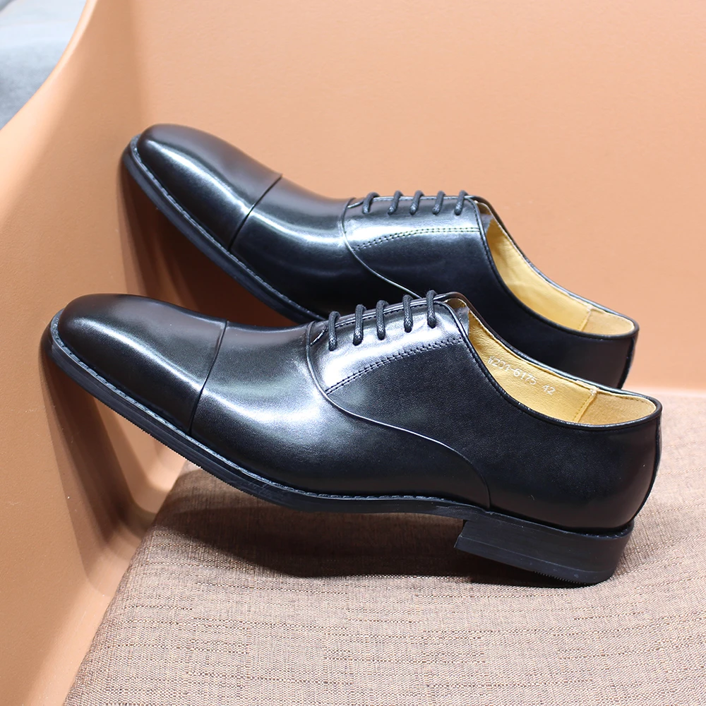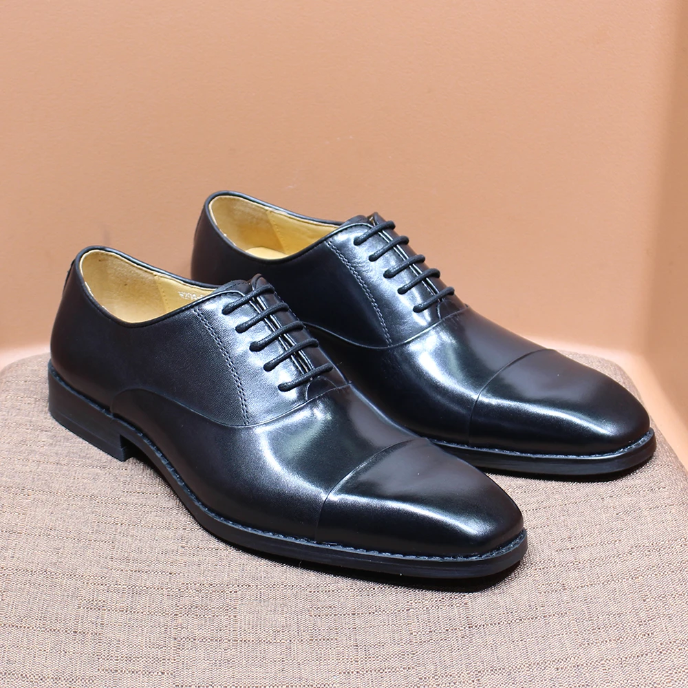 Genuine Leather Men’s Oxford Handmade Dress Shoes for Men Classic Lace Up Solid Cap Toe Office Wedding Pointed Formal Footwear