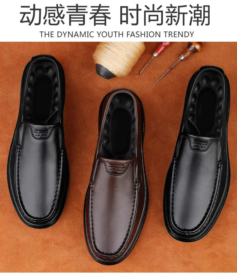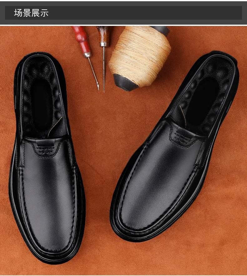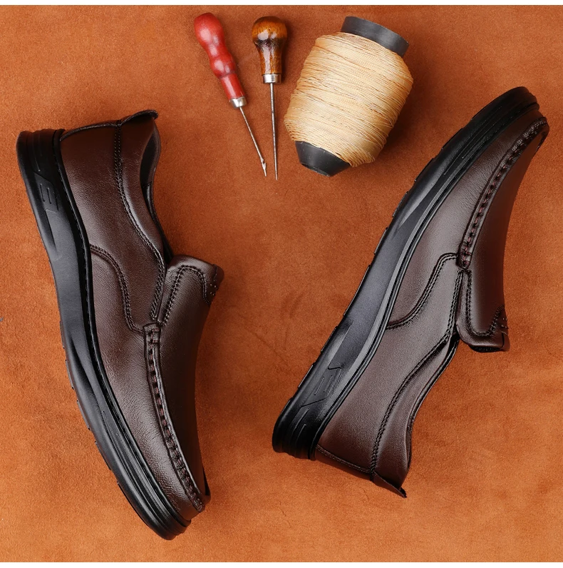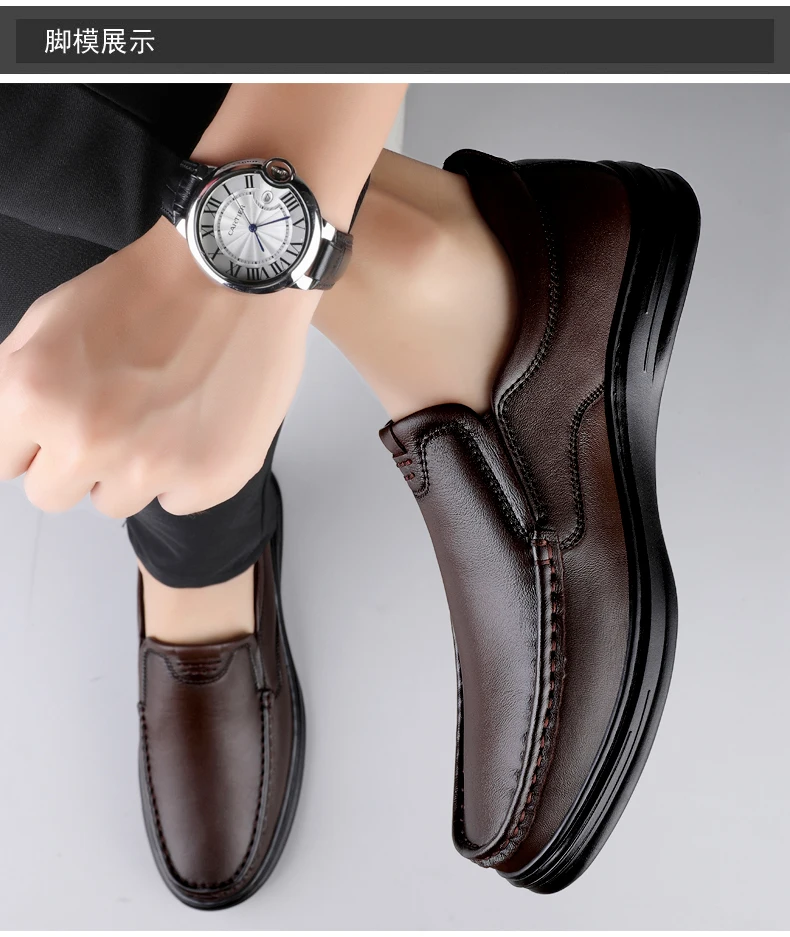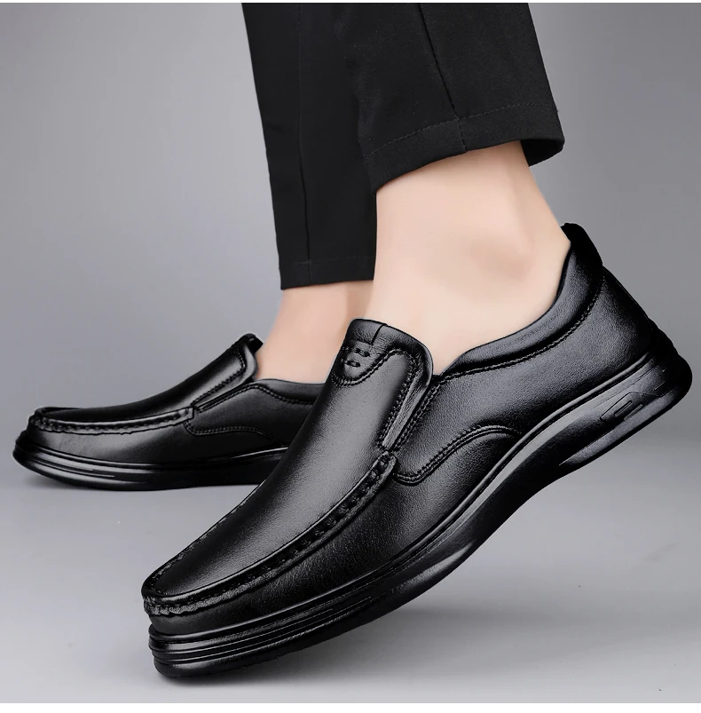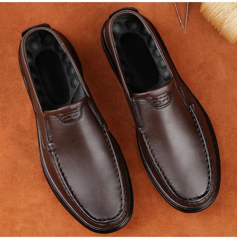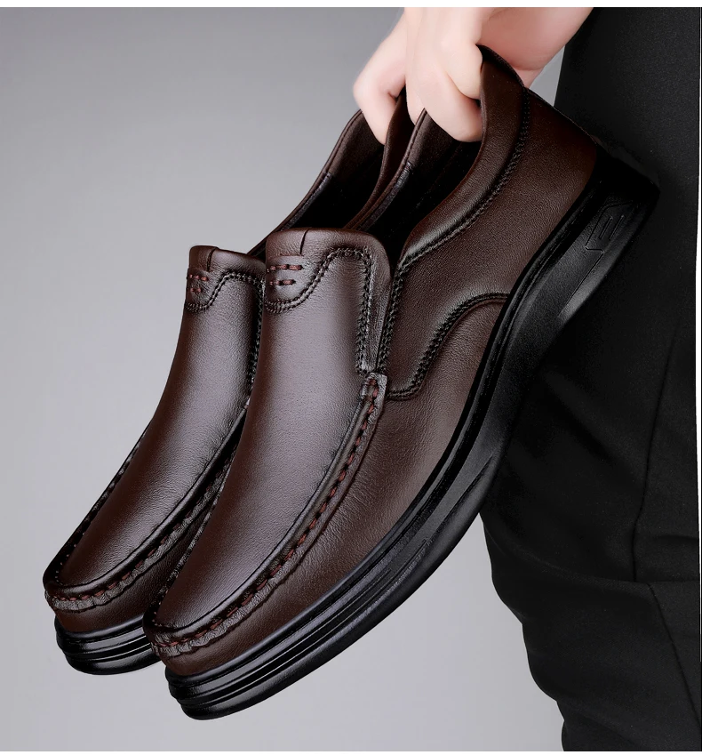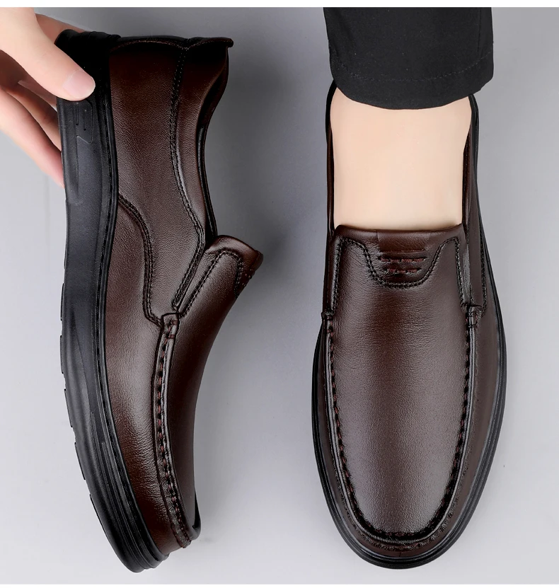Men’s Shoes Wide Width Leather Slip-On Casual Shoes Lightweight For Swollen Feet with Arch Support Pain Relief