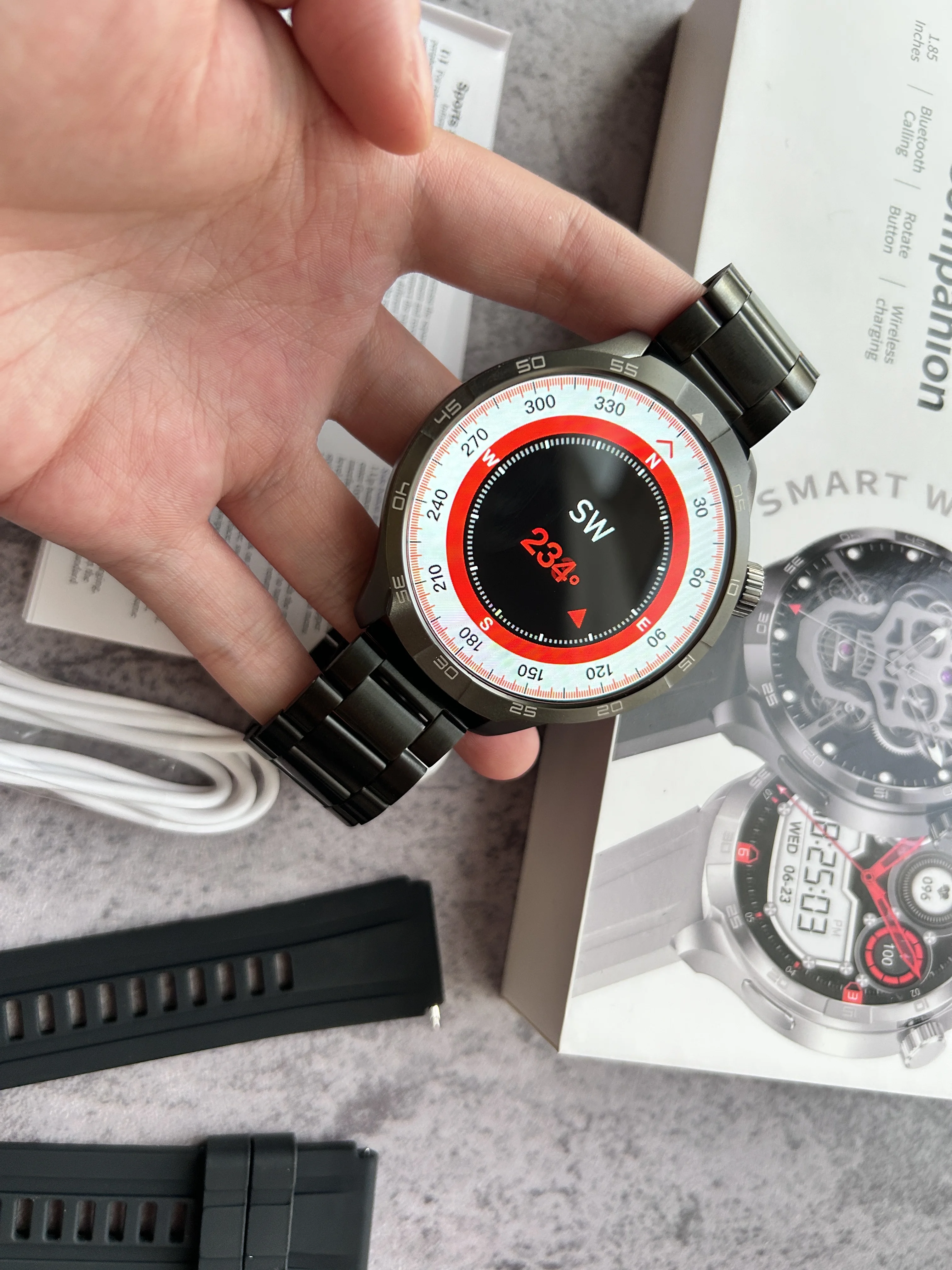 1.【1.85 High-Resolution Screen】Smart watch has a 1.85 full touch IPS screen with a 360*360 resolution.