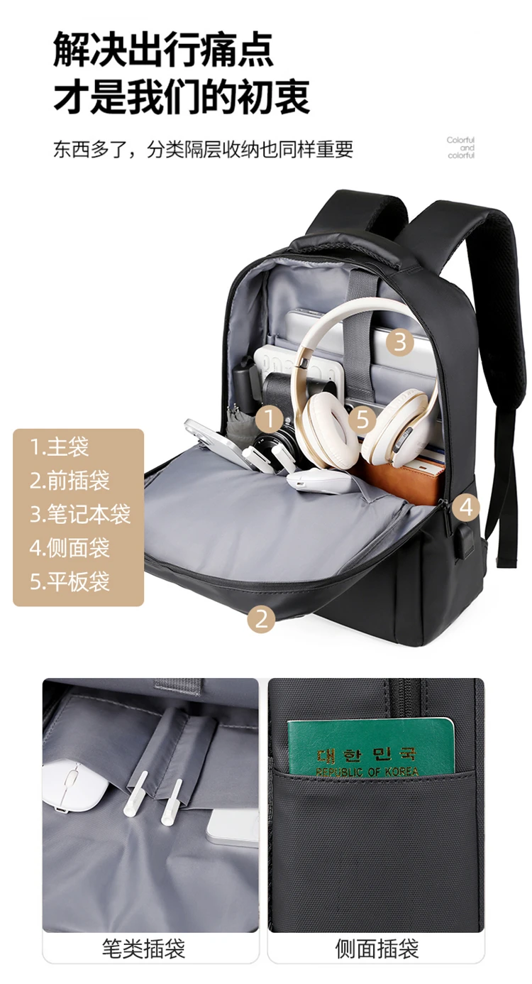 Minimalist Stylish Waterproof USB Charging Backpack Unisex Large Capacity Business Laptop Bag Multifunctional Travel School Back