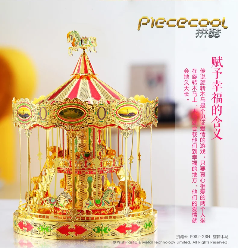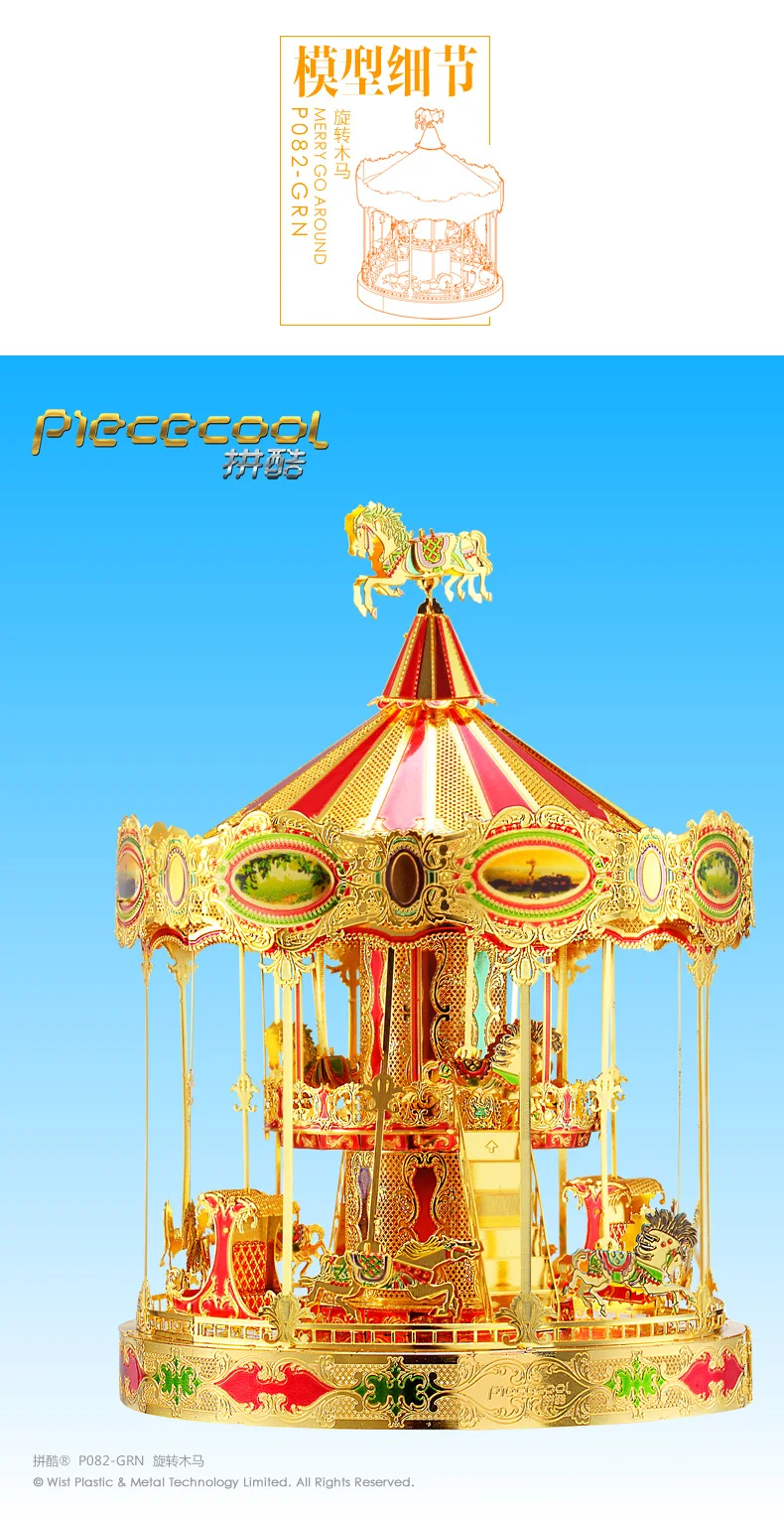 MMZ MODEL Piececool 3D Metal Puzzle Merry Go Round Assembly Metal Model Kit DIY 3D Laser Cut Model puzzle Toys Gift for girls