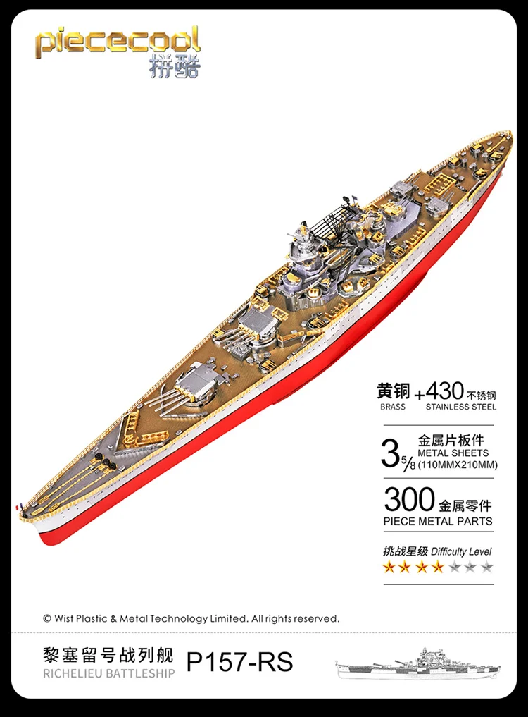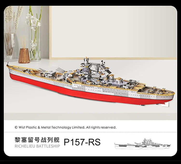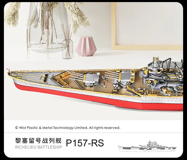 MMZ MODEL Piececool 3D Metal Puzzle P157 RICHELIEU BATTLESHIP DIY Assemble Model Kits Laser Cut Jigsaw toys gift for children