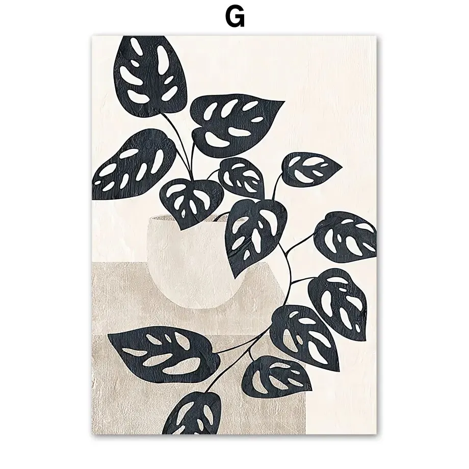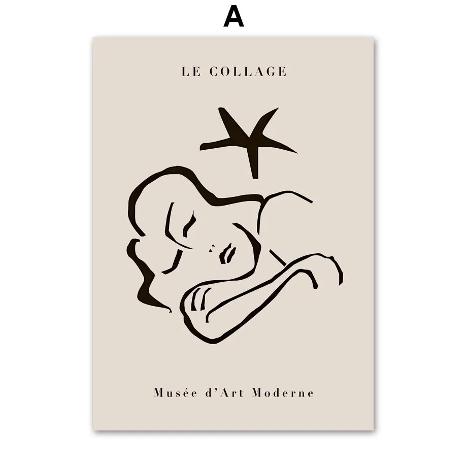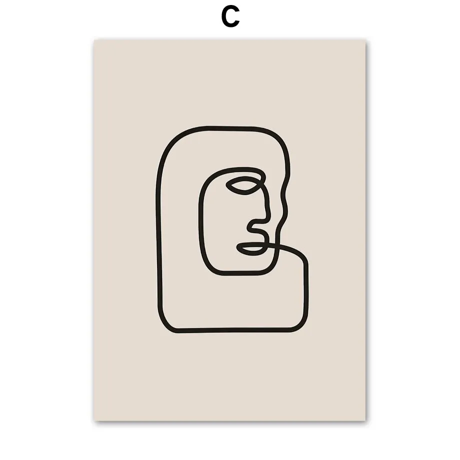 Modern Abstract Line Art Canvas Print Minimalist Girl and Leaves Wall Poster for Living Room
