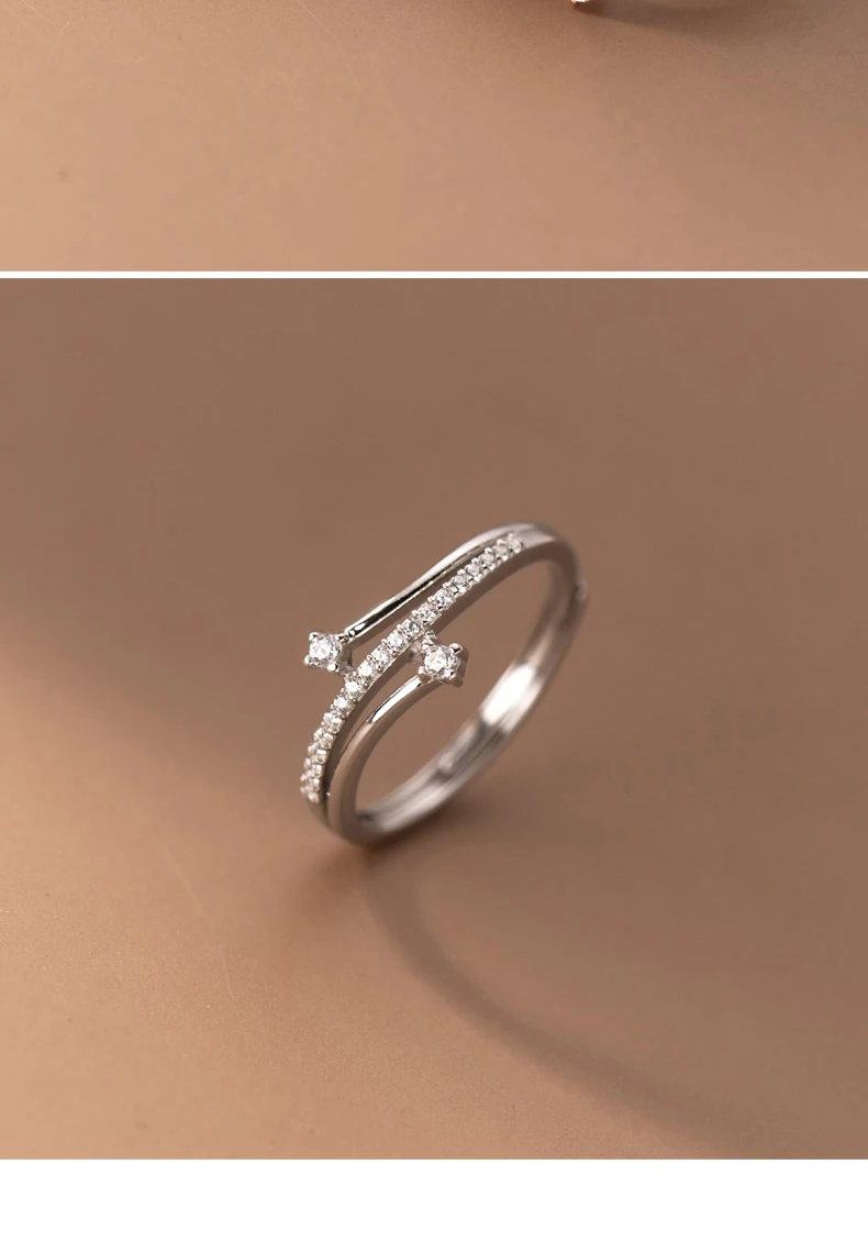 MODIAN 925 Sterling Silver Trendy Multi-Layer Open Size Rings Sparkling Clear CZ Adjustable Ring For Women Fine Jewelry
