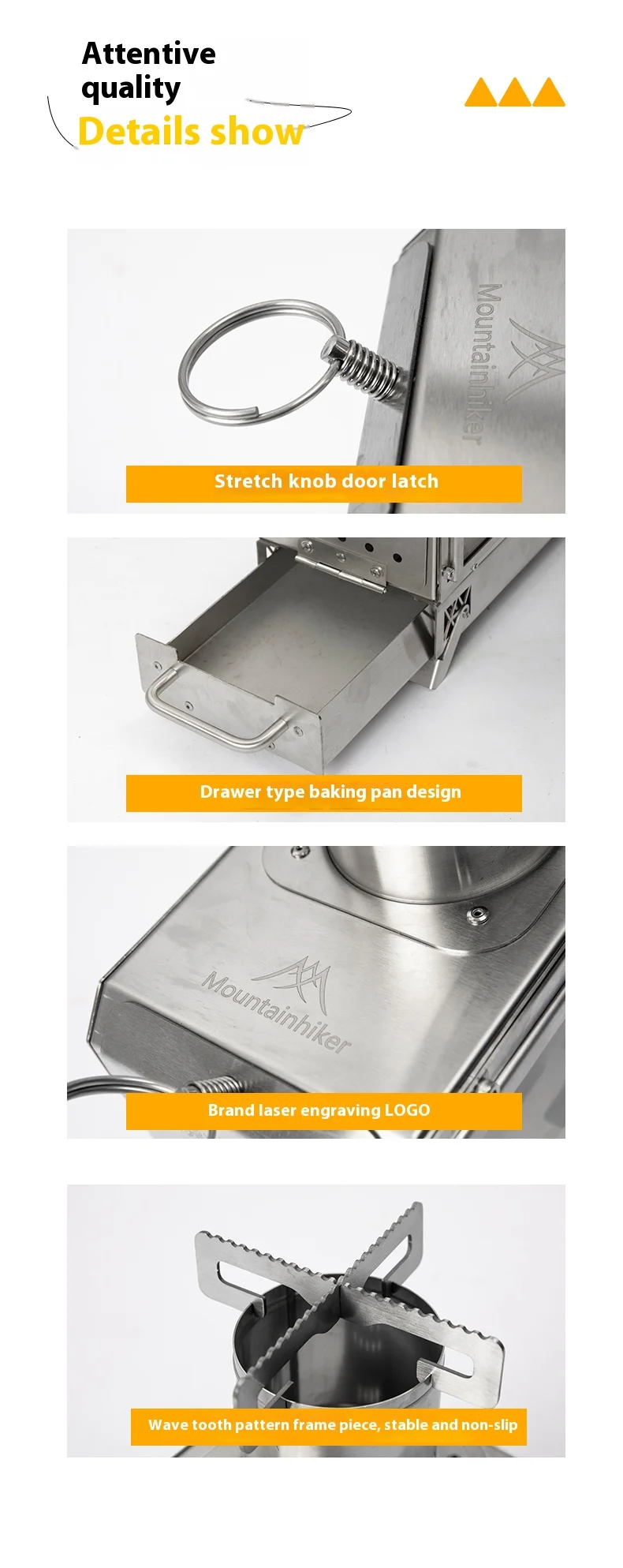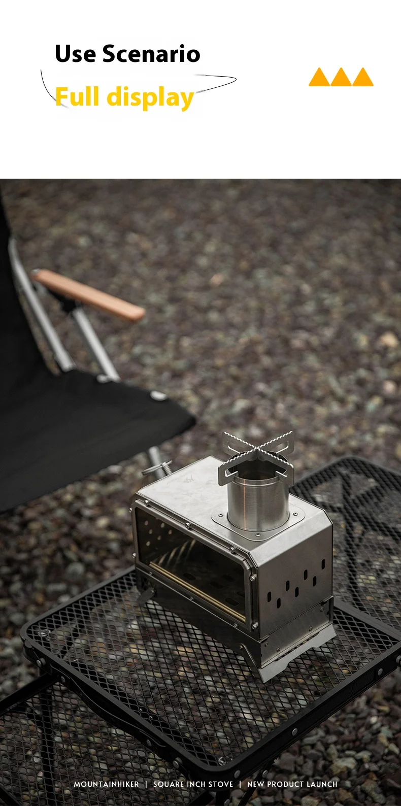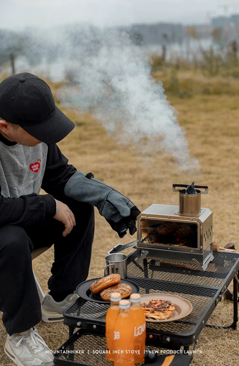 Mountainhiker camping, wood stove, tent boiling water, surrounding fireplace, square inch stove, folding stove, heating stove