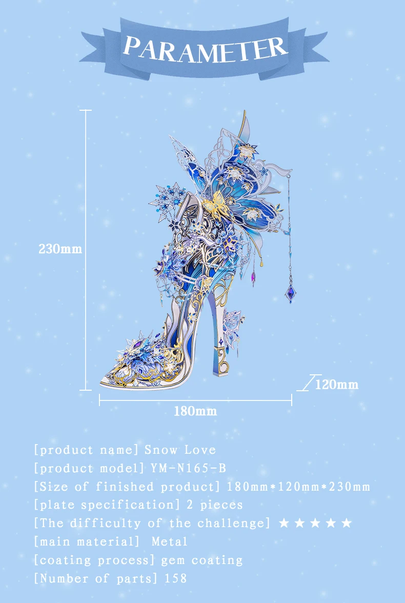 MU Snow Love Magic Crystal Shoes 3D Metal Puzzle Assembly Model Handmade DIY