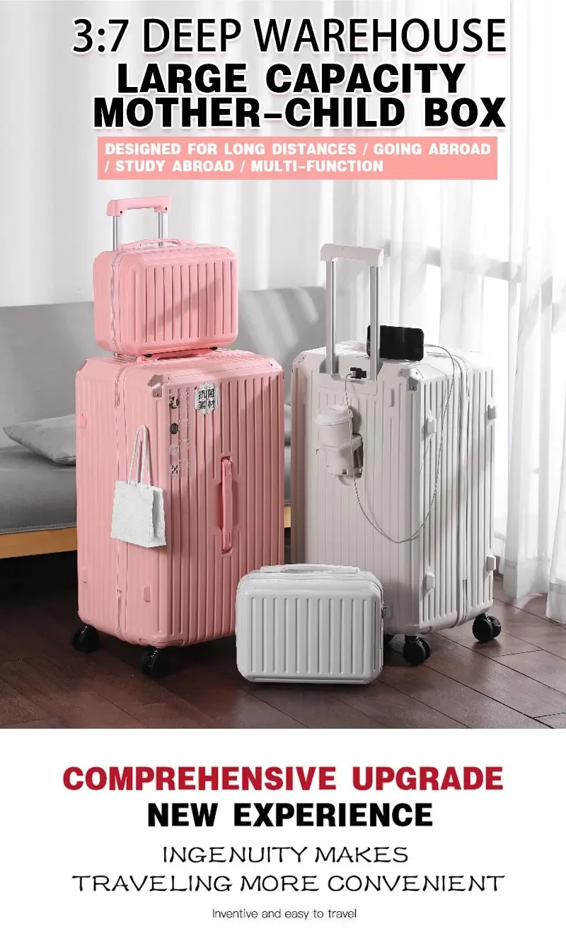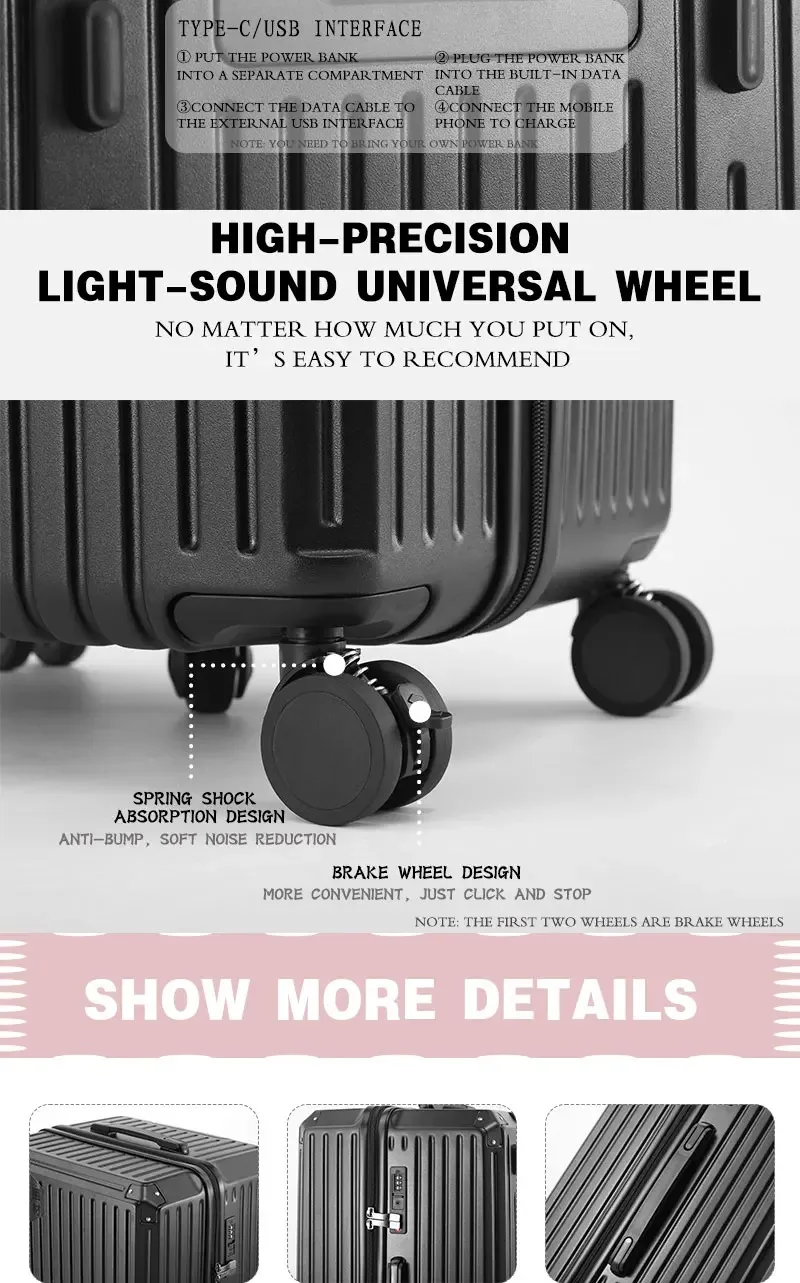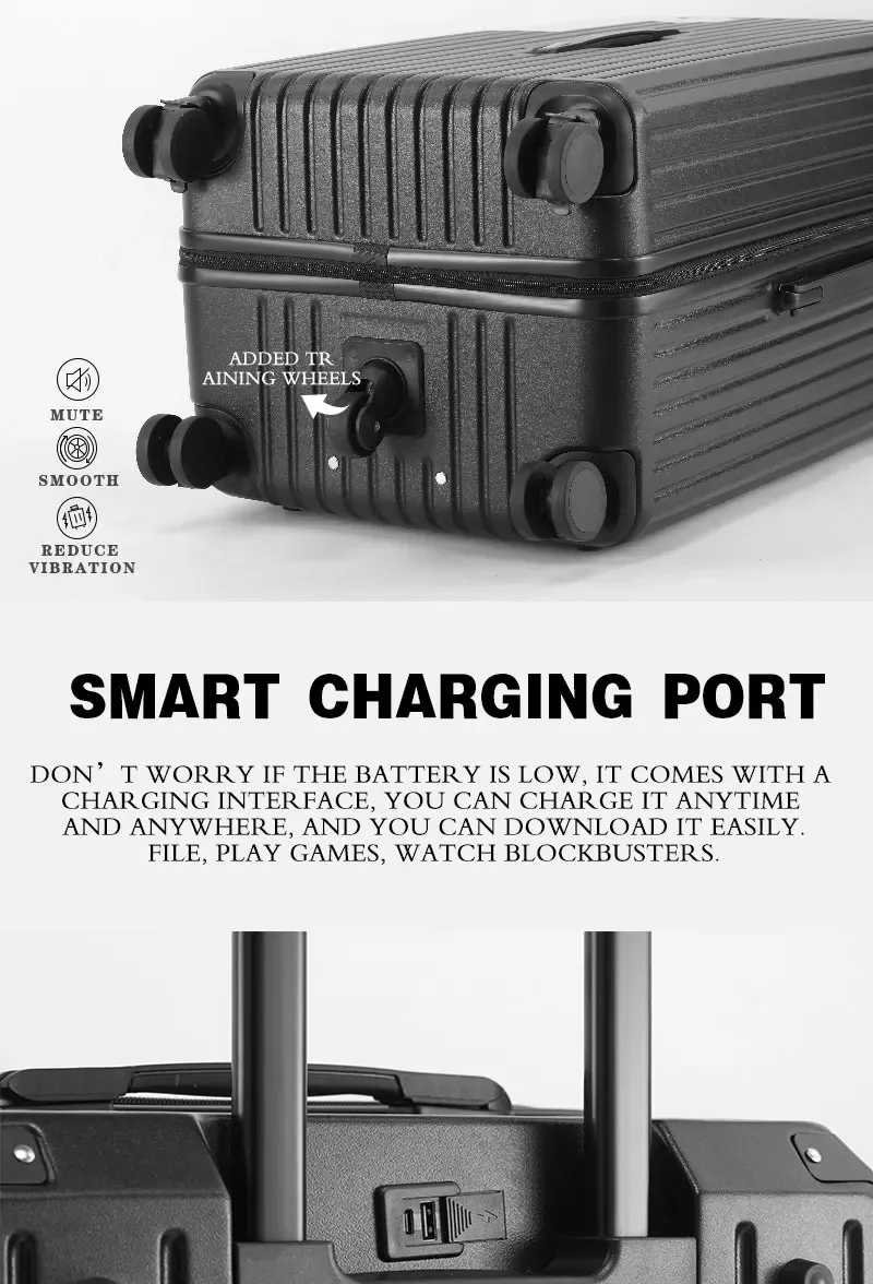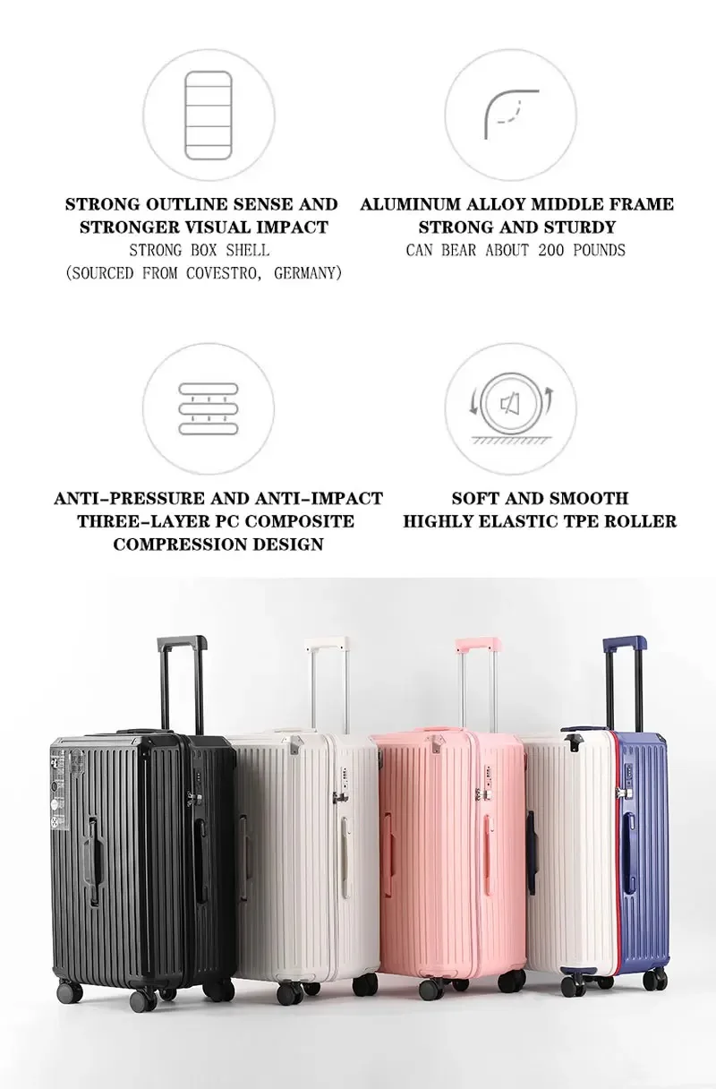 Multifunction Spinner Luggage with USB Charging Port and Cup Holder Aluminum Frame Hard Equipment Suitcase Luggage