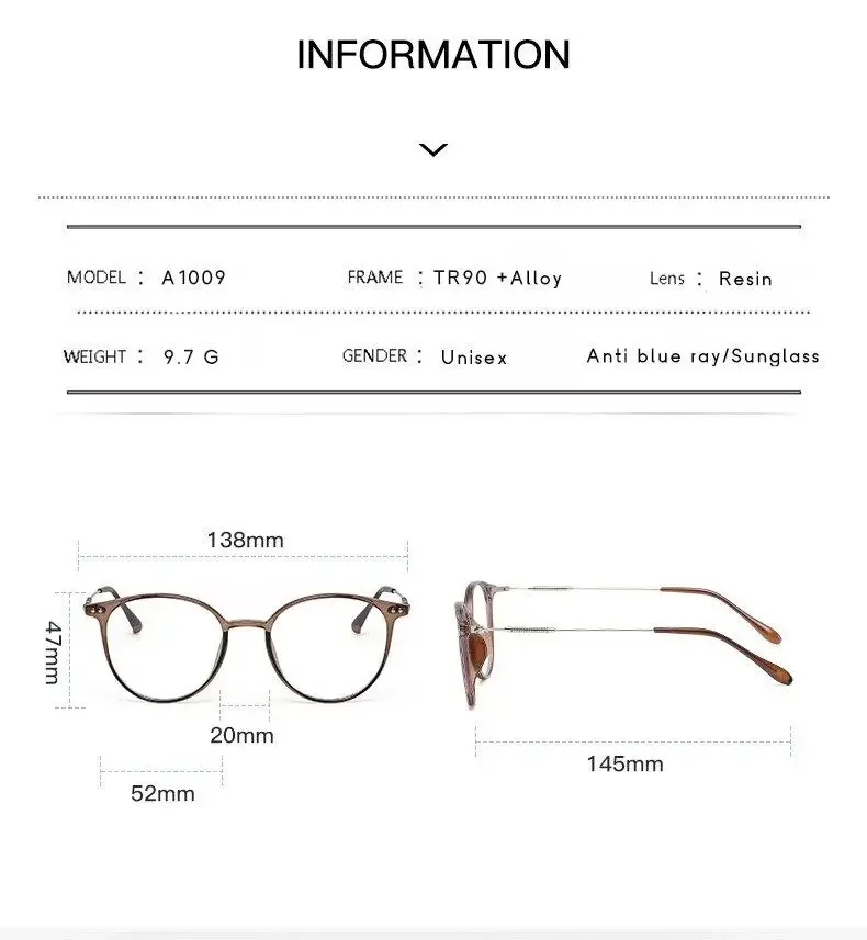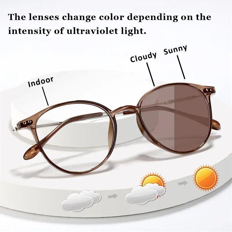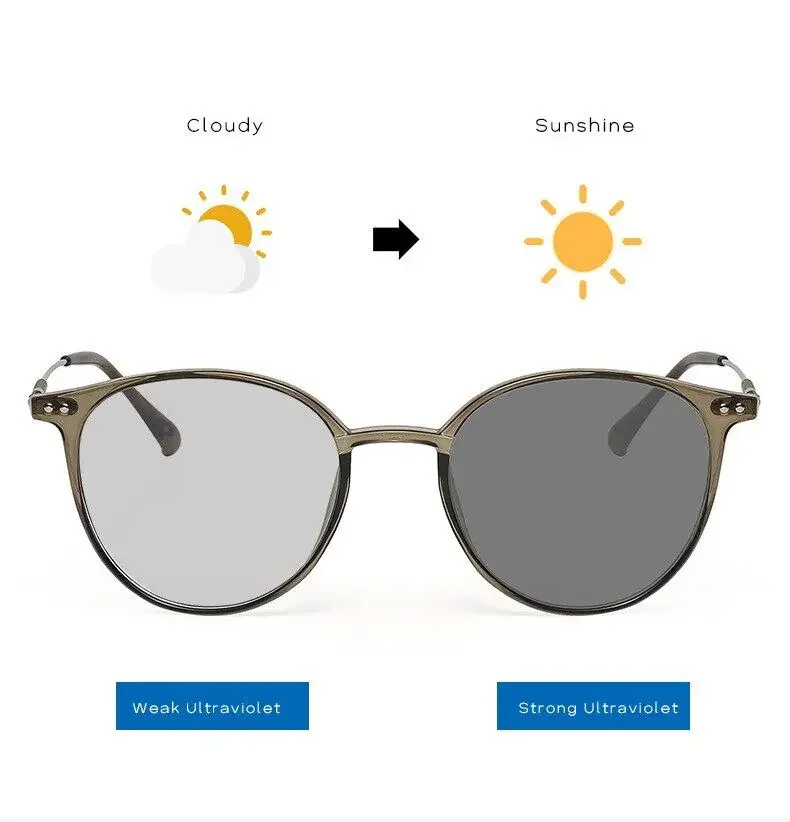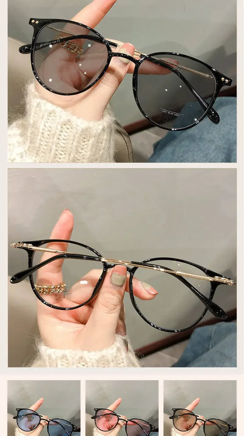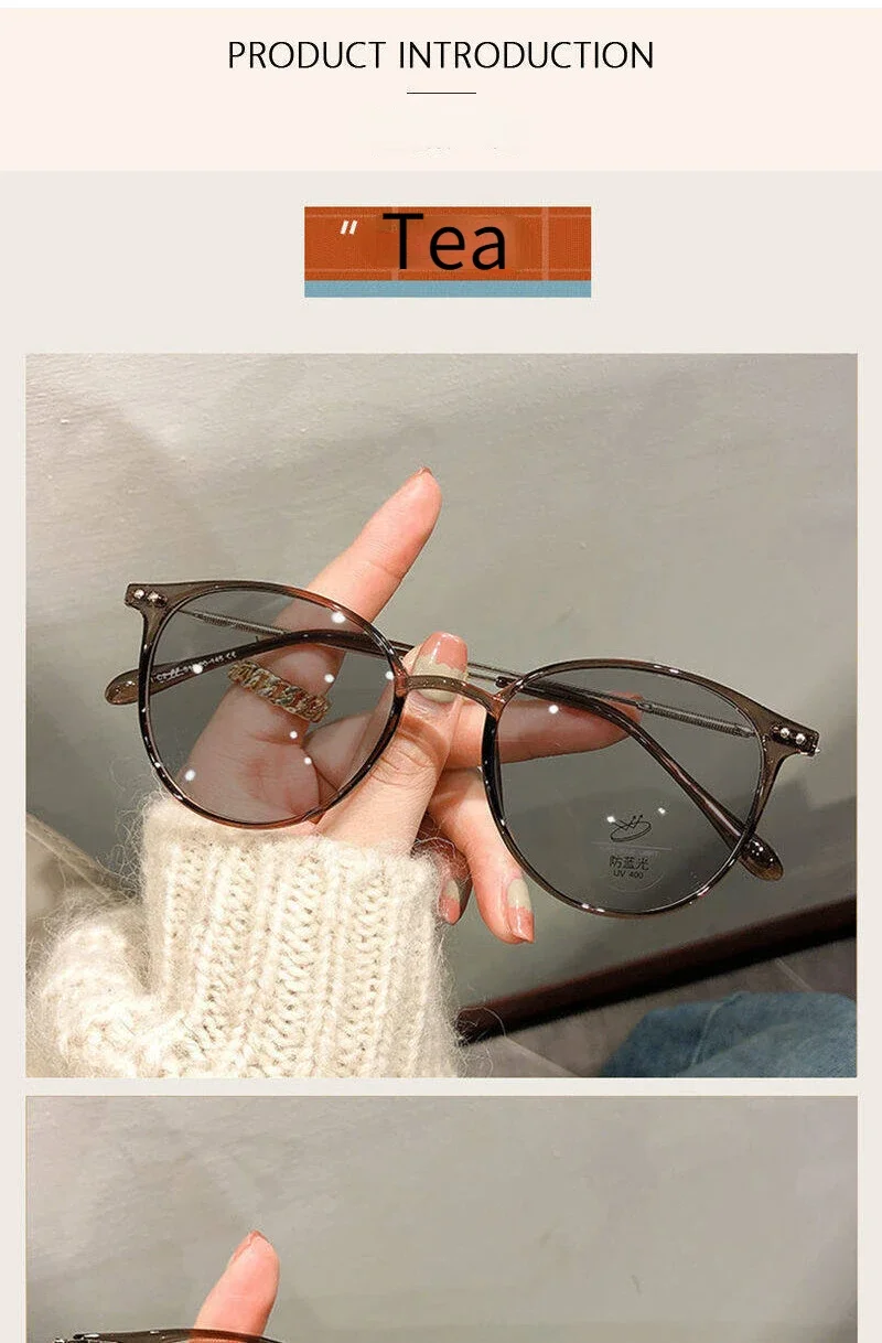 Myopia Glasses 0 To -600 Retro Round Photochromic Myopia Glasses for Women Men Ultralight Blue Light Blocking Computer Eyeglass