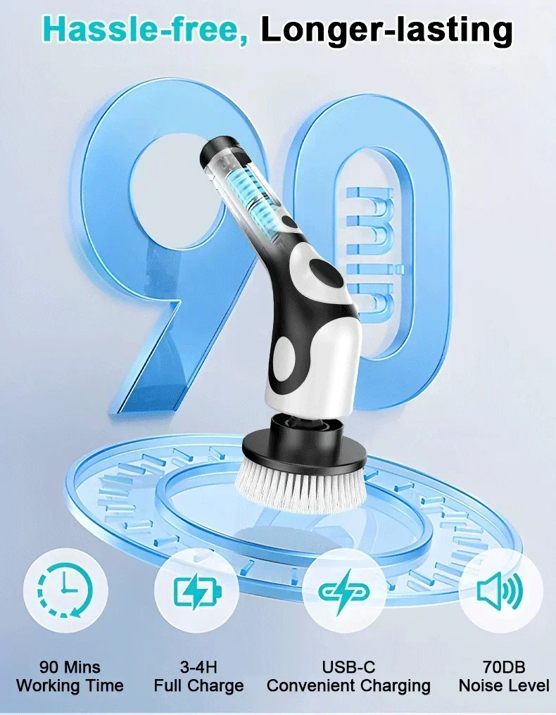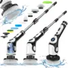 Electric Spin Scrubber, Cordless Cleaning Brush Scrubber for Home, 550RPM/Mins-9 Replaceable Brush Heads-90Mins Work Time, 3 Adjustable Size, 2 Speeds for Bathroom Shower Bathtub Glass Car