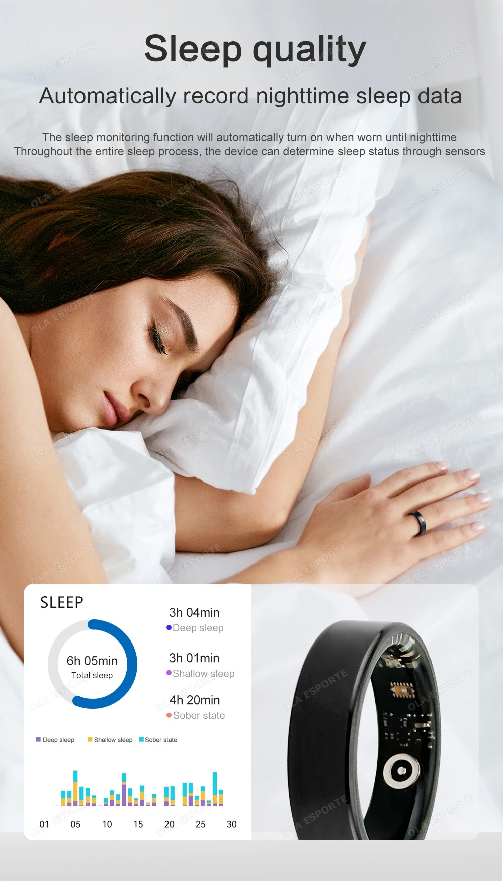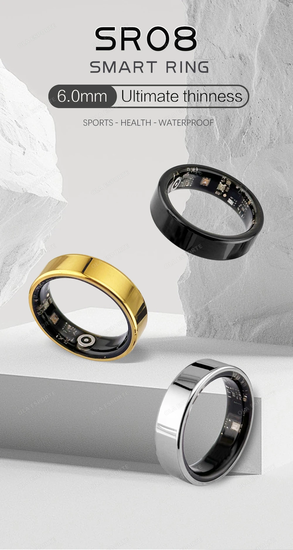 2. Lightweight and Comfortable: With its lightweight and ultra thin body, this ola esporte smart ring provides a comfortable wearing experience.