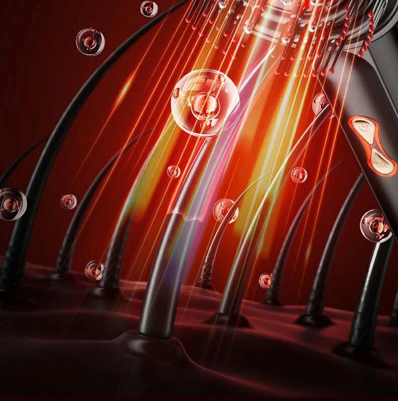 2. Equipped with 72 round teeth and 630nm wavelength red light, our massage comb can effectively knead and massage the scalp, deeply nourish the hair roots, and help you create lush and luxuriant hair.