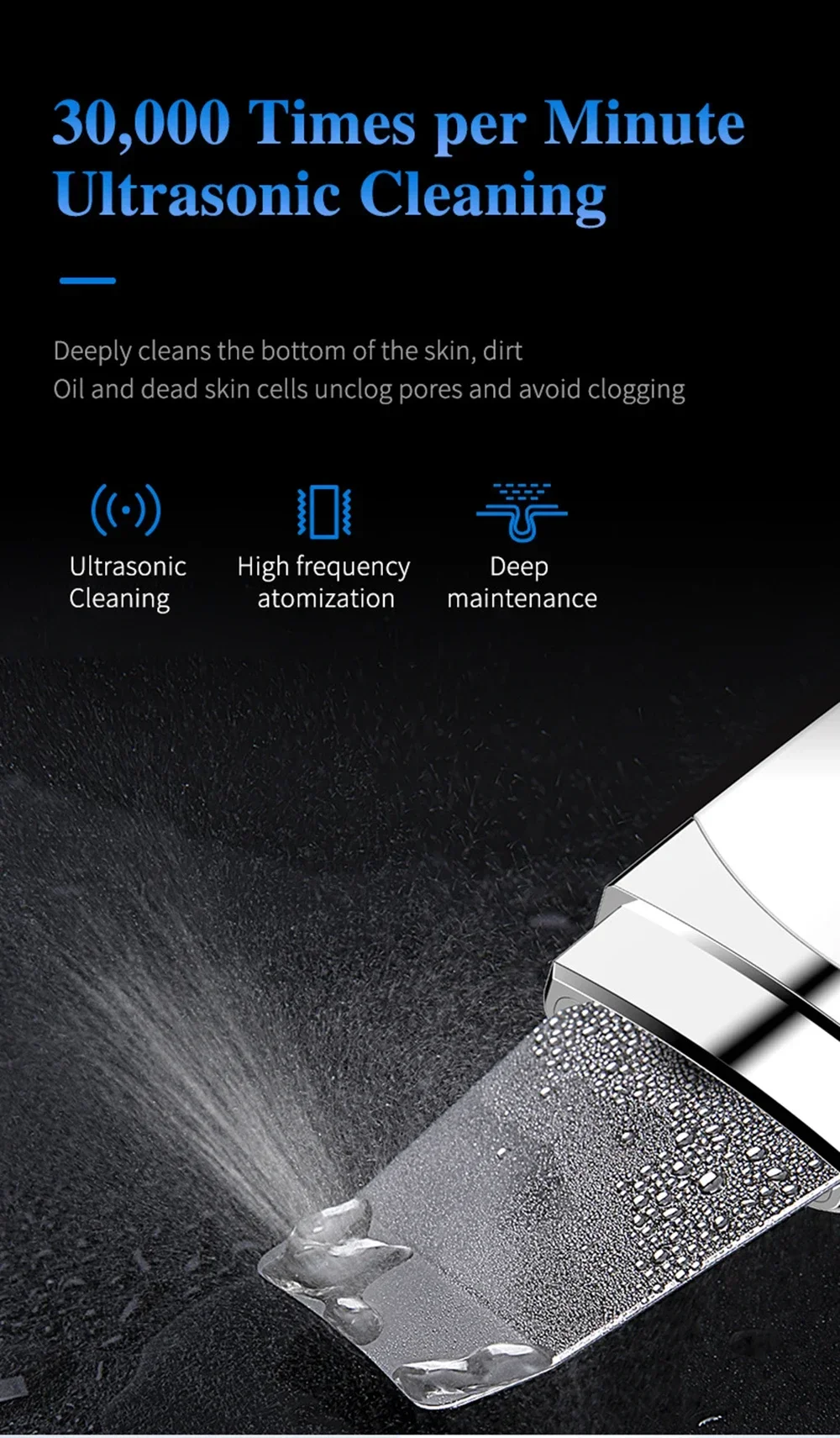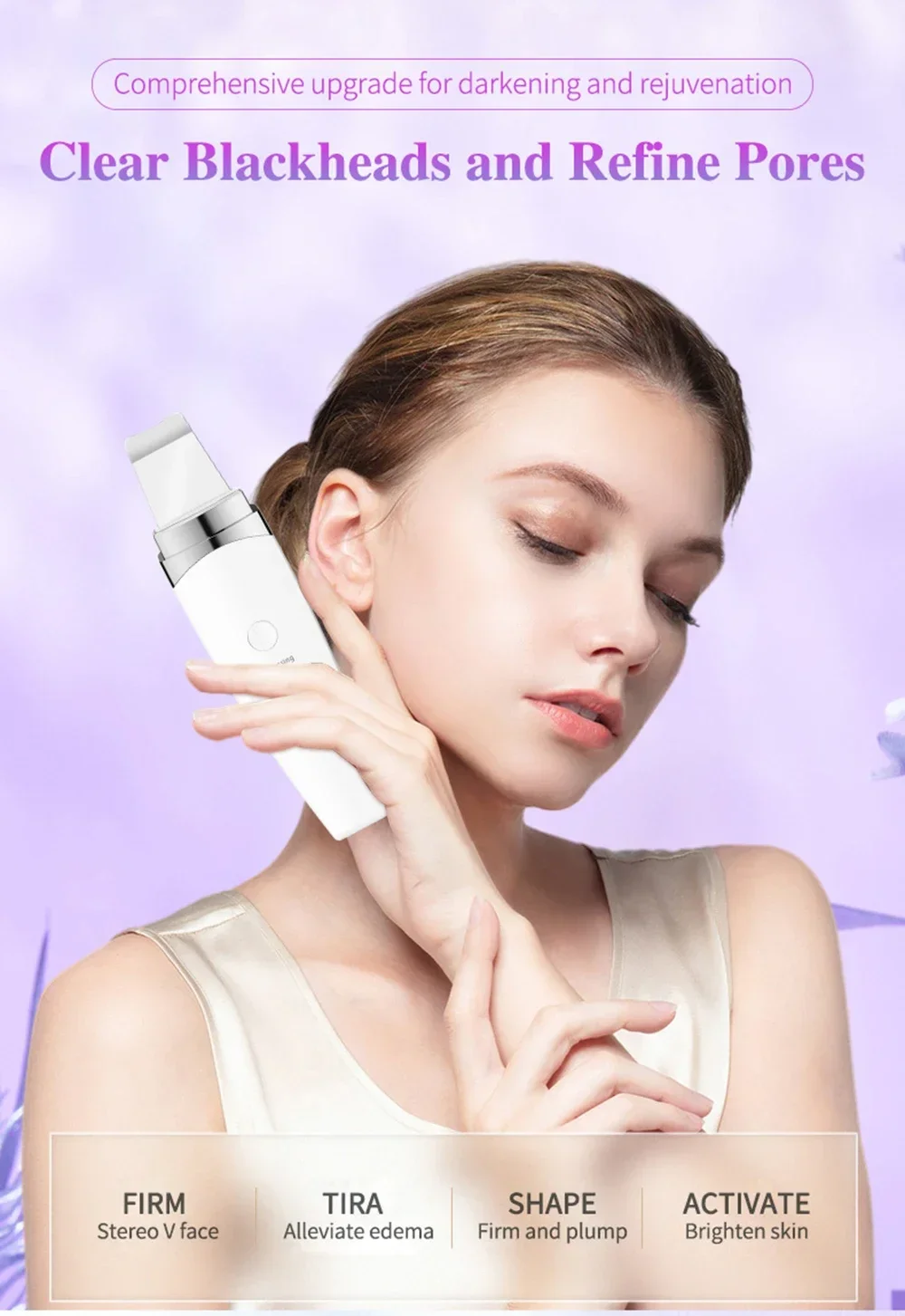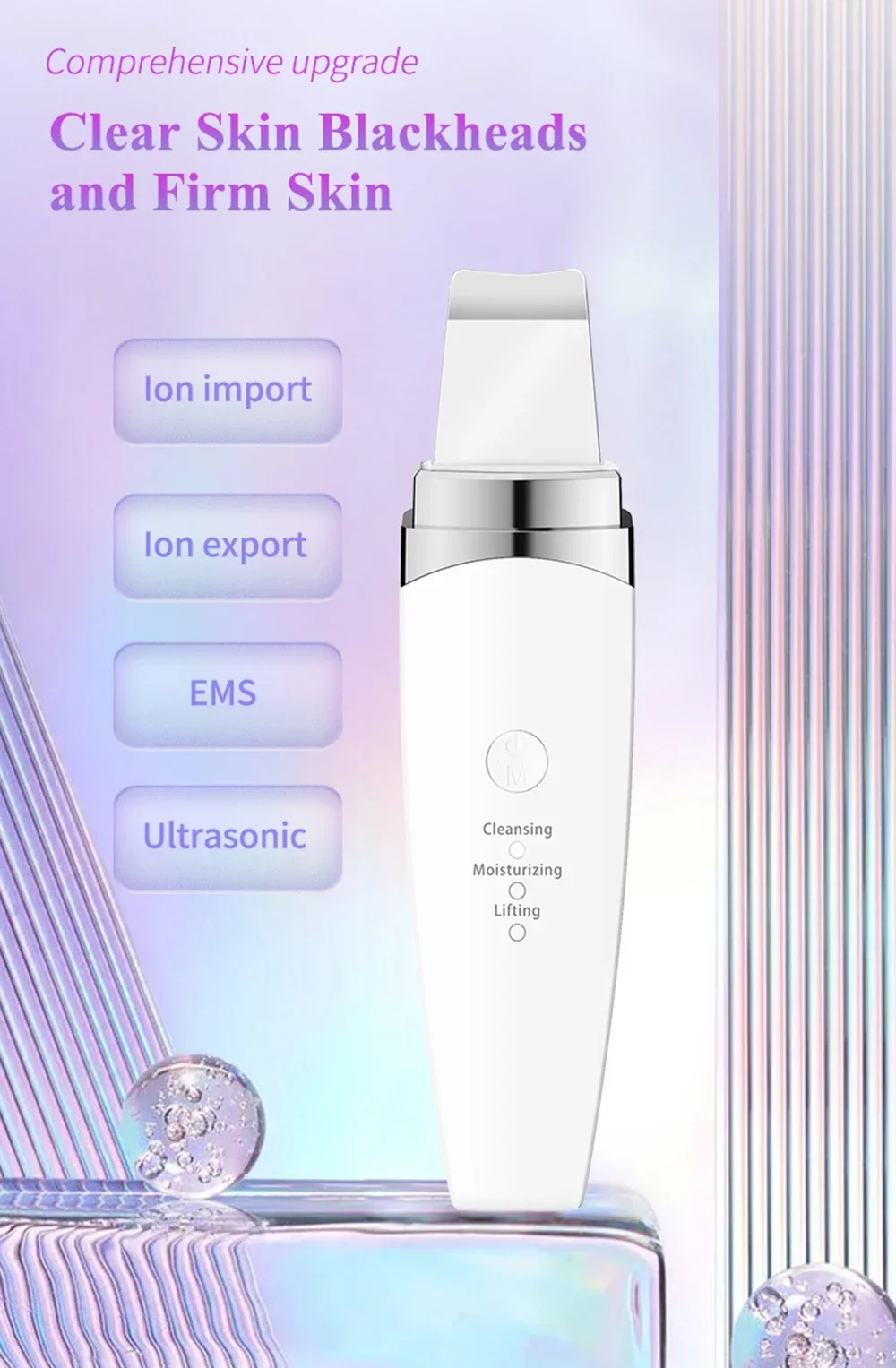 New Facial Ultrasonic Skin Scrubber Spatula Blackhead Remover Deep Face Cleaning Lift Machine Peeling Shovel Pore Cleane