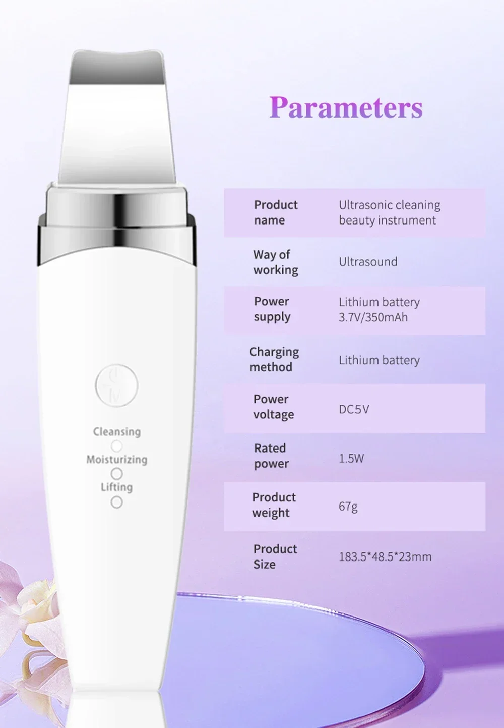 2.Leading-in nutrition & activating skin By adopting ultrasonic vibration theory and tepid effect, it can promote blood circulation inside the dermis, accelerate lymphatic return, discharge toxin which accumulated in the deeper skin and eliminate dead cell to avoid Corneous layer cells accumulation excessively, thus to make the moisture and nutrition to transfer rapidly, enhance cell’s penetrability, strengthen skin care product absorption, improve skin moisten.