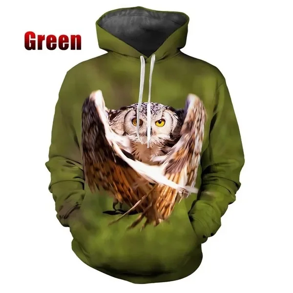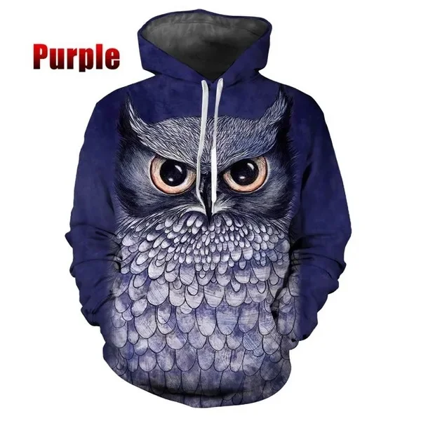 New Owls 3d Printed Animals Graphic Hoodies For Men Fashion Hoodies Y2k Hip Hop Sweatshirt Harajuku Pullover Tops Women Clothes