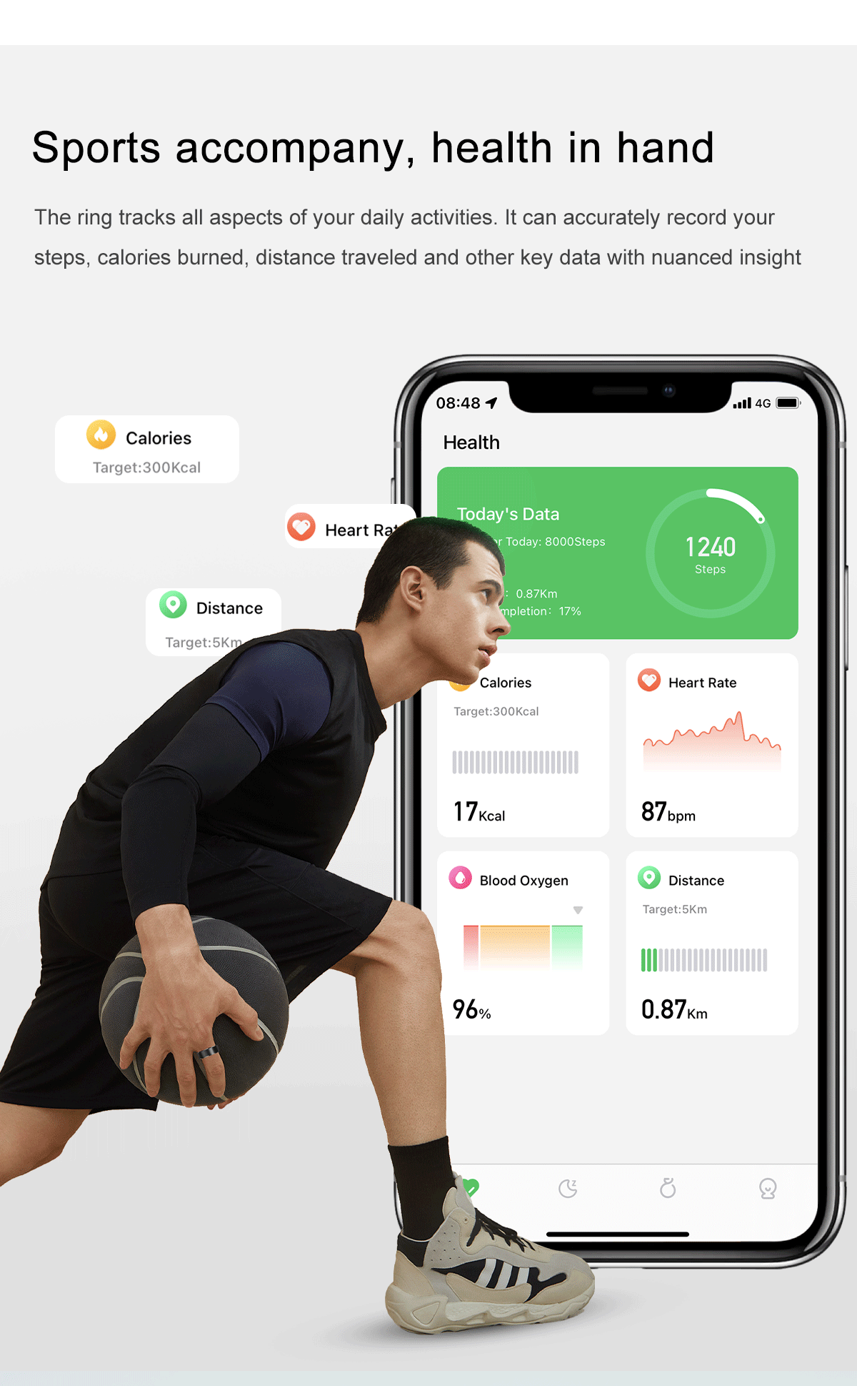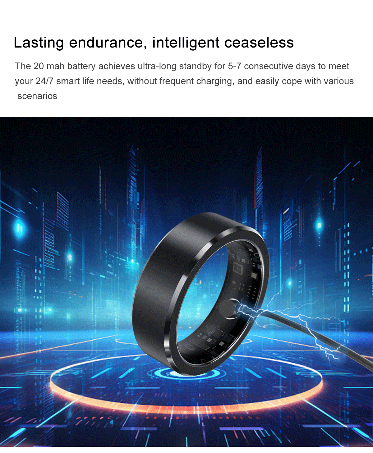 4. Lightweight and Comfortable Wear: This fitness ring is as light as a feather yet extremely durable and resistant to wear. Its robust construction is matched with precise monitoring accuracy, ensuring a comfortable, unnoticeable wear throughout the day and night for continuous health tracking.