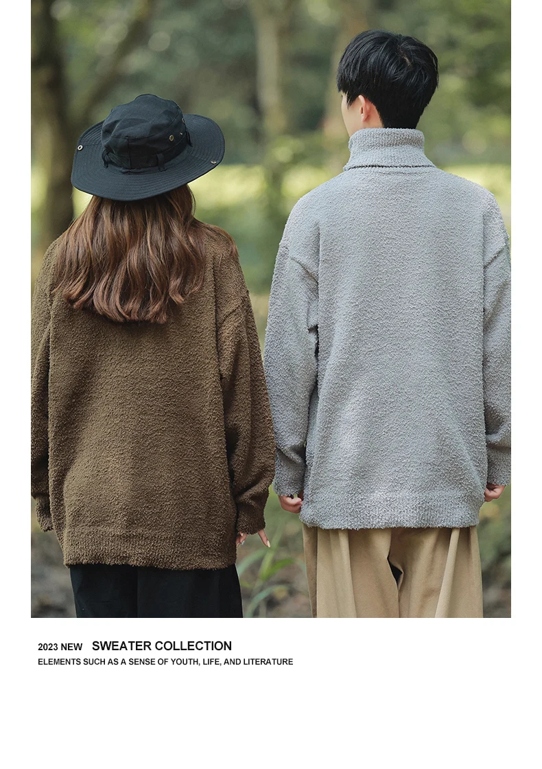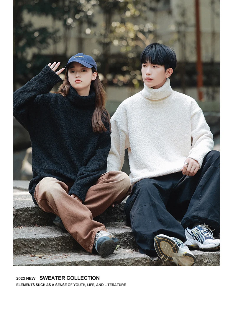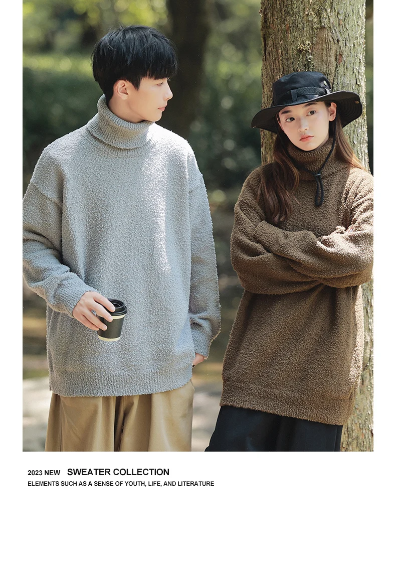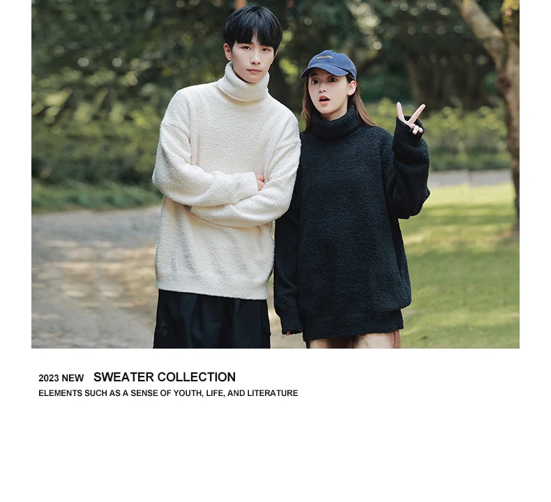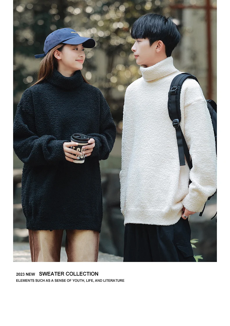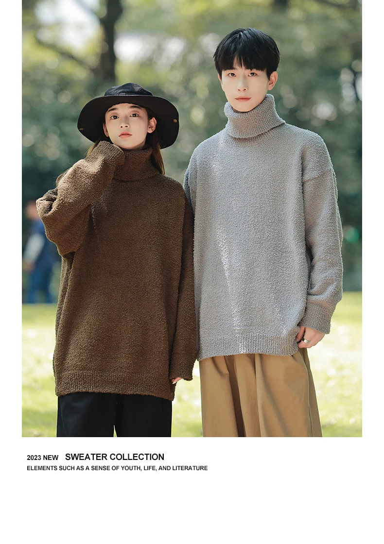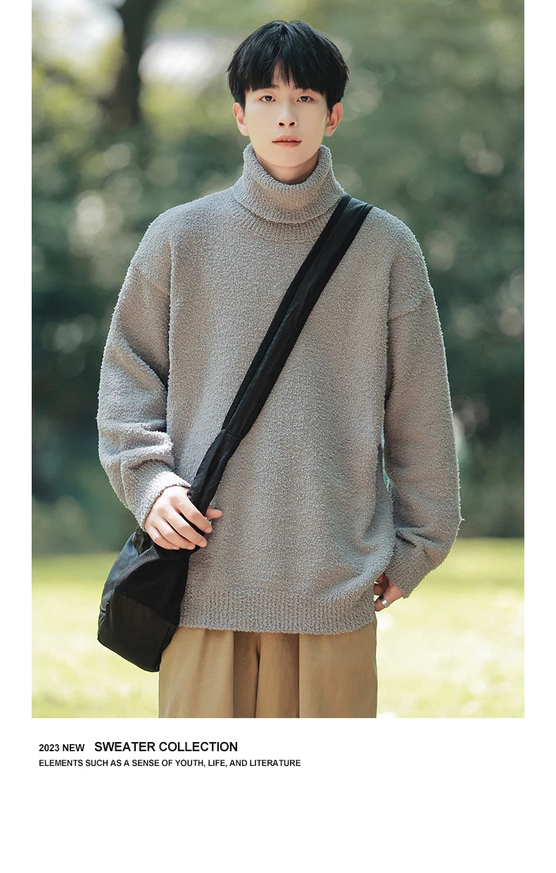 New Turtleneck Sweaters Men Loose Knitted Pullover Streetwear Mens Oversized Sweater Korean Fashion Casual Sweater Men Pullovers