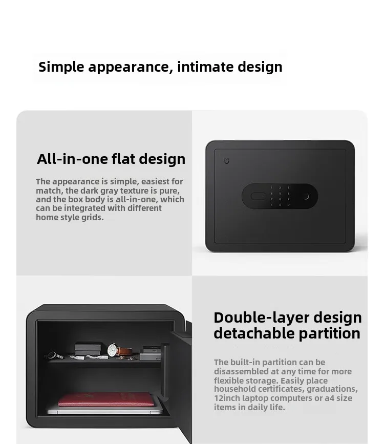 New Xiaomi Mijia Smart Safe Deposit Box 30CM Fingerprint Password 6 Unlocking Methods Office Home Safety Safe Deposit Box