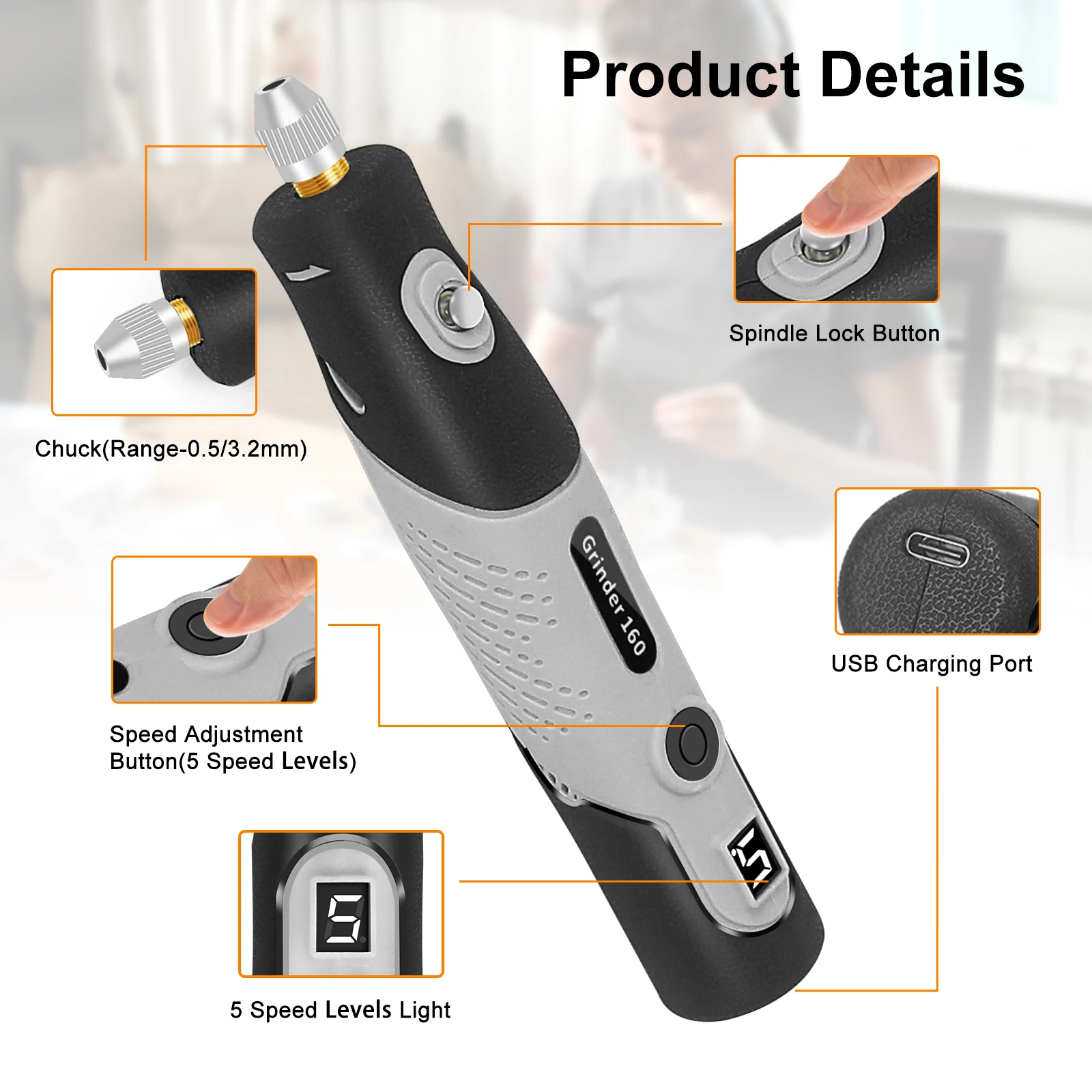 5.Perfect Grinder – Perfect electric grinder for cutting, engraving, milling, grinding, polishing, removing and drilling. The grinder engraving kit is necessary for DIY carving and grinding.