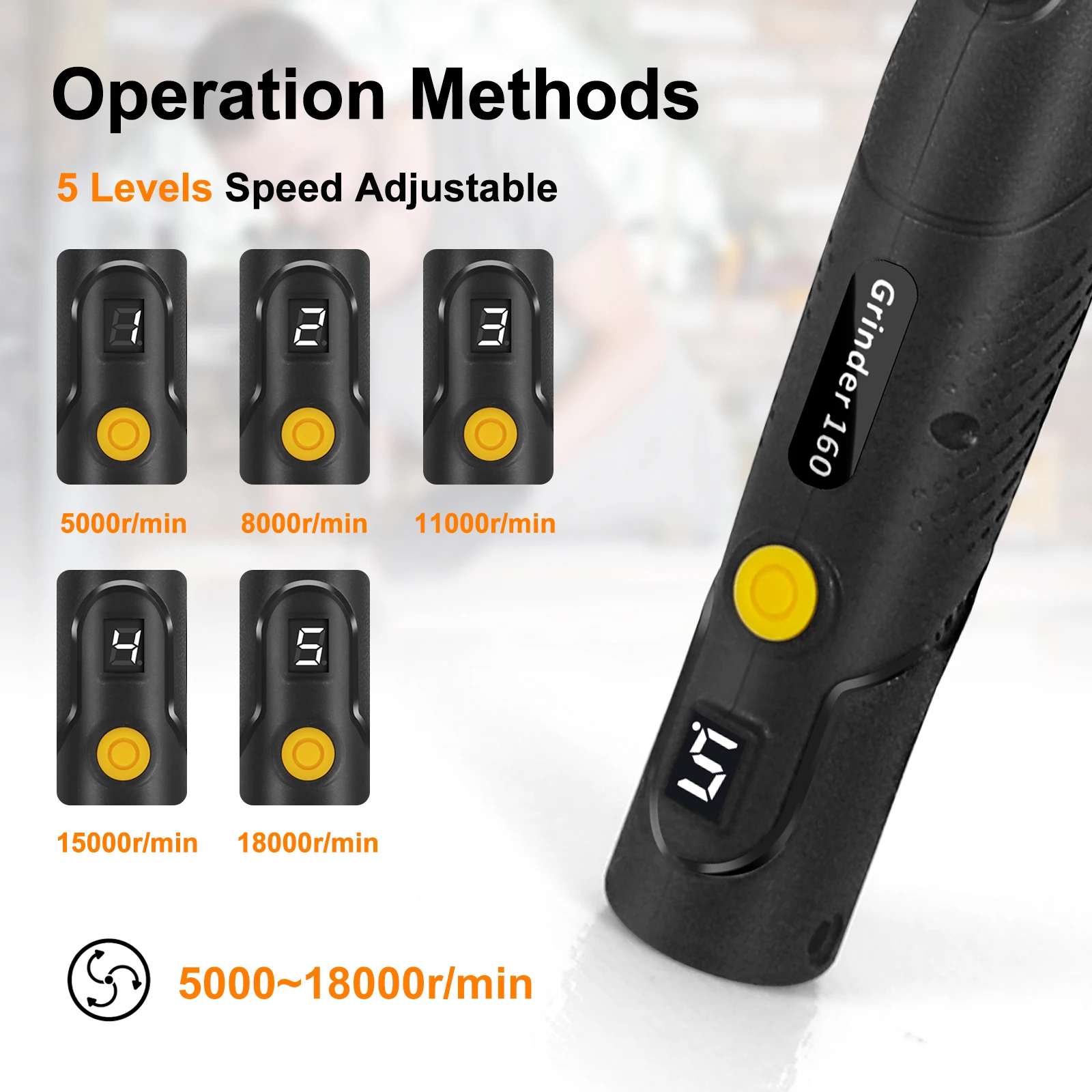2.Regulating Speed-This electric carving tool has LCD 5 speed adjustment,speed adjustment range:5000/8000/11000/15000/18000 r/min.