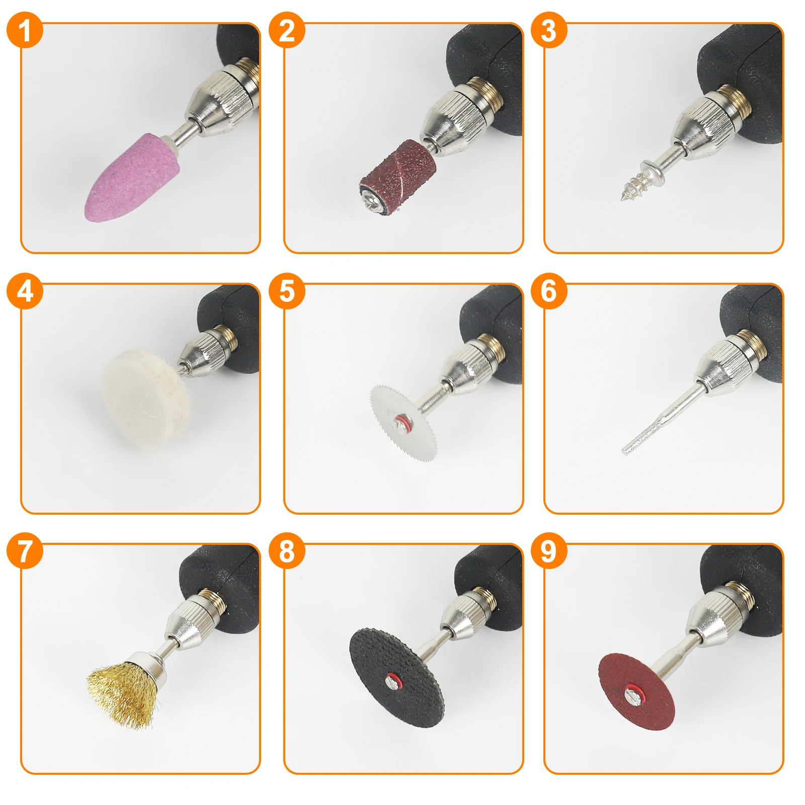 3.Complete Accessories-Equipped with 100pcs accessories for drilling,all ready and complete.