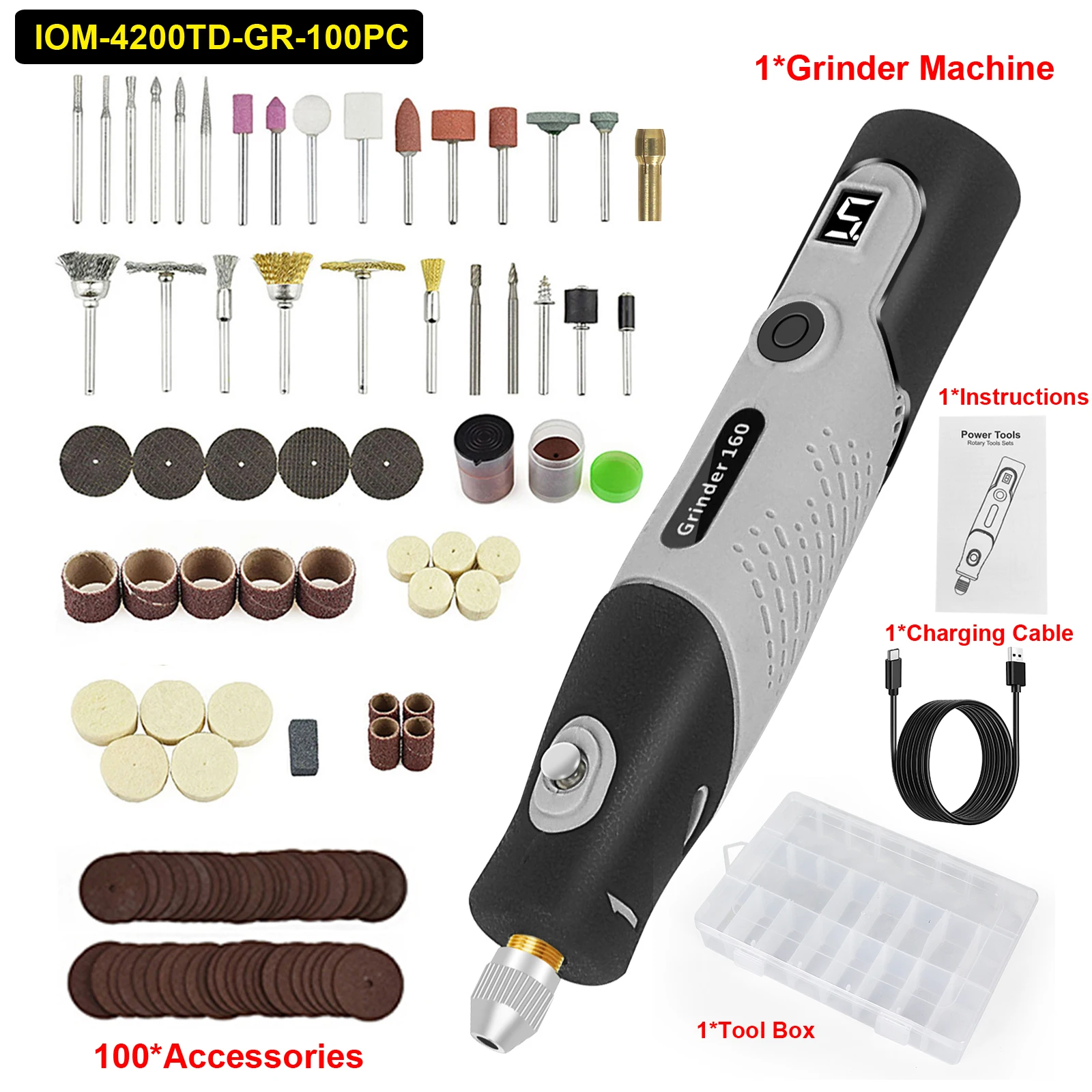 NEWACALOX Cordless Rotary Tool Kit 100PCS Accessories Mini Engraving Tool LCD 5 Speeds Settings 5000-18000 RPM for Wood Carving