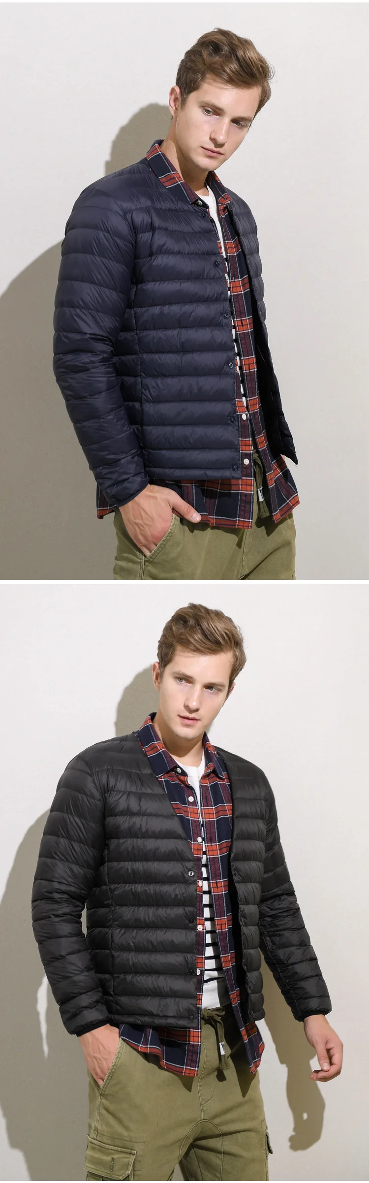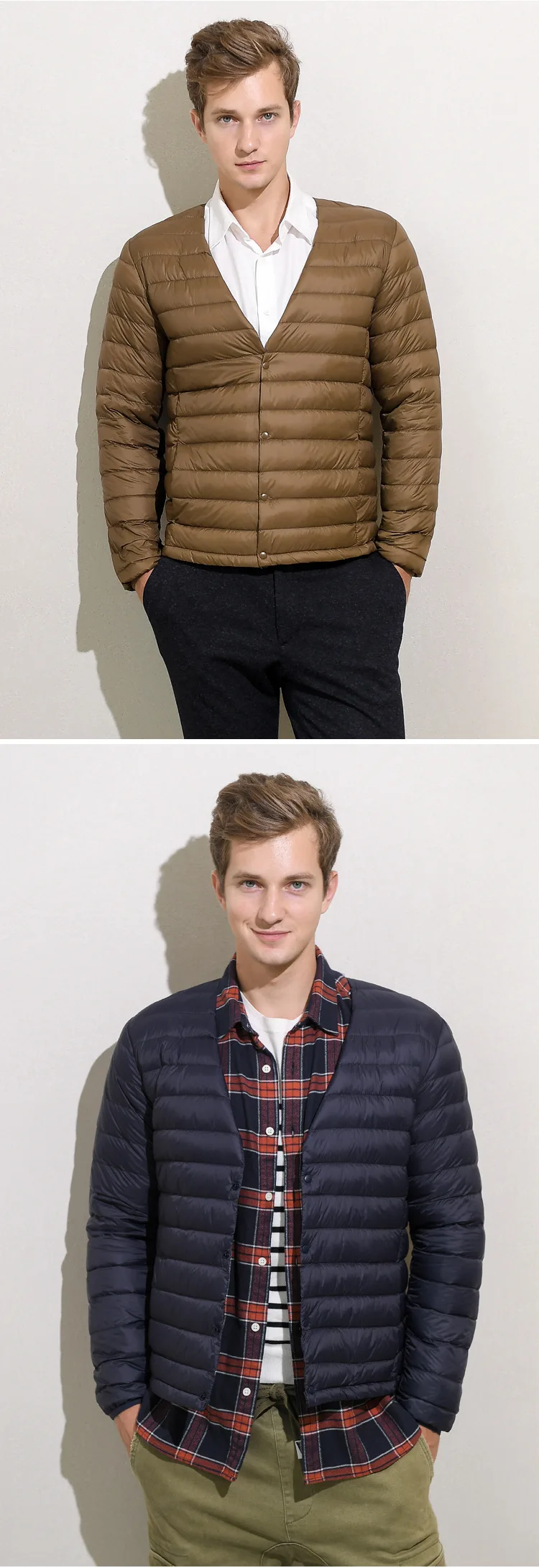 NewBang Matt Fabric Ultra Light Down Jacket Men V-neck Men’s Down Jacket Slim Windproof Portable Lightweight Coat Warm Liner