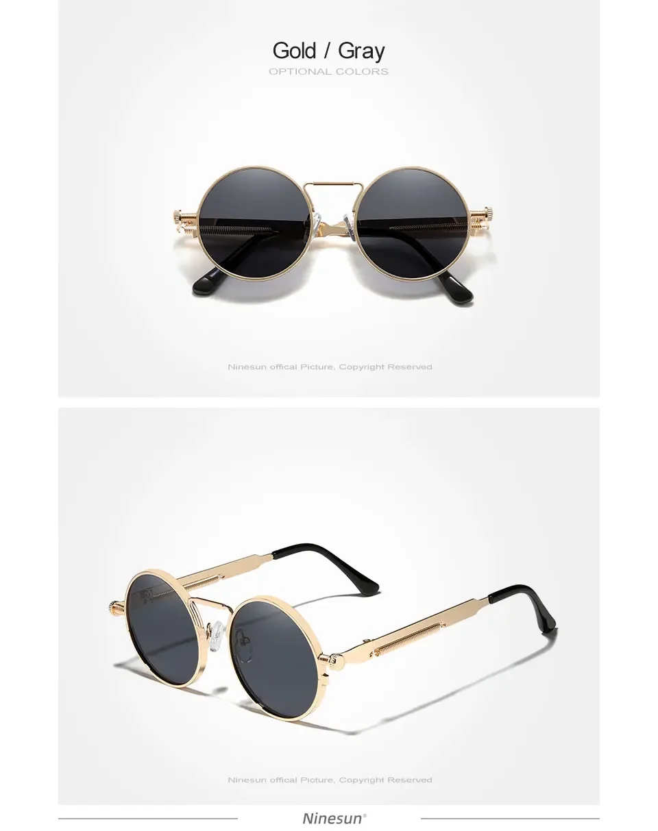 Ninesun Vintage Style Round Frame Glasses Gothic Steampunk Sunglasses Polarized Men Women Eyewear UV400 Oculos